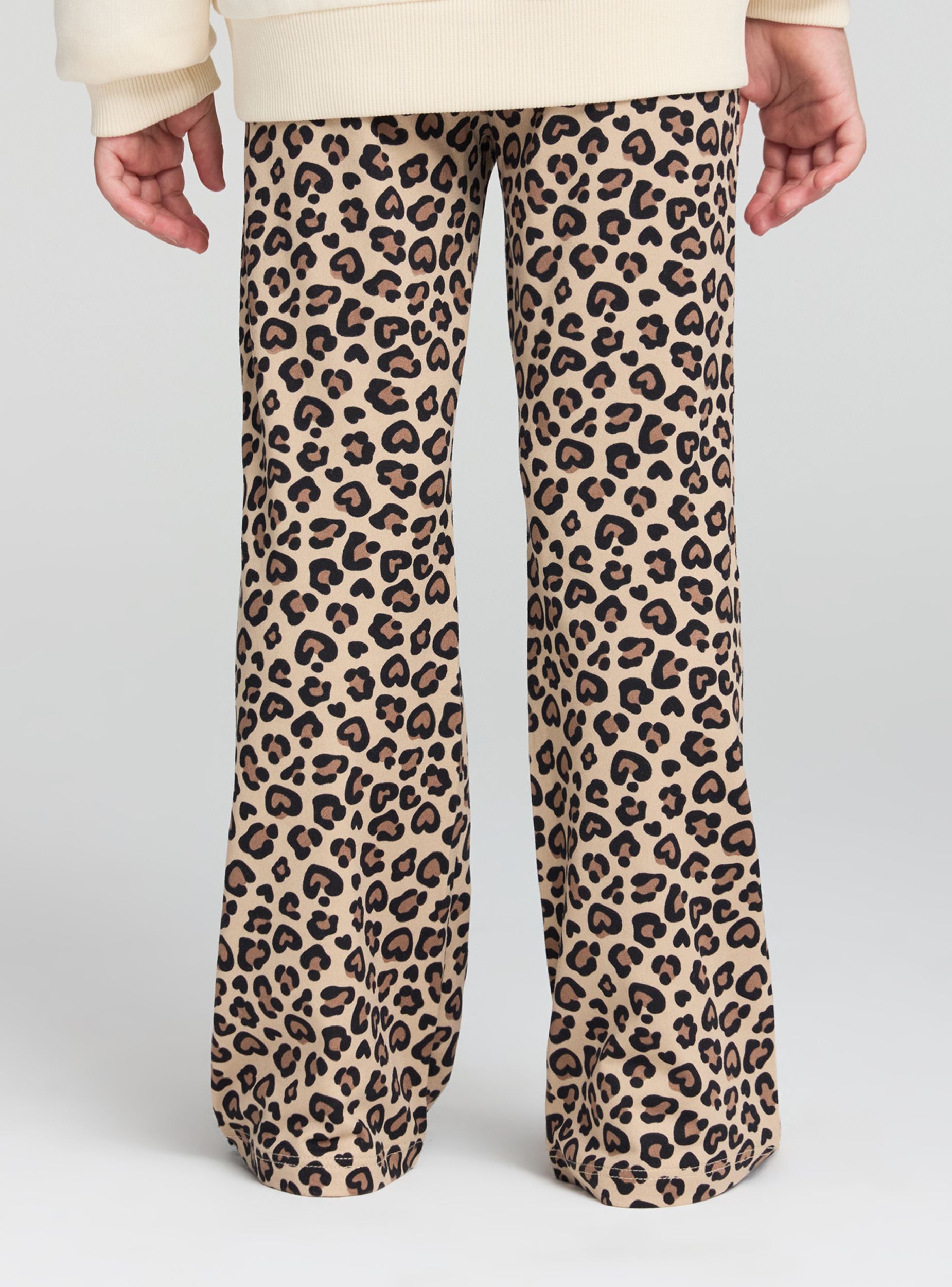 Leggings da bimba con stampa animalier, ideali per aggiungere un tocco di stile ai look quotidiani. La vestibilità regolare e il design a zampa li rendono perfetti per abbinamenti con magliette oversize o felpe. Versatili e comodi, sono adatti per il tempo libero e occasioni casual. Un capo che unisce moda e praticità.