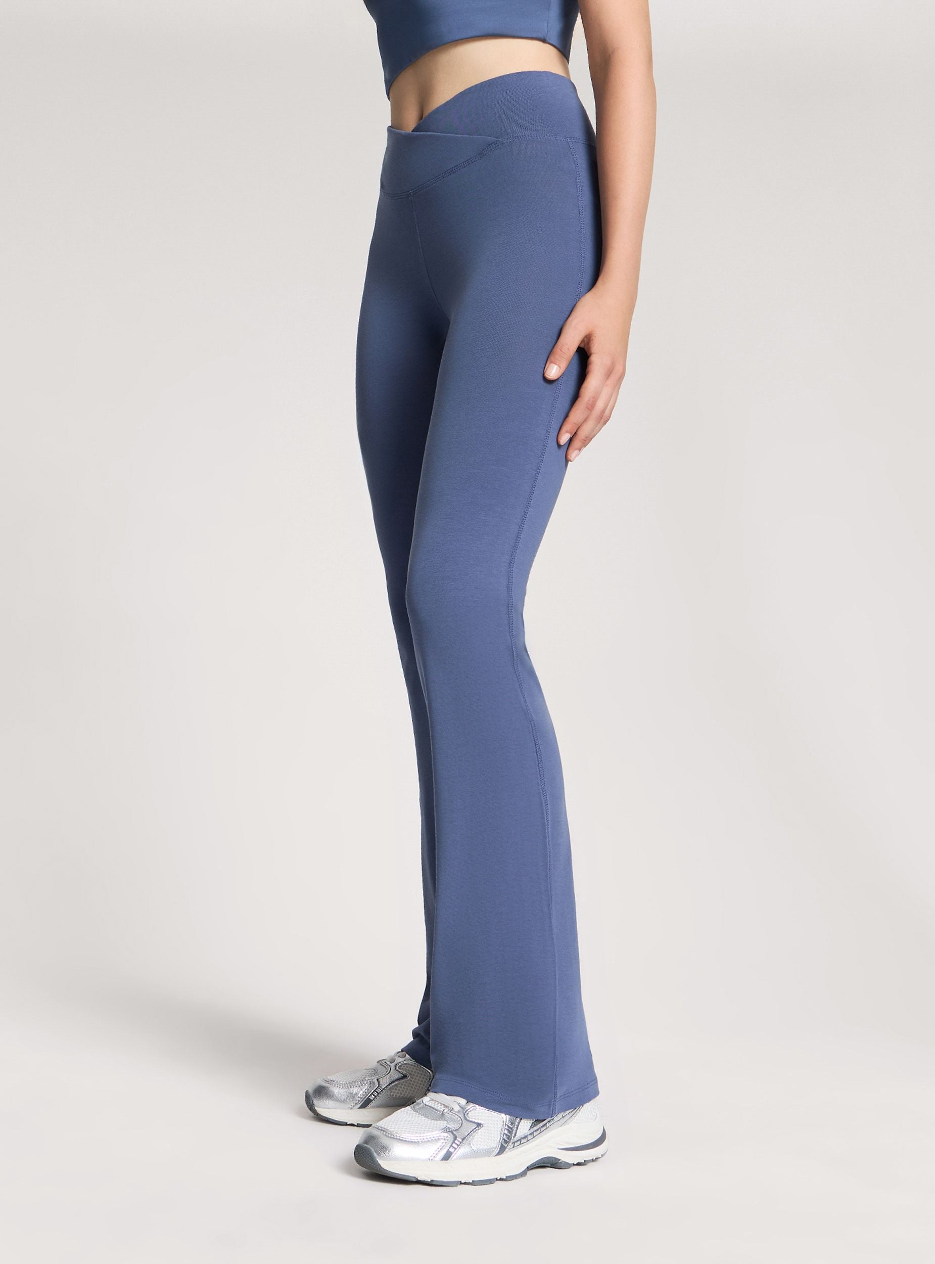 Leggings sportivi da donna con design a zampa, ideali per un look casual e versatile. Perfetti per essere abbinati a magliette oversize o crop top per un look moderno. La vita alta garantisce una vestibilità comoda e valorizza la silhouette. Il modello tinta unita li rende adatti a molteplici occasioni. Linea Active.