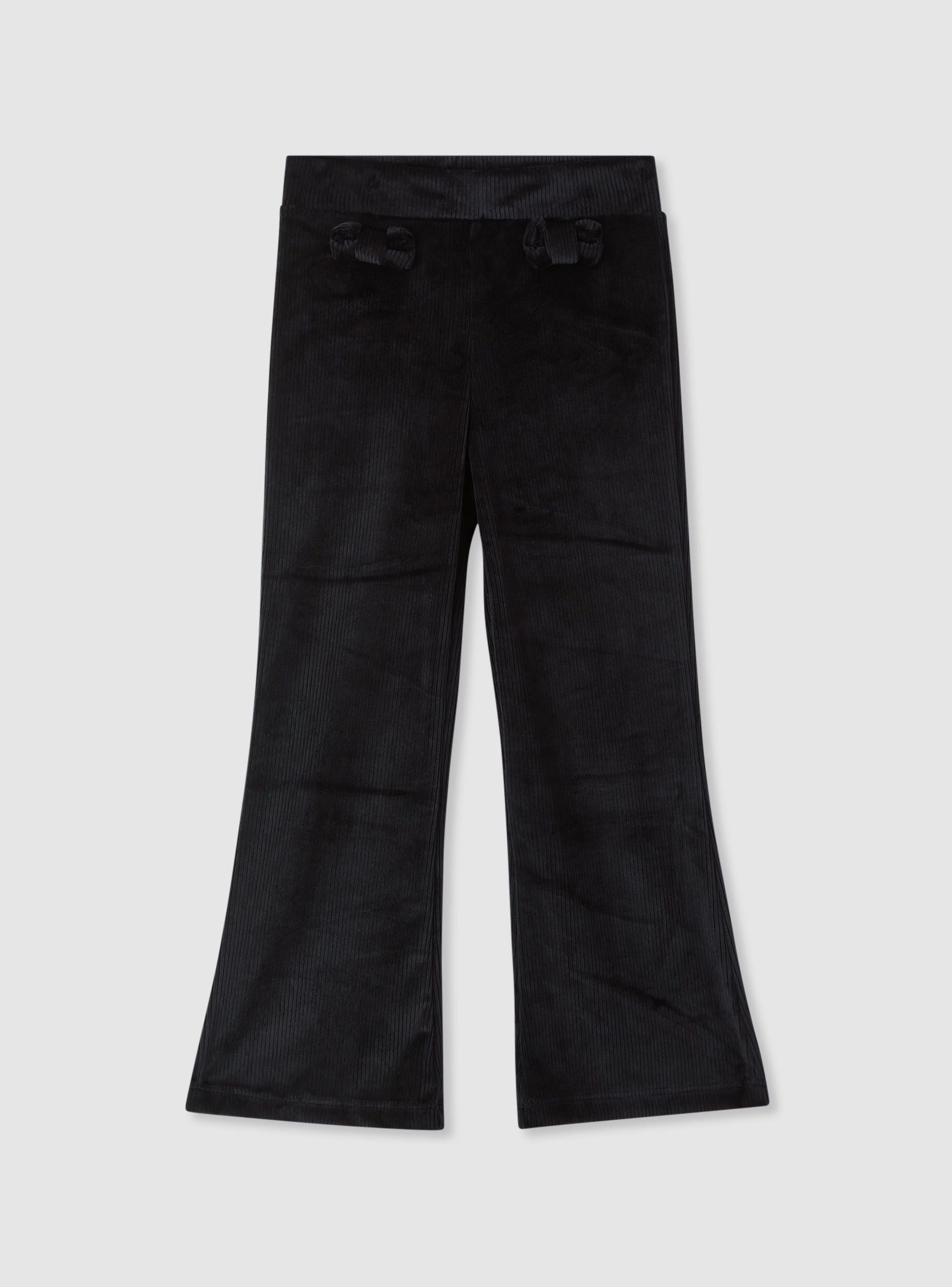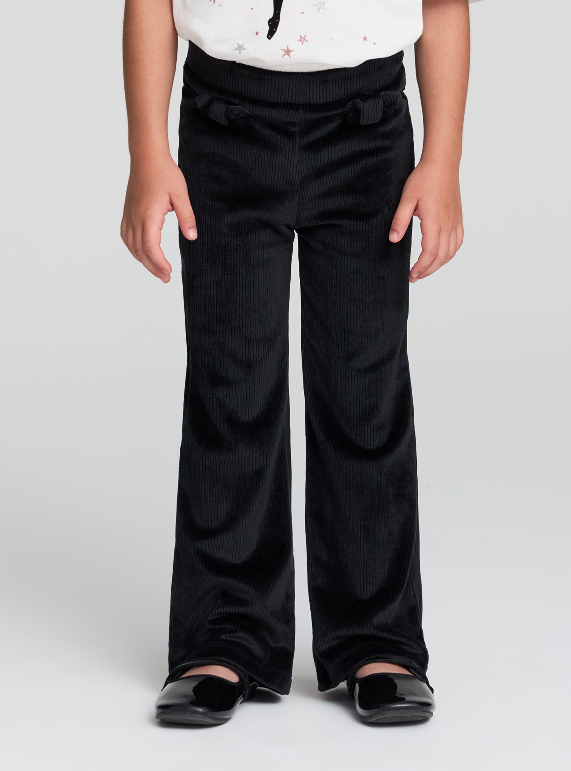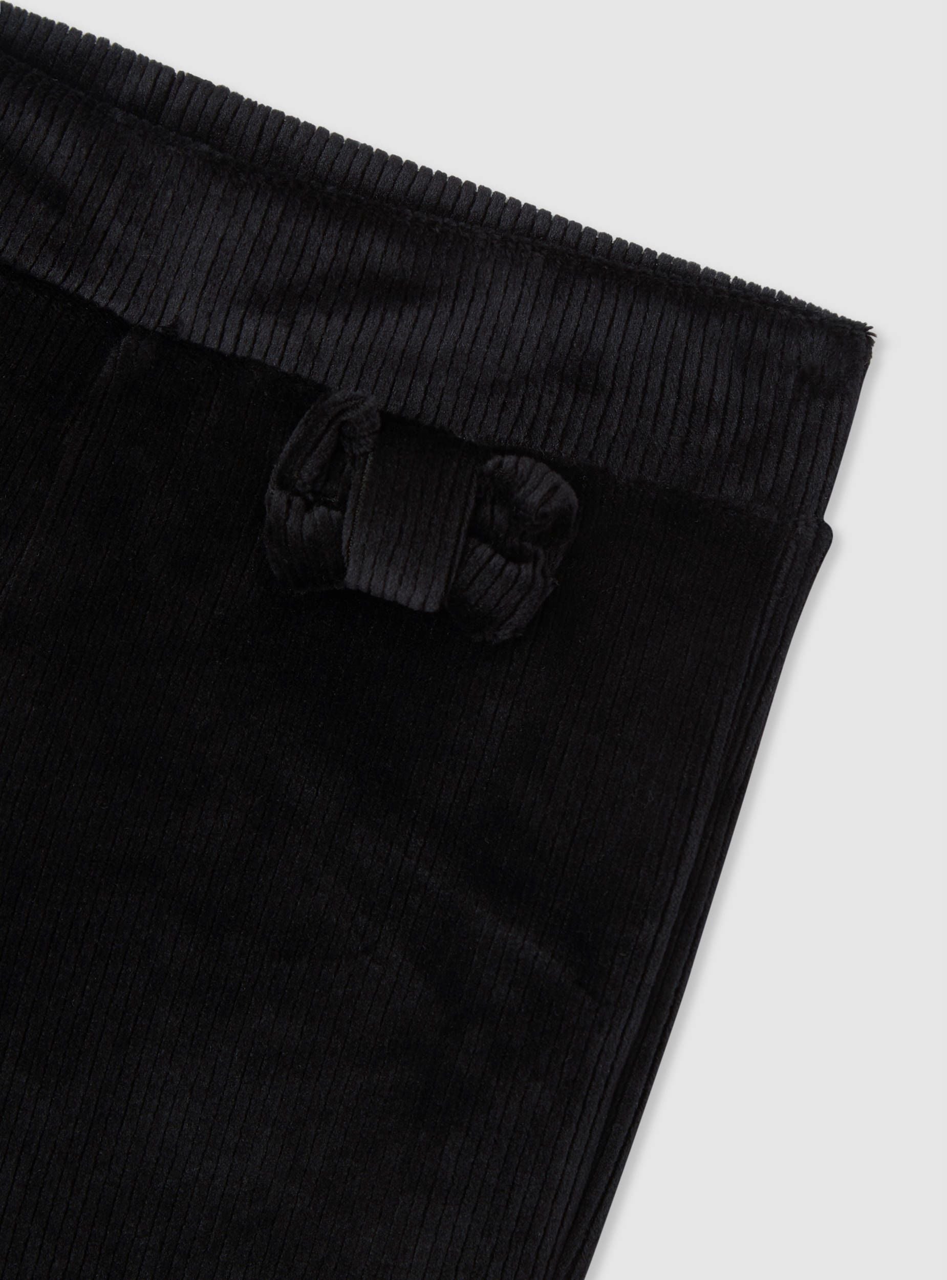 Leggings a zampa pesanti a coste da bimba con design lungo e vestibilità regolare. Presentano un dettaglio decorativo a fiocco sulla parte superiore, aggiungendo un tocco di stile. Ideali per outfit casual e comodi, si abbinano perfettamente a magliette e felpe per un look quotidiano.