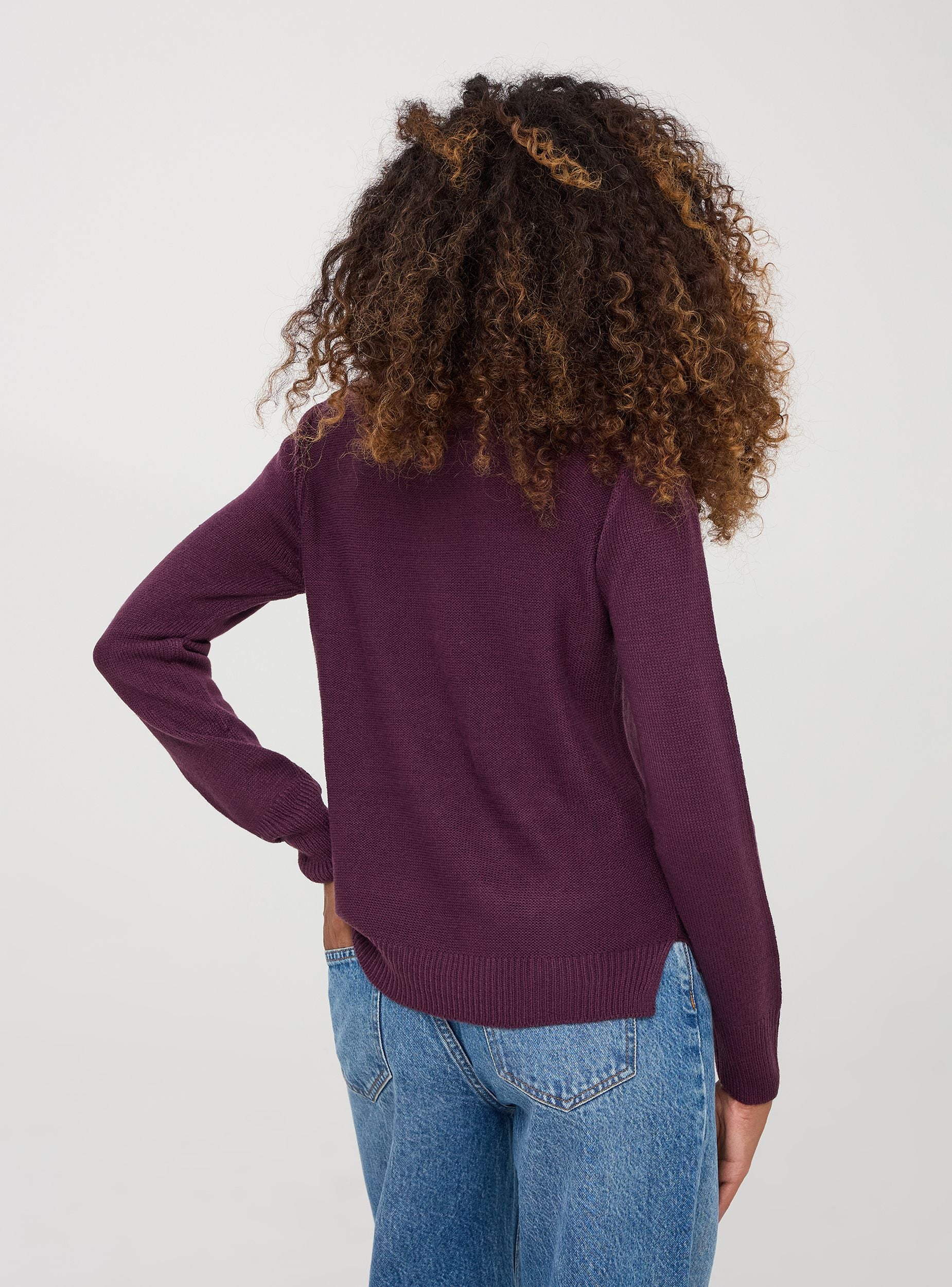 Maglia da donna a maniche lunghe realizzata in morbido filato a tinta unita con finiture a costine e piccolo spacchetto laterale, perfetta per garantire comfort e calore durante la stagione fredda. Il design presenta uno scollo rotondo e una vestibilità regular e confortevole. Capo basic facile da abbinare, perfetto per le occasioni casual e quotidiane. Questa maglia è ideale da indossare con jeans, pantaloni o gonne per un look semplice ma professionale da ufficio, oppure durante il tempo libero per un tocco di stile e comfort.