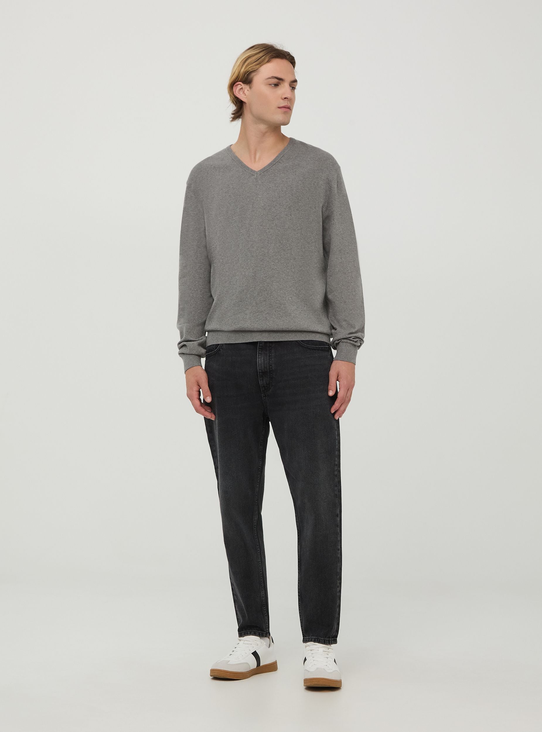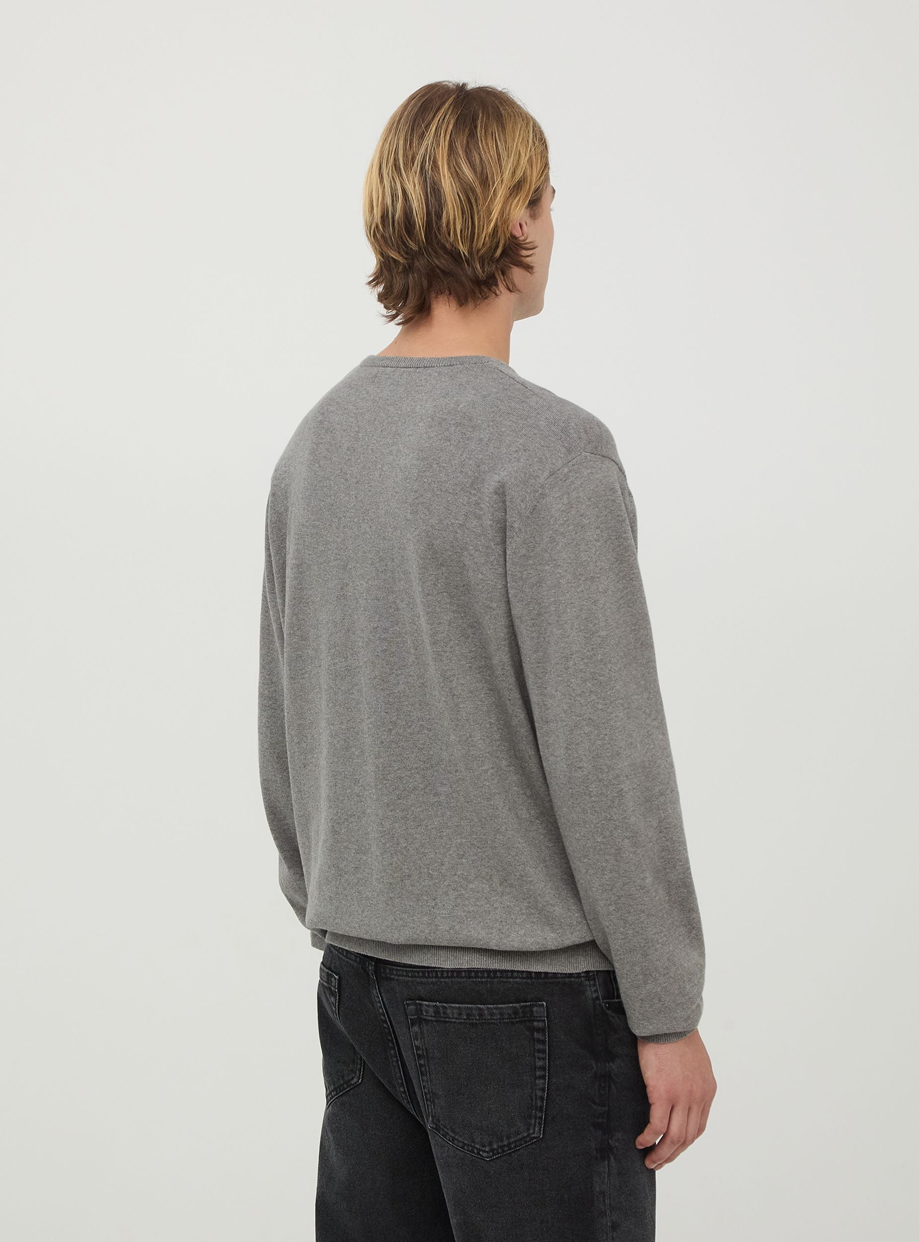Maglia da uomo a tinta unita, dotata di un sobrio scollo a V, che dona un tocco raffinato e versatile. Le maniche lunghe e i polsini a costine assicurano una perfetta aderenza, mentre il fit regolare rende il capo adatto ad occasioni casual e formali.