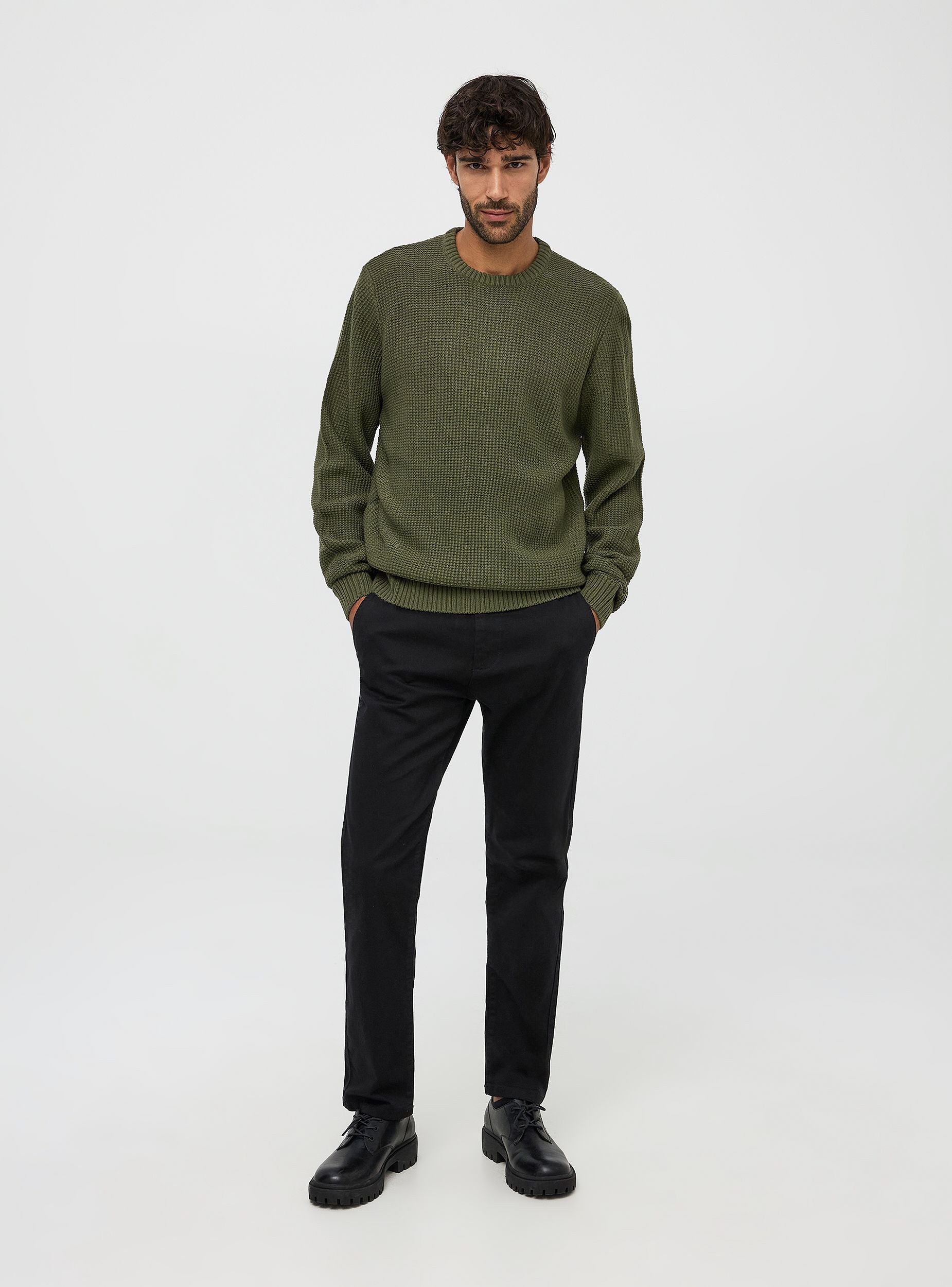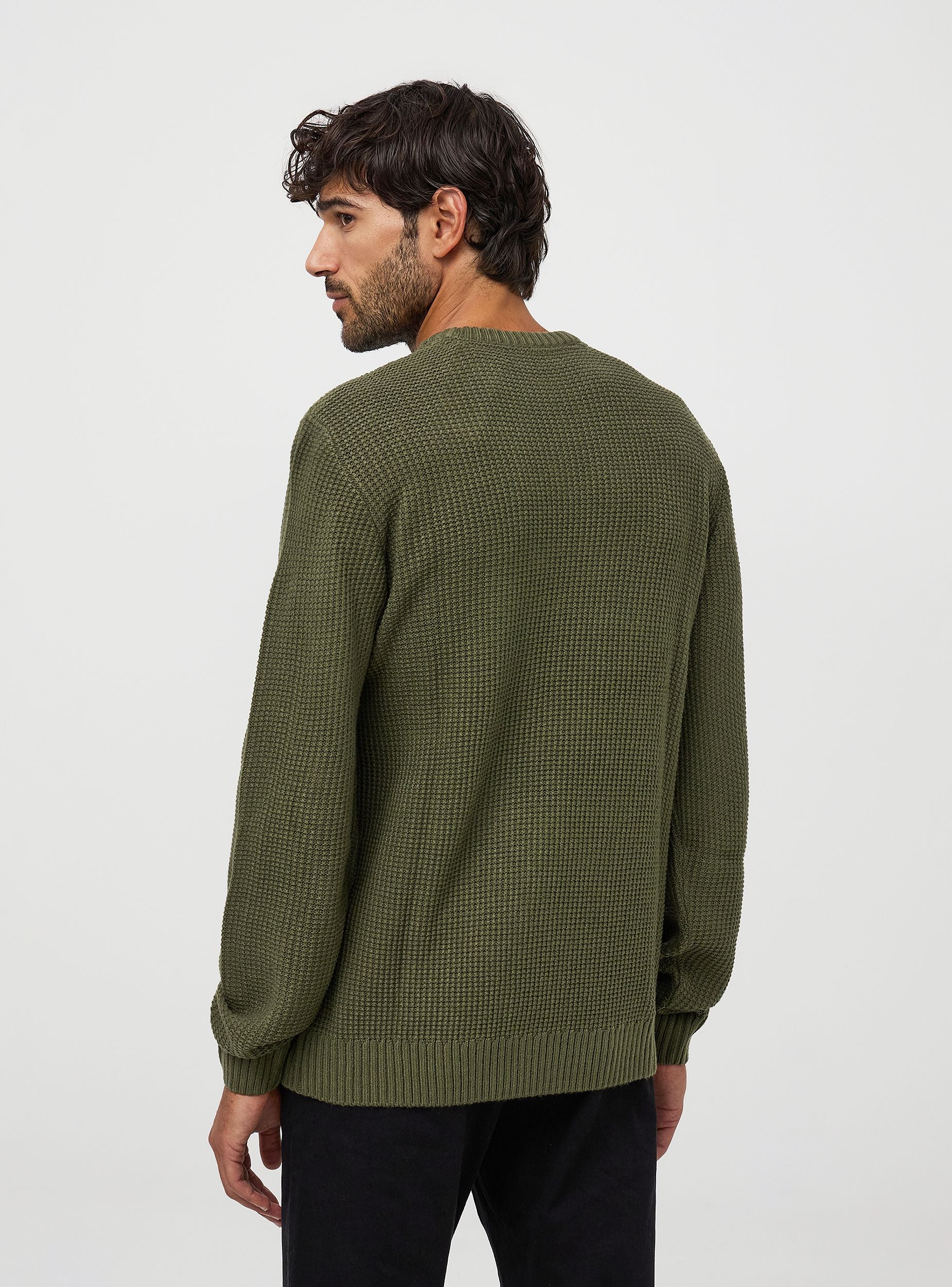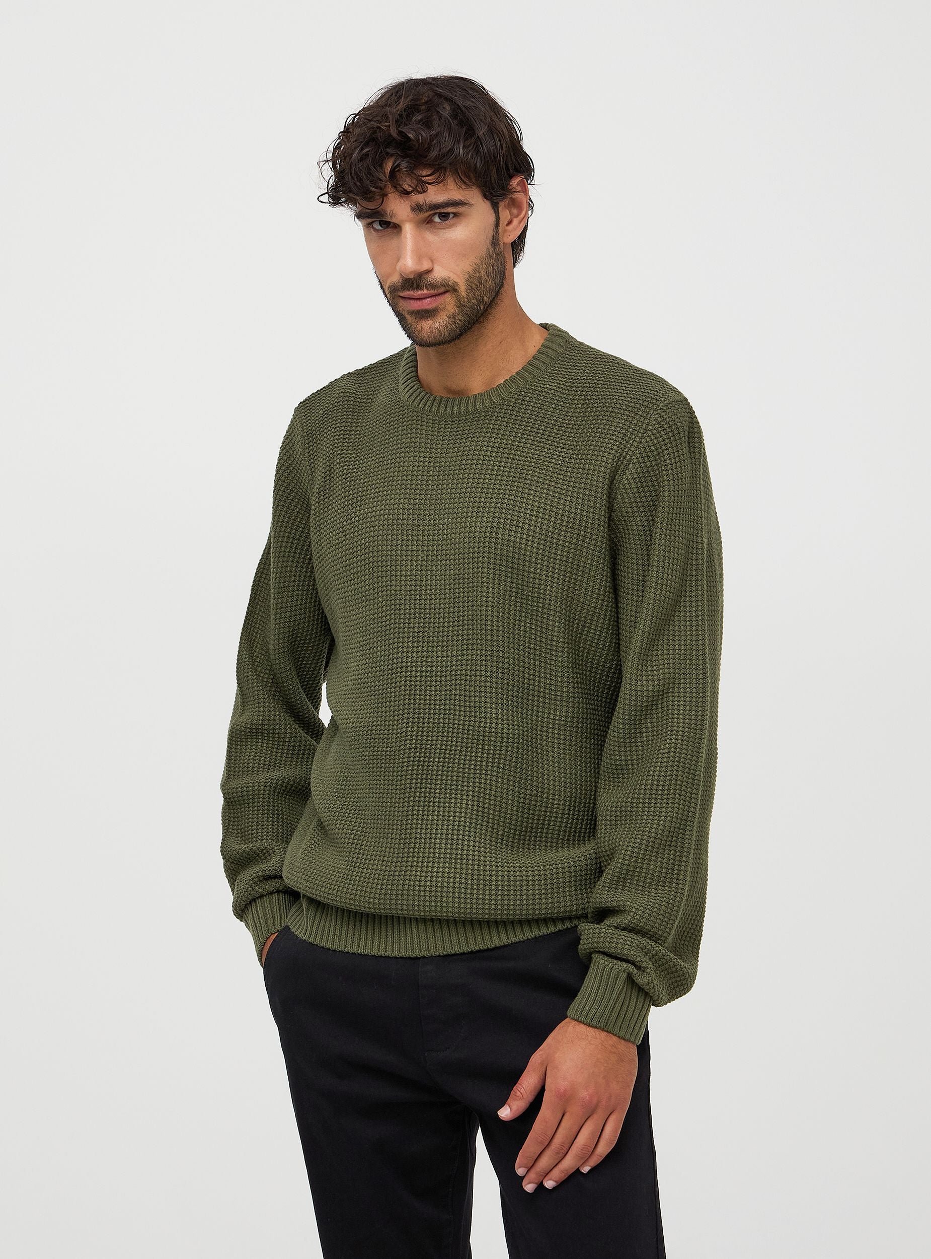 Maglione da uomo a tinta unita con lavorazione a punto riso in tessuto pesante. Il modello è caratterizzato da un design semplice con girocollo e maniche lunghe, che offrono una vestibilità regolare. Il bordo inferiore, i polsini e il collo sono rifiniti con costine per garantire una maggiore aderenza. Questa maglia è perfetta per le giornate invernali, mantenendo il corpo al caldo senza rinunciare allo stile. Ideale per un look casual e raffinato, questa maglia può essere indossata in diverse occasioni, sia per una giornata di lavoro che per il tempo libero. Si abbina perfettamente con jeans o pantaloni chino, completando l'outfit con una giacca o un cappotto per le giornate più fredde. Un capo essenziale nel guardaroba di ogni uomo, che unisce praticità e moda.