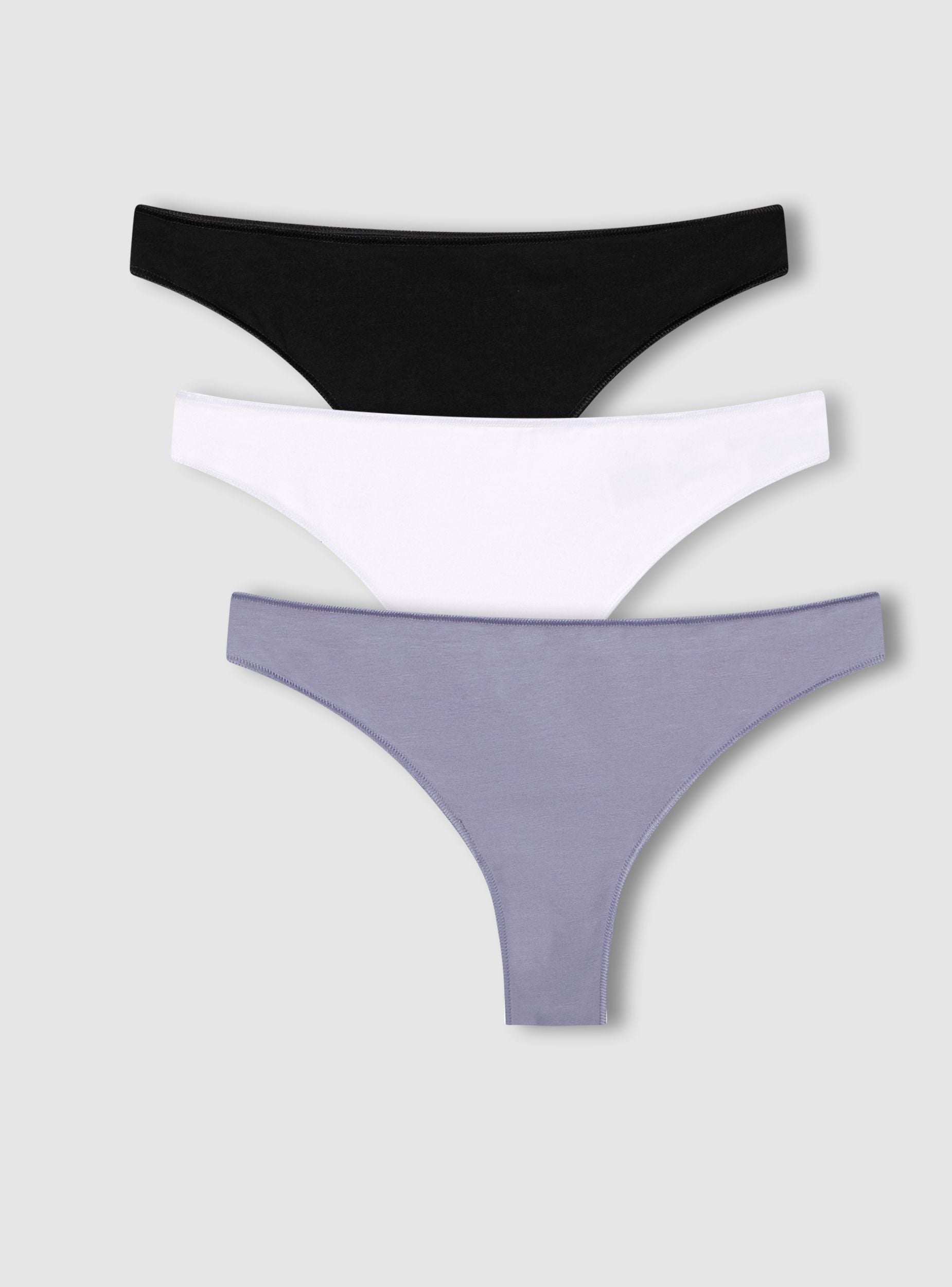 Confezione composta da 3 slip da donna. Slip con vestibilità brasiliana, ideale per un look comodo e versatile. Perfetto per essere indossato sotto abiti aderenti grazie al design tinta unita che garantisce discrezione. La vestibilità brasiliana offre un tocco di femminilità e comfort, rendendolo adatto per l'uso quotidiano o occasioni speciali.