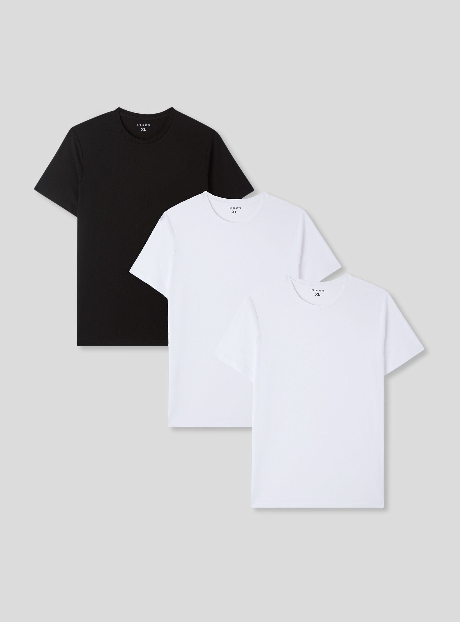 Confezione composta da 3 t-shirt da uomo ideali per il tempo libero o per un look quotidiano essenziale. Il modello a tinta unita si distingue per il design versatile con maniche corte e girocollo, perfetto per ogni stagione. La vestibilità comoda le rende adatte a qualsiasi occasione informale, abbinate a jeans o pantaloni sportivi per un outfit semplice e curato.
