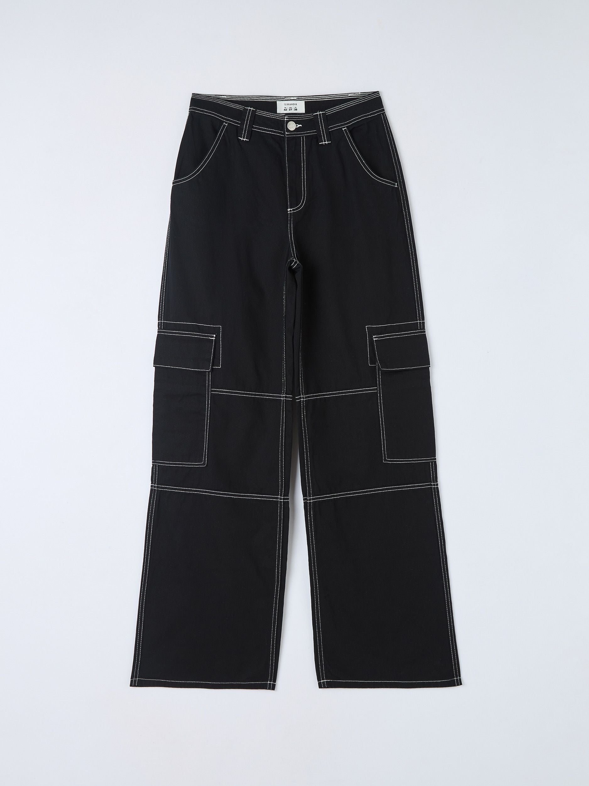 Pantaloni da donna a tinta unita, dallo stile cargo con pratici tasconi applicati sui lati delle gambe. Il design presenta una chiusura con cerniera e bottone, assicurando una vestibilità confortevole e sicura. La linea del pantalone è dritta, offrendo una silhouette comoda e moderna, ideale per un look casual ma ricercato. Perfetto per chi cerca un capo funzionale e alla moda, facile da abbinare a vari stili e occasioni.