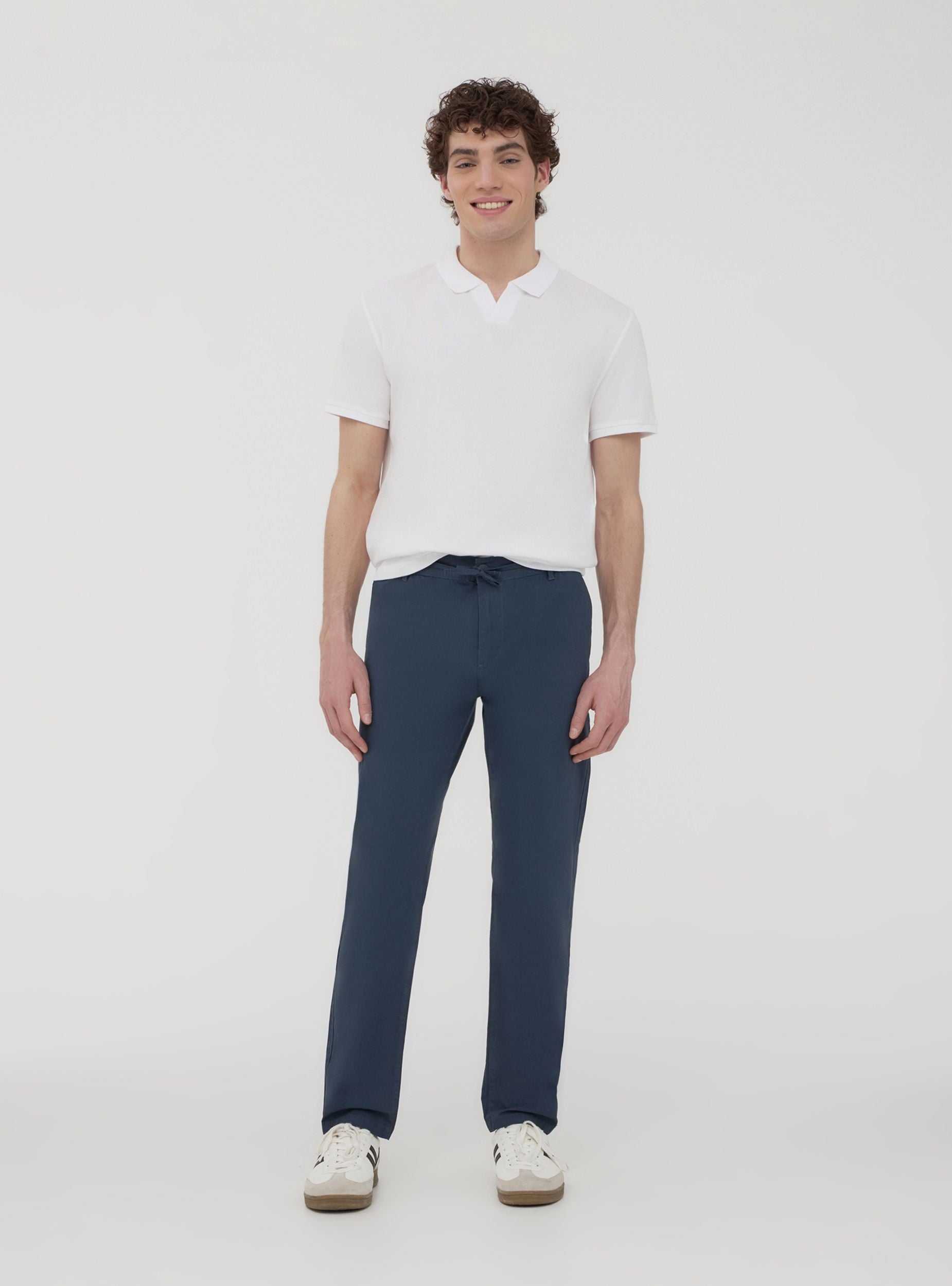 Pantaloni da uomo chino leggeri perfetti per un look raffinato e confortevole. La vestibilità comoda e il tessuto leggero li rendono ideali per la stagione più calda, mentre la coulisse regolabile e i passanti in vita permettono di personalizzare la vestibilità. La chiusura con bottone e zip garantisce praticità, mentre le tasche laterali aggiungono funzionalità. Il design a tinta unita li rende versatili per outfit casual con t-shirt e sneakers o più eleganti con camicia e mocassini.