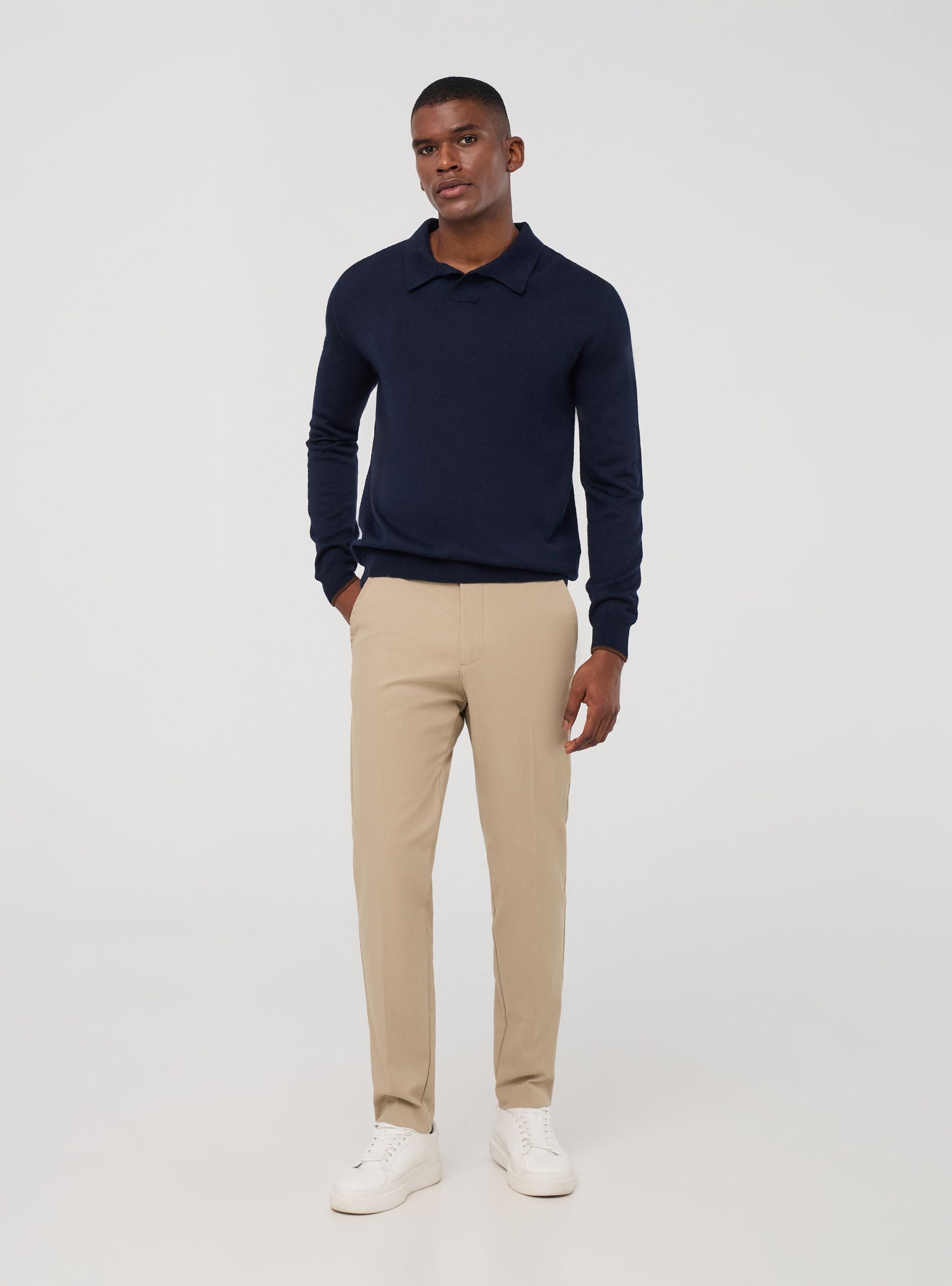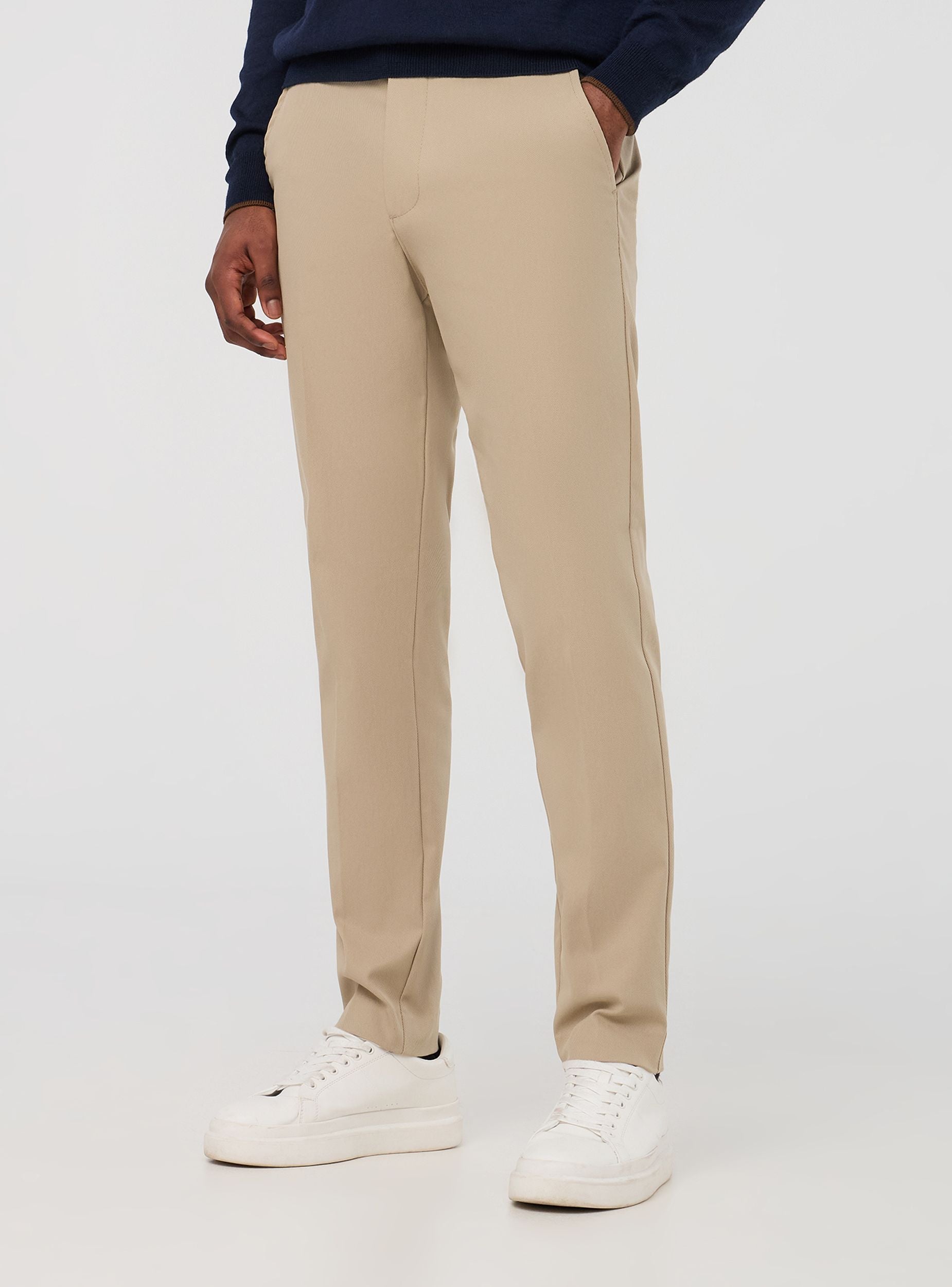 Pantaloni chino da uomo a tinta unita, con un design moderno. Dotati di passanti in vita per l'uso di una cintura e chiusura con bottone frontale. Le tasche laterali conferiscono praticità e stile, rendendo questi pantaloni ideali sia per occasioni casual che per ambienti più formali. Facili da abbinare con camicie o t-shirt per un look versatile e raffinato.