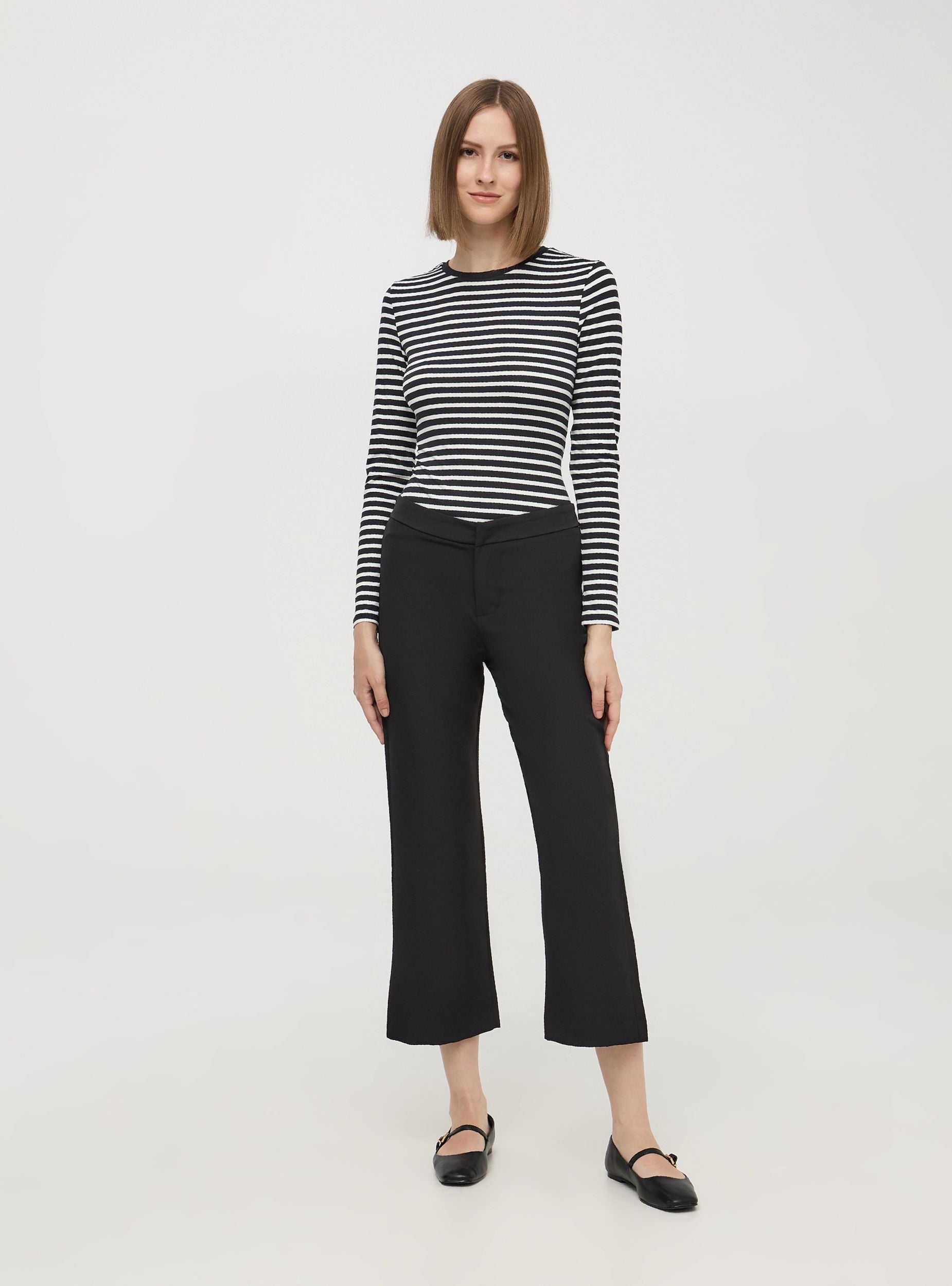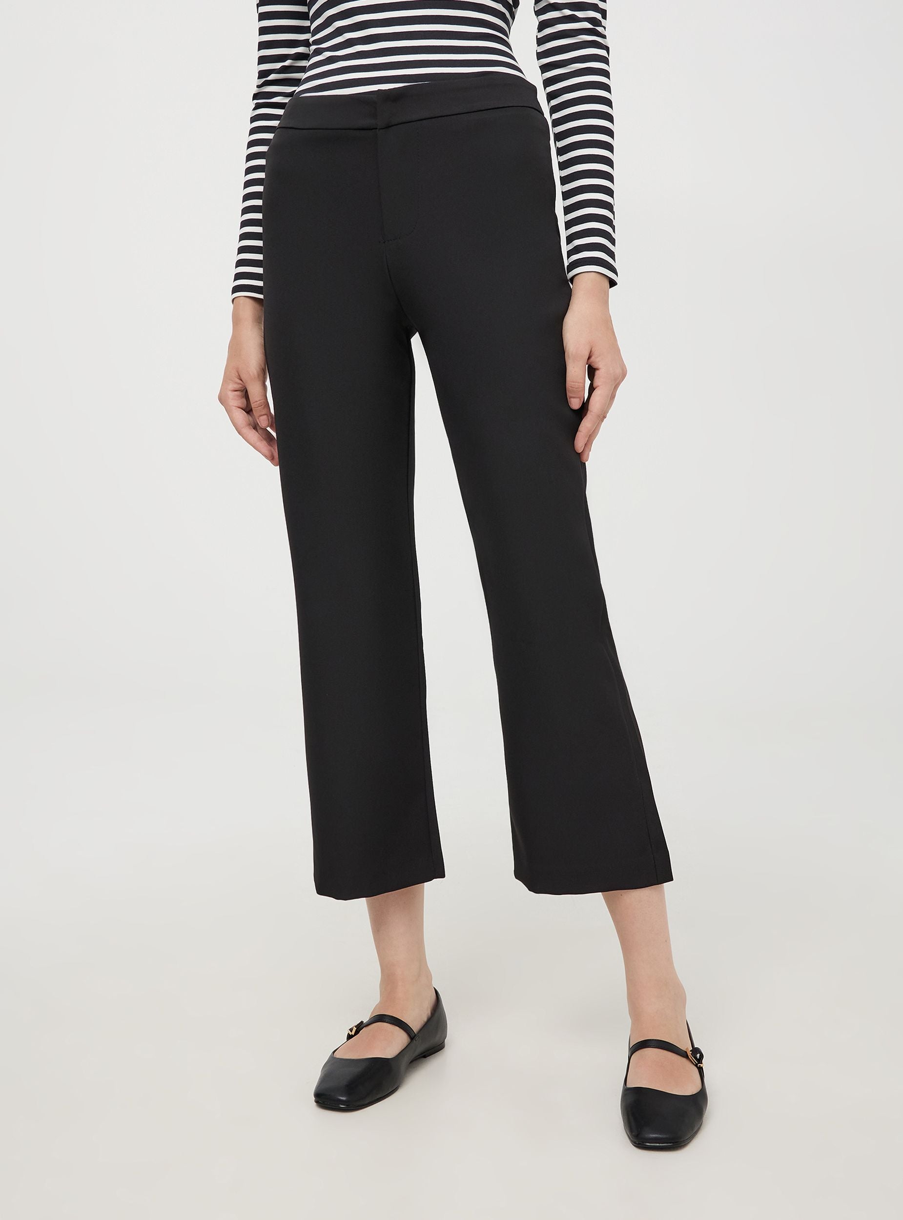 Questi pantaloni da donna presentano un taglio crop flare, con un design svasato che aggiunge un tocco di eleganza e modernità. Ideali per un look casual-chic, questi pantaloni offrono una vestibilità confortevole grazie al tessuto elasticizzato che si adatta perfettamente alle forme del corpo. Perfetti per essere abbinati con bluse, maglie o giacche, sono un capo versatile adatto sia per l'ufficio che per il tempo libero.Dettagli