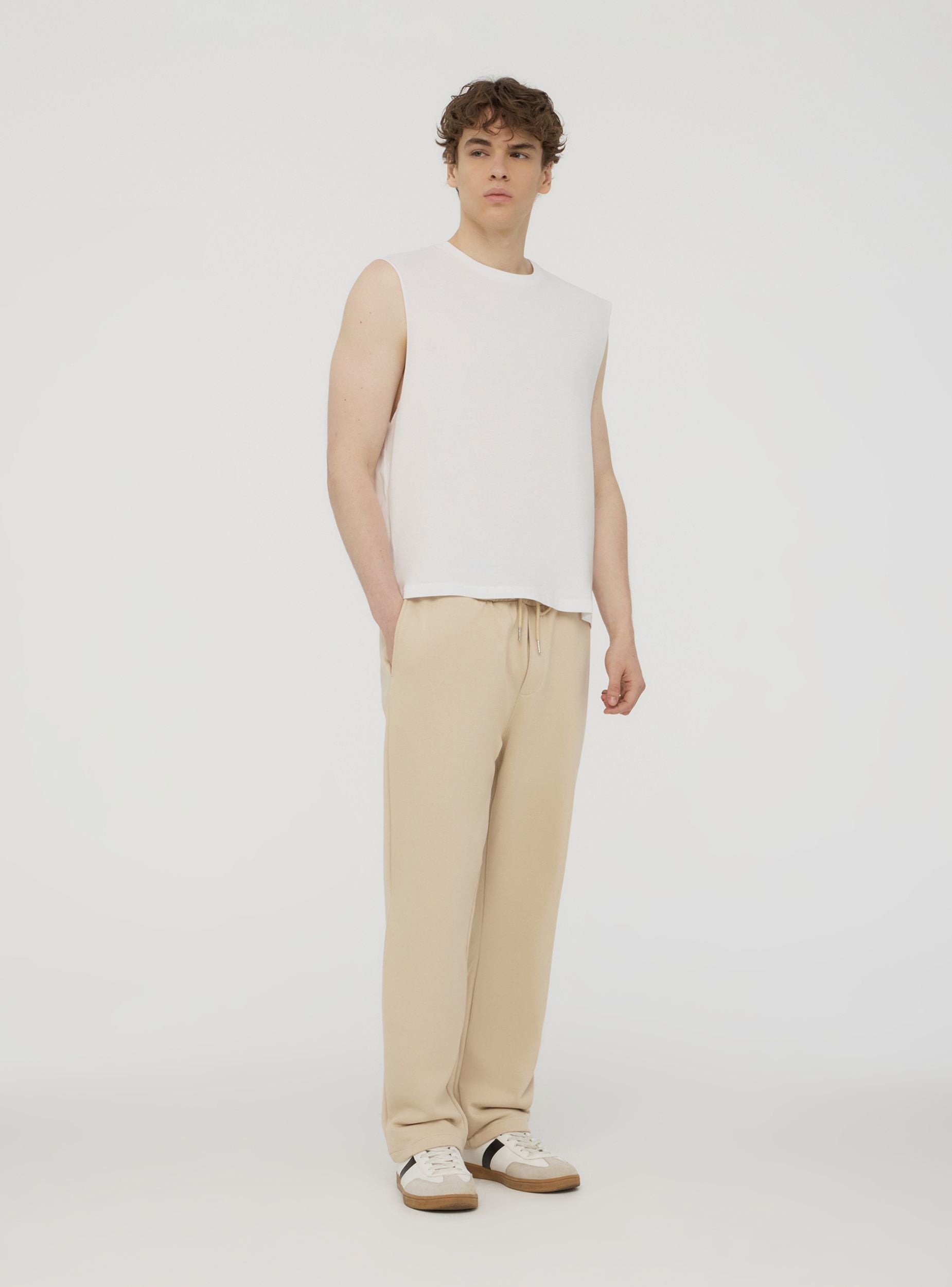 Pantaloni ginnici da uomo con gamba lunga e vestibilità rilassata. Il design a tinta unita li rende ideali per il tempo libero, l'allenamento o look casual. Dotati di chiusura con coulisse regolabile per una vestibilità personalizzata e pratiche tasche laterali. Perfetti da abbinare a felpe, t-shirt e sneakers per un outfit sportivo o urbano dal comfort elevato.Dettagli