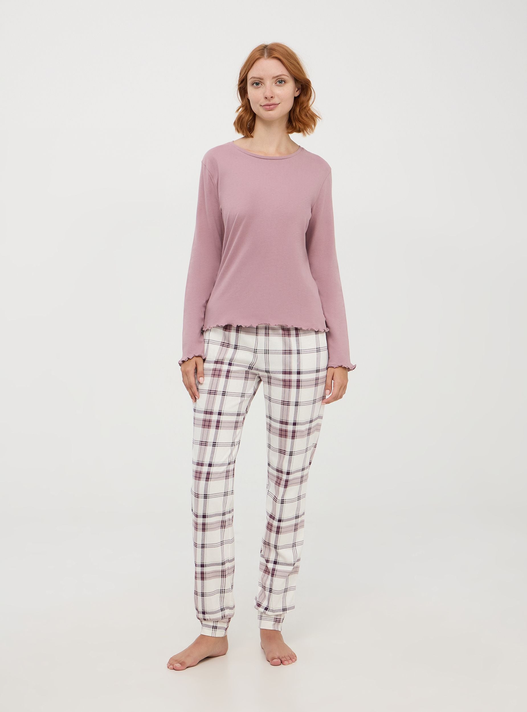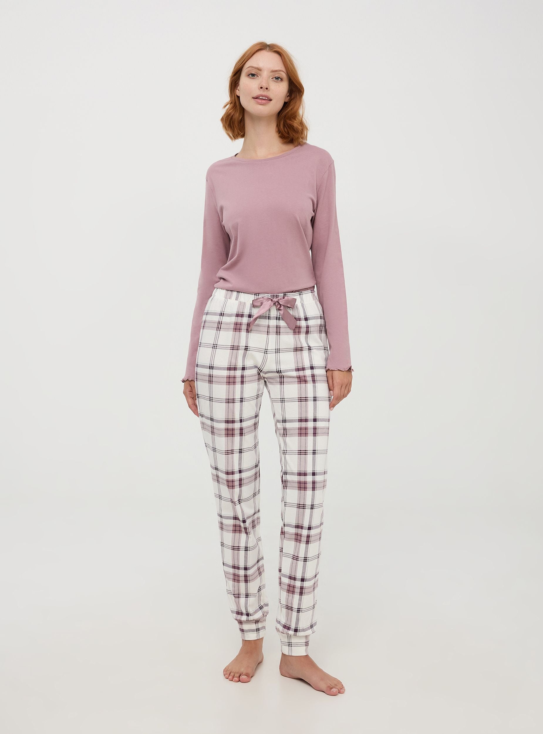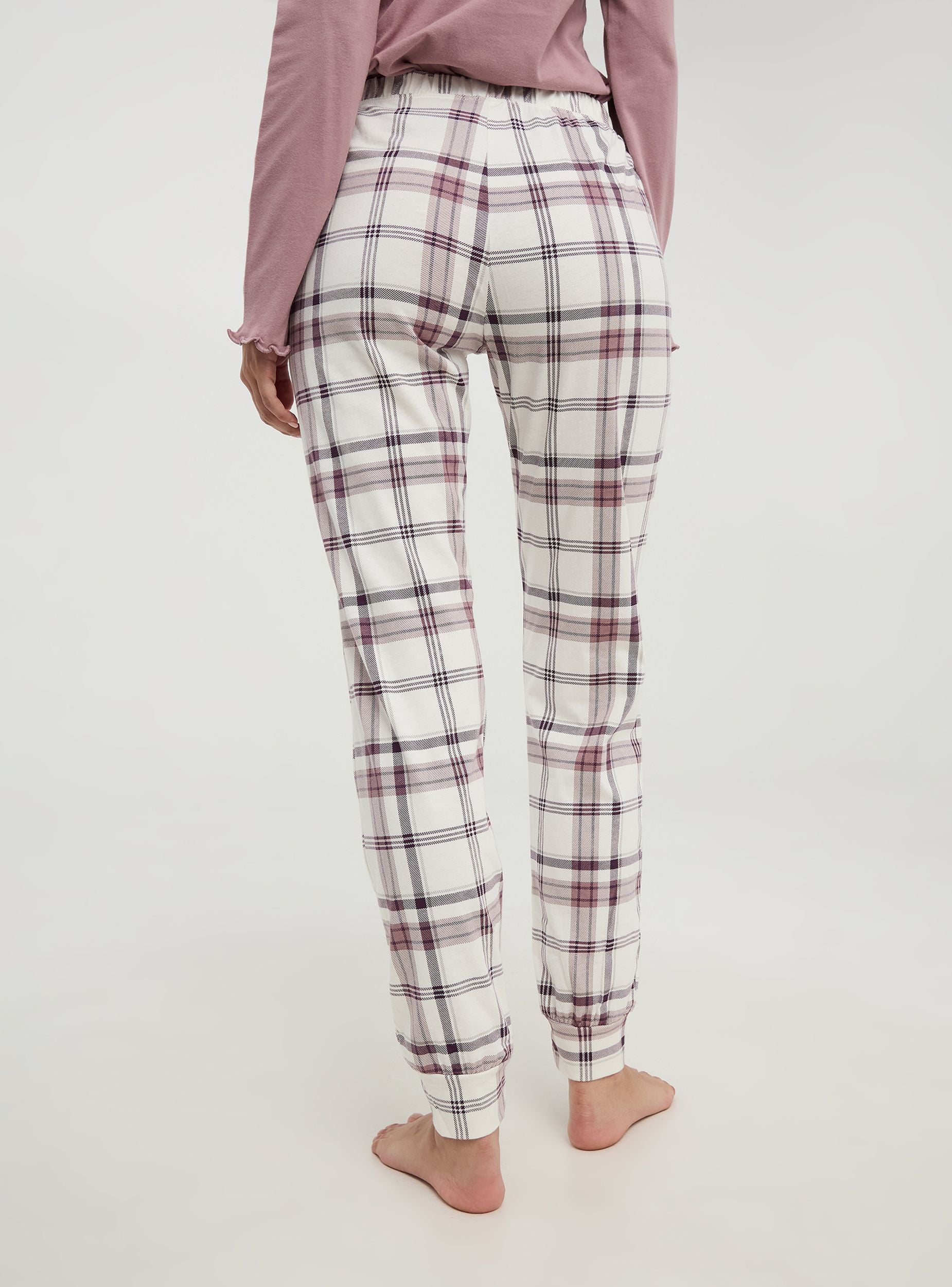 Pantaloni da pigiama realizzati in morbido cotone, ideale per garantire comfort e traspirabilità. Il design presenta un motivo a quadri, perfetto per aggiungere un tocco di stile anche ai momenti di relax. Dotato di fascia elastica in vita e coulisse. I bordi delle caviglie sono elasticizzati per un ottimo comfort durante il sonno.