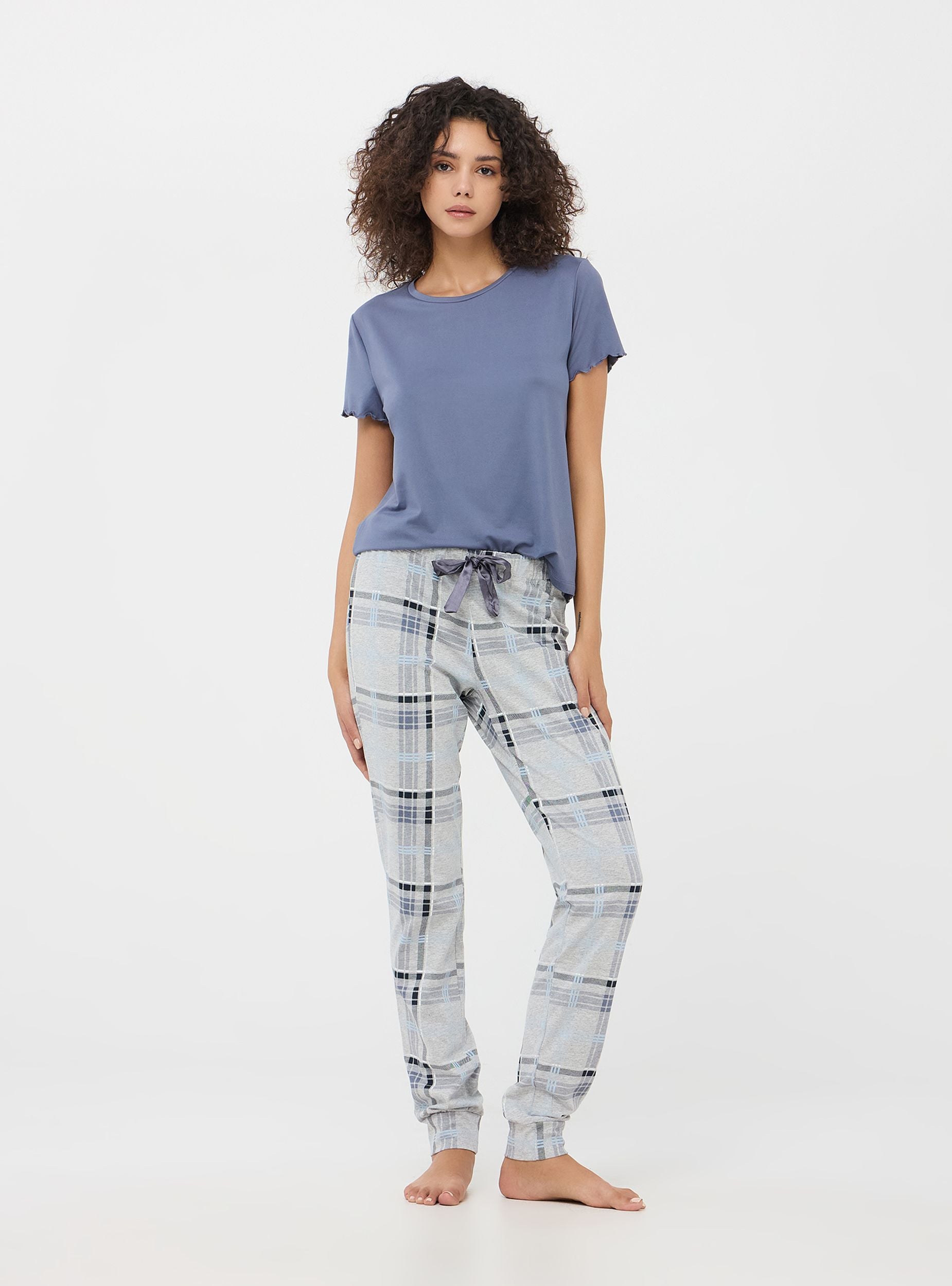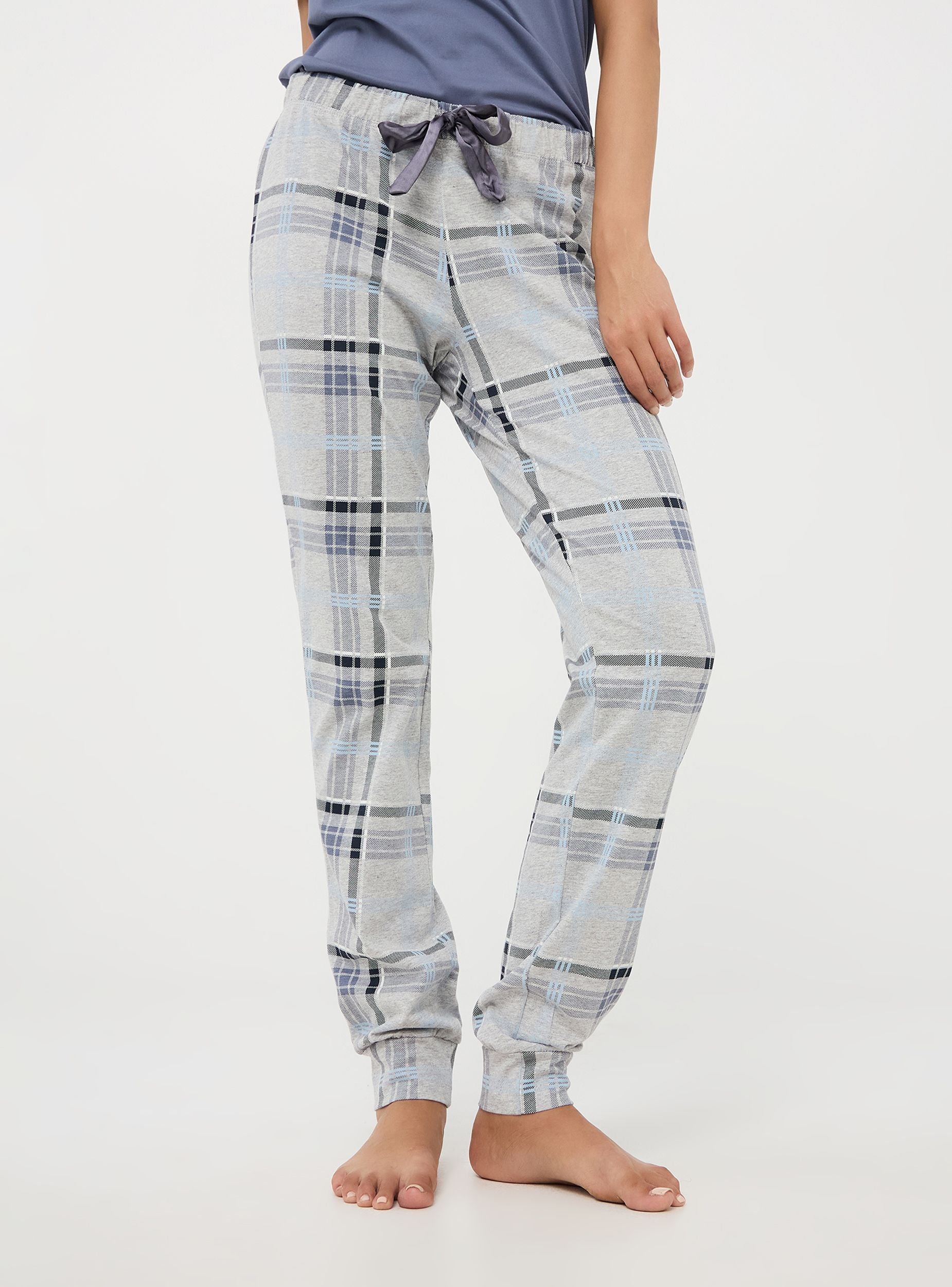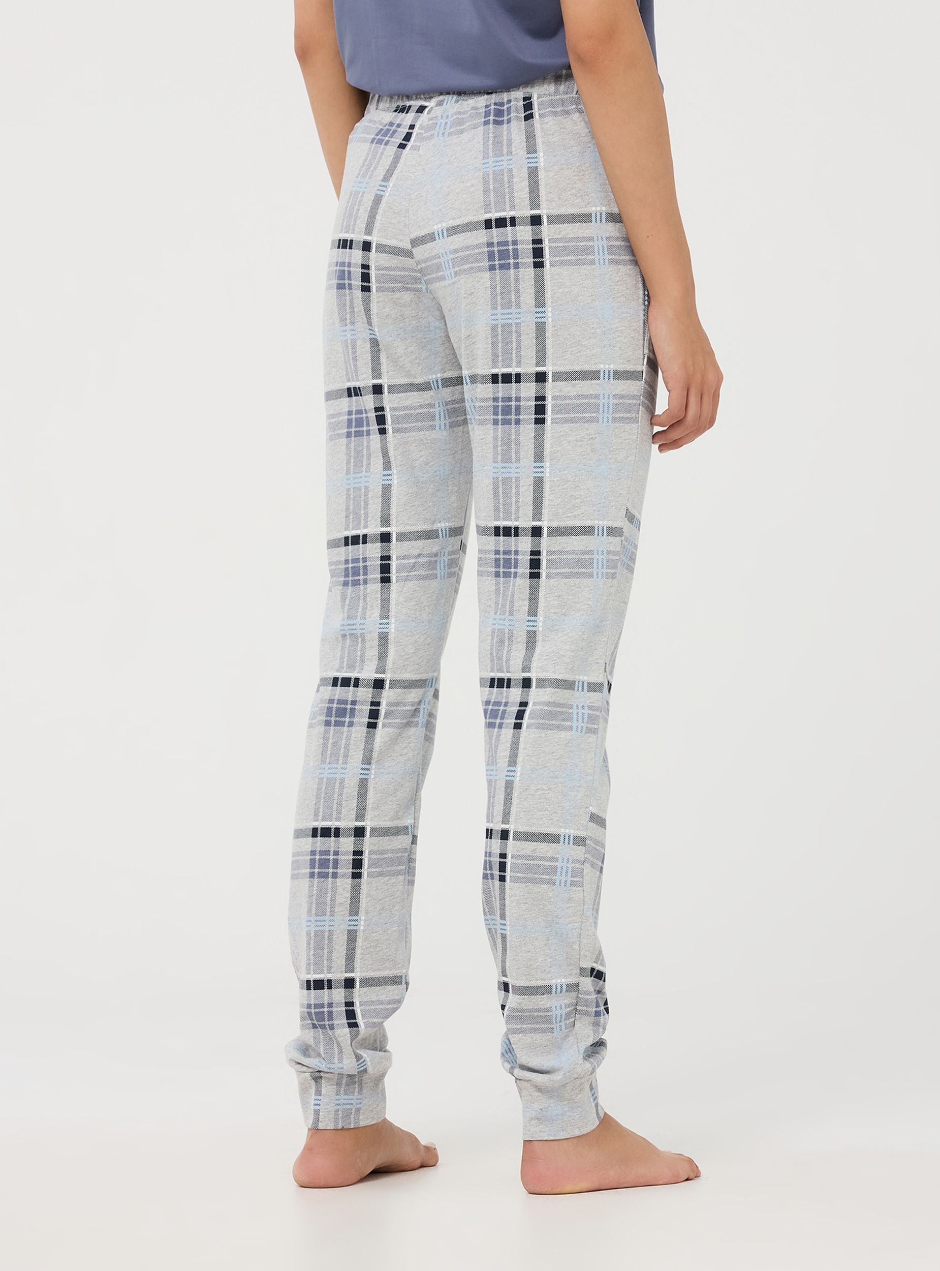 Pantaloni da pigiama realizzati in morbido cotone, ideale per garantire comfort e traspirabilità. Il design presenta un motivo a quadri, perfetto per aggiungere un tocco di stile anche ai momenti di relax. Dotato di fascia elastica in vita e coulisse. I bordi delle caviglie sono elasticizzati per un ottimo comfort durante il sonno.