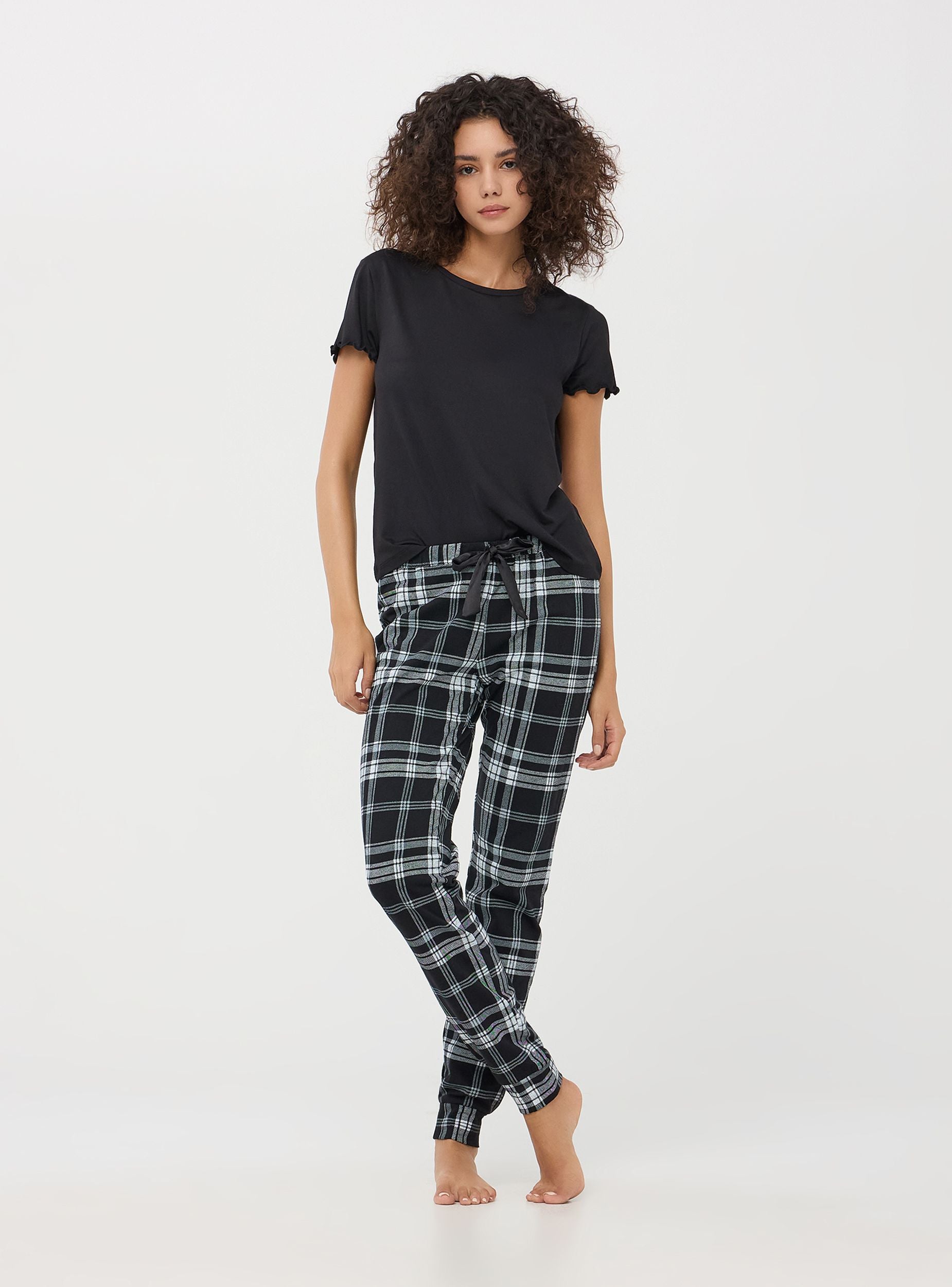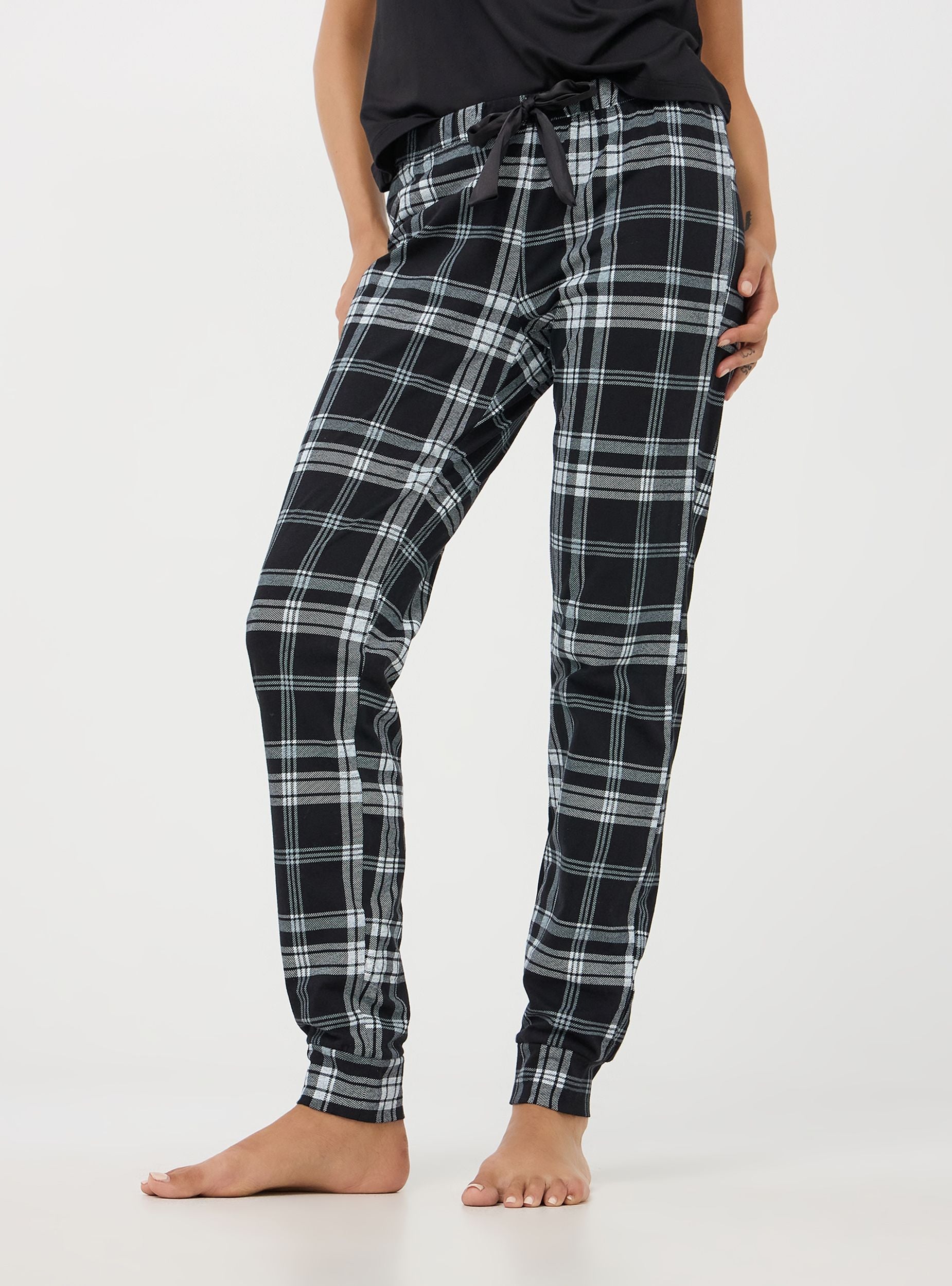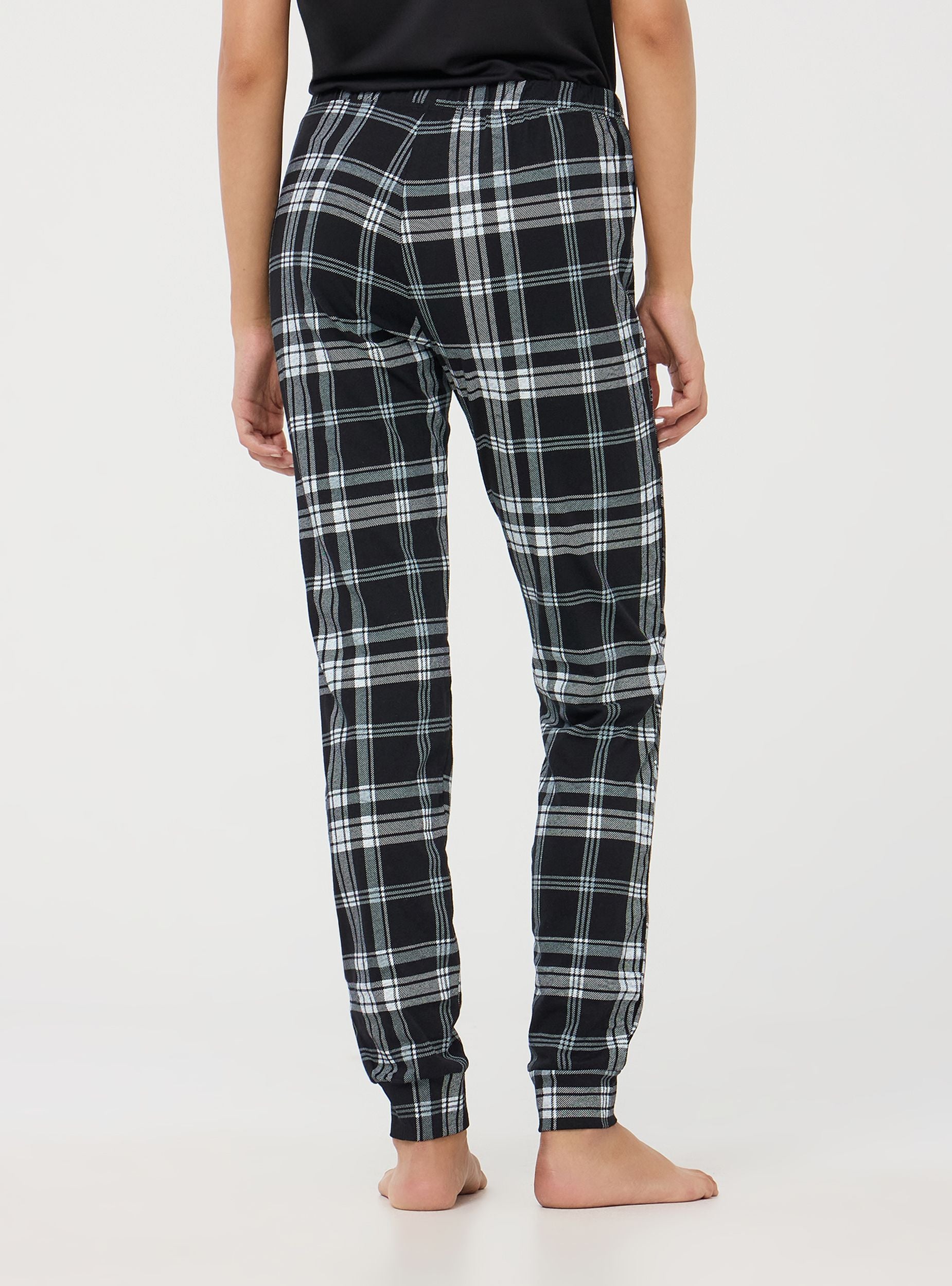 Pantaloni da pigiama realizzati in morbido cotone, ideale per garantire comfort e traspirabilità. Il design presenta un motivo a quadri, perfetto per aggiungere un tocco di stile anche ai momenti di relax. Dotato di fascia elastica in vita e coulisse. I bordi delle caviglie sono elasticizzati per un ottimo comfort durante il sonno.