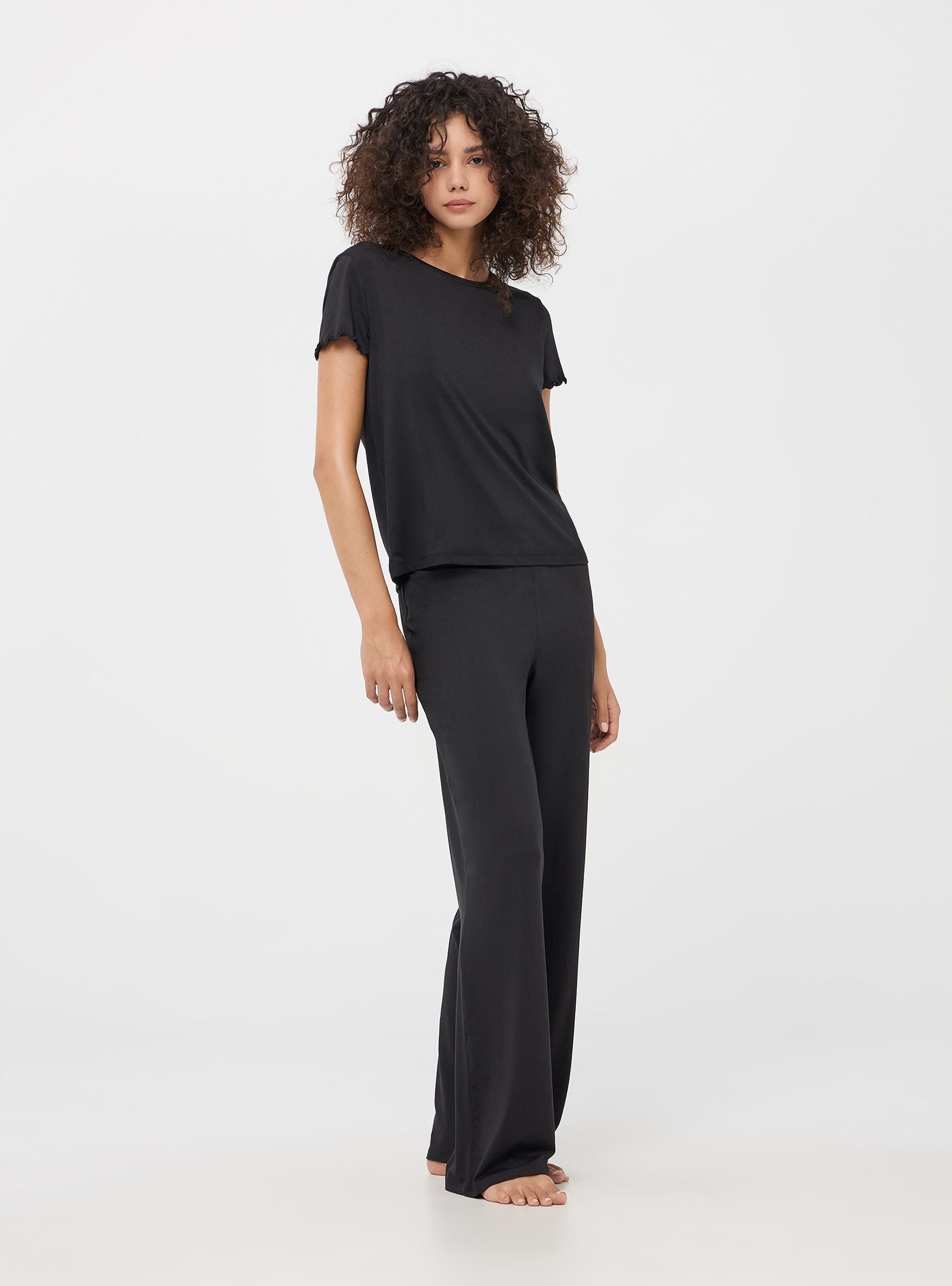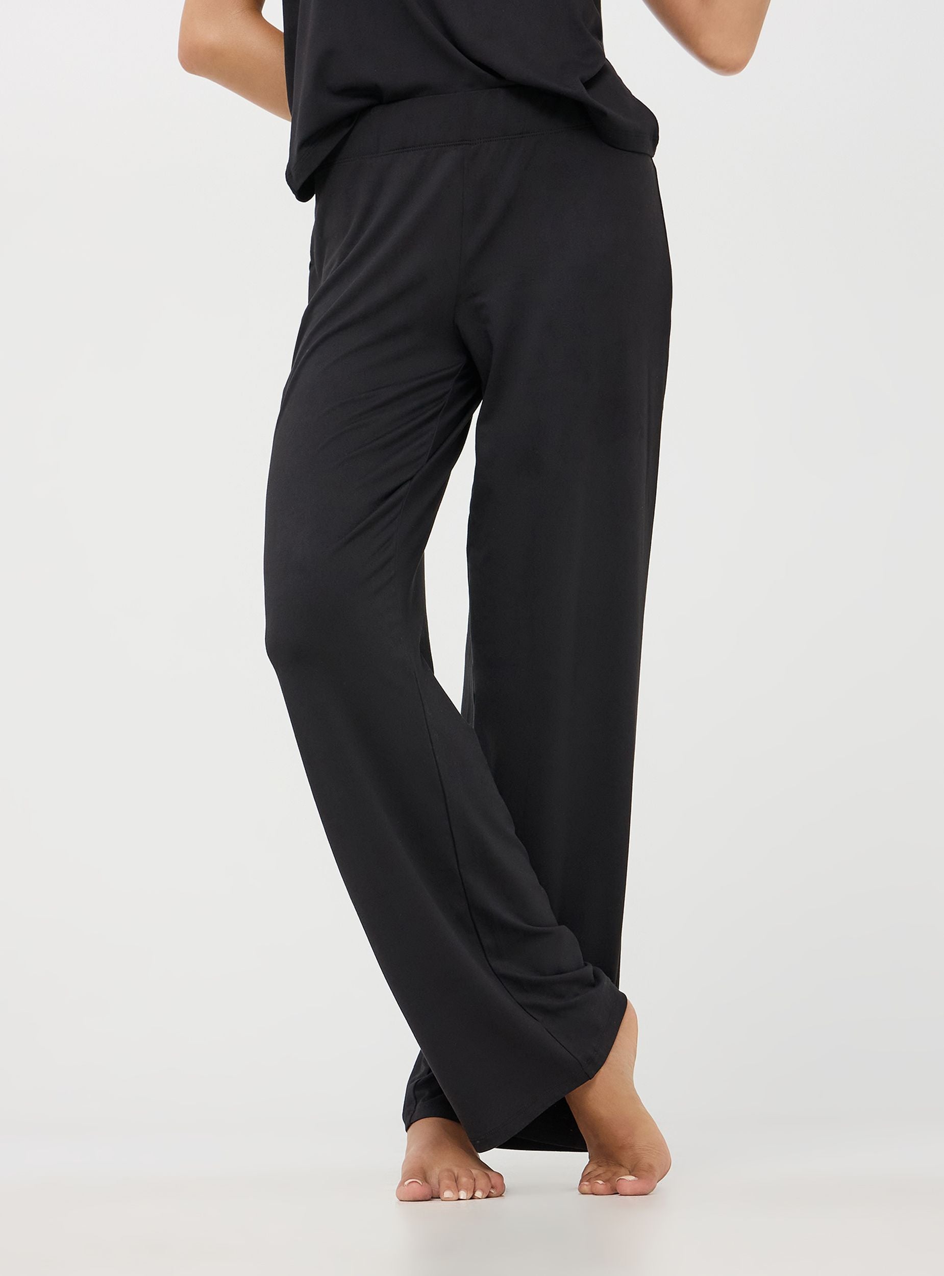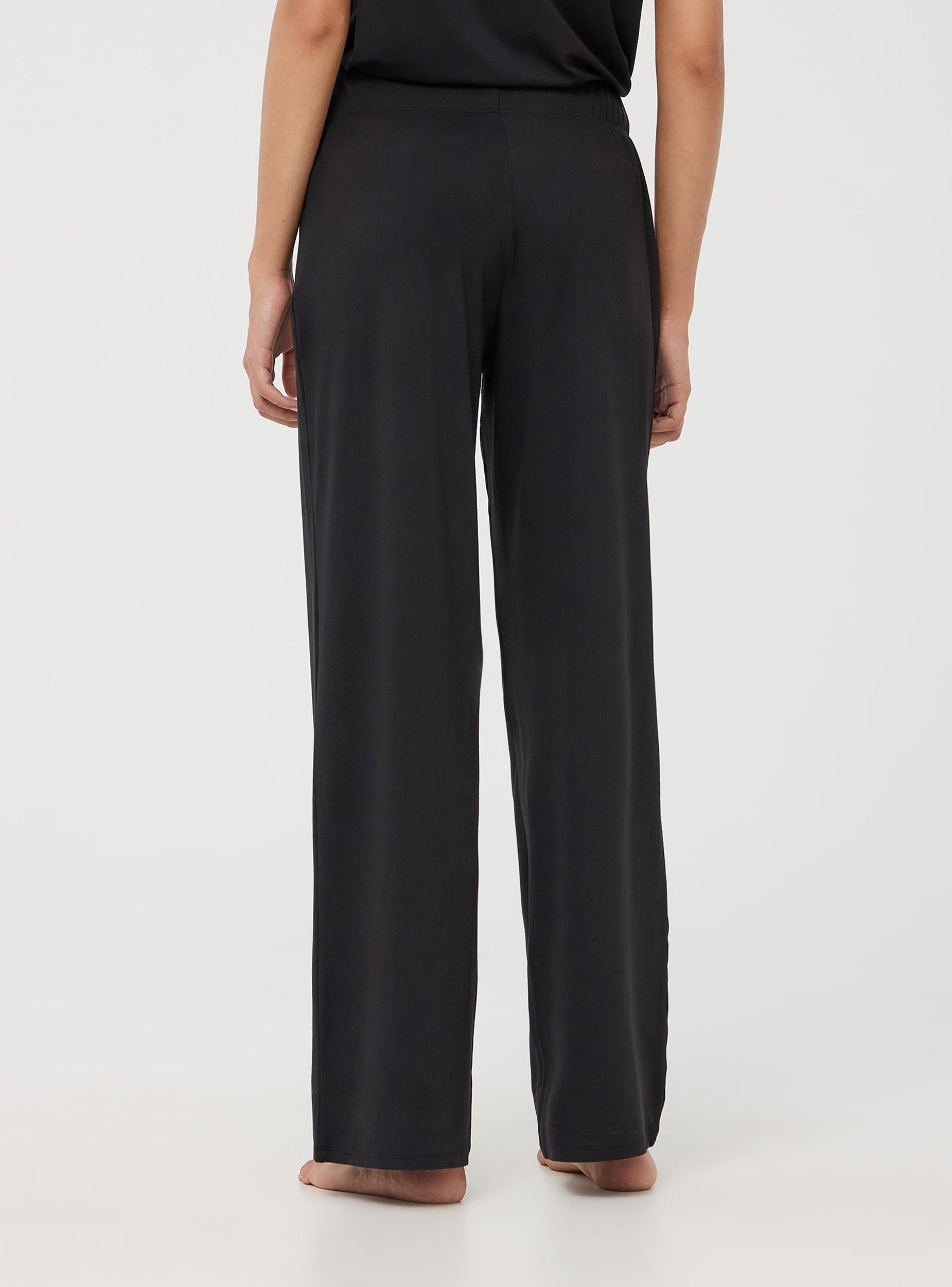 Pantaloni del pigiama ampi da donna a tinta unita. Offrono un comfort insuperabile e uno stile raffinato. La vita elasticizzata garantisce una vestibilità perfetta, mentre l'assenza di tasche e zip assicura una linea pulita e minimalista.