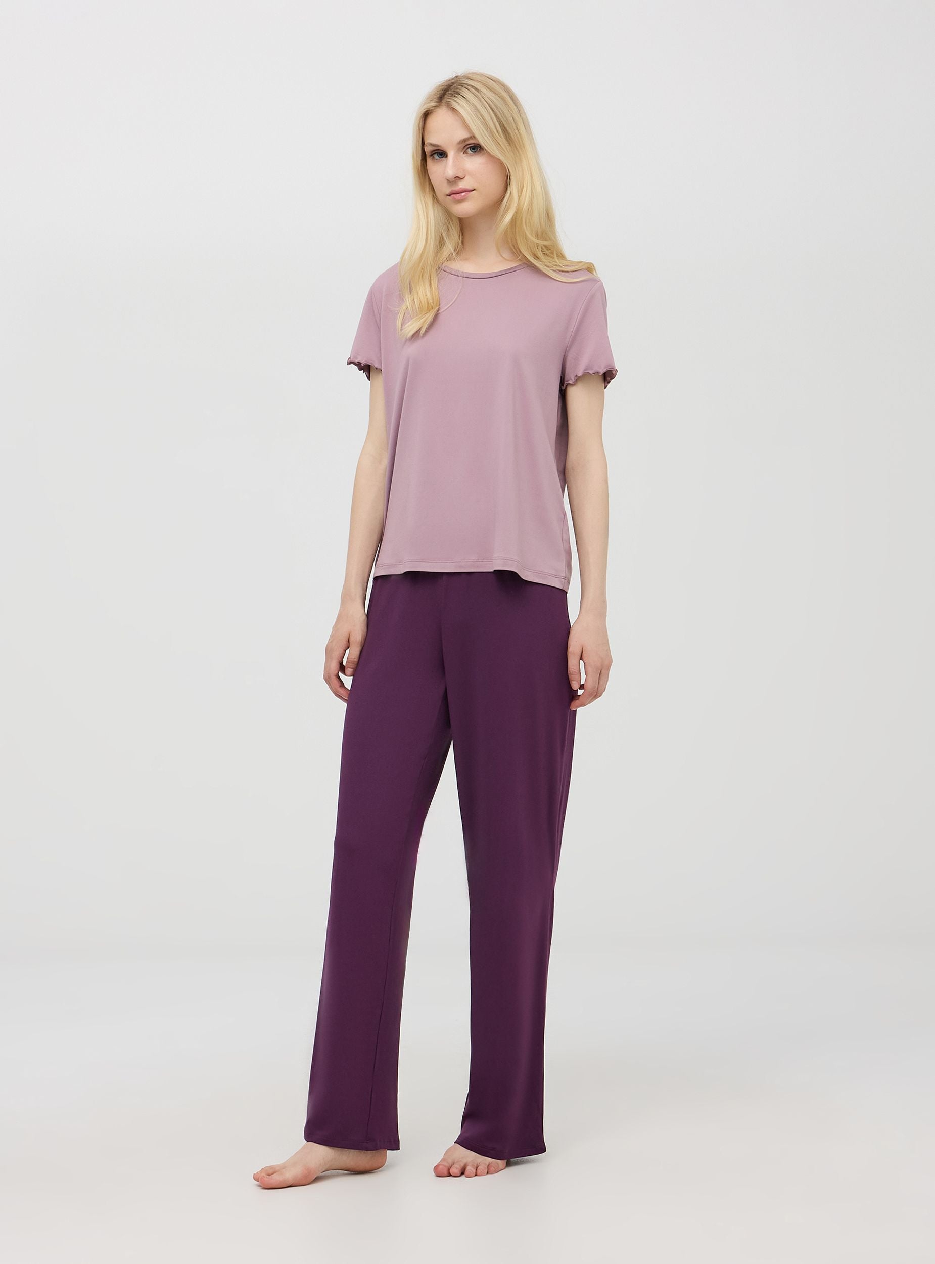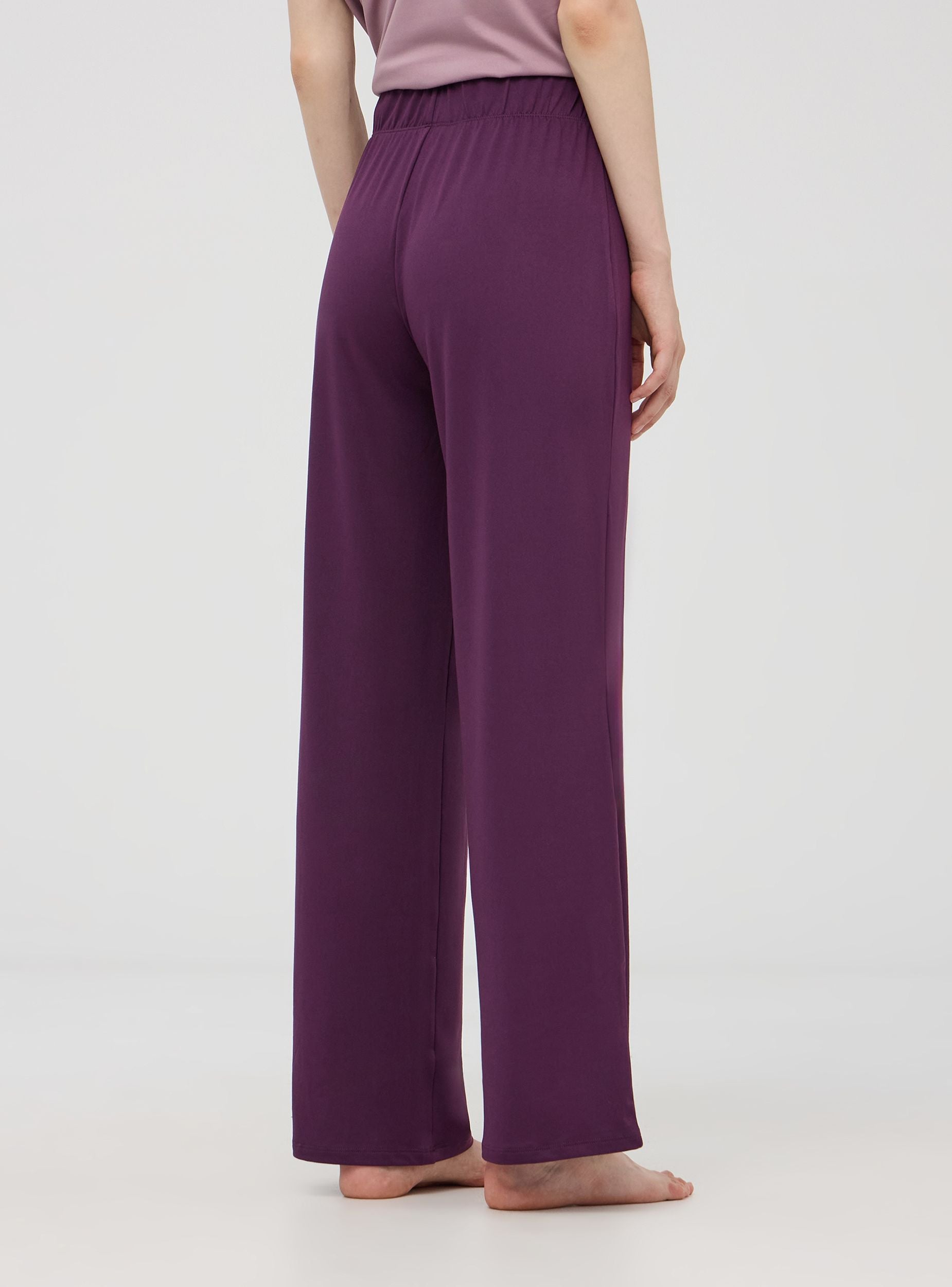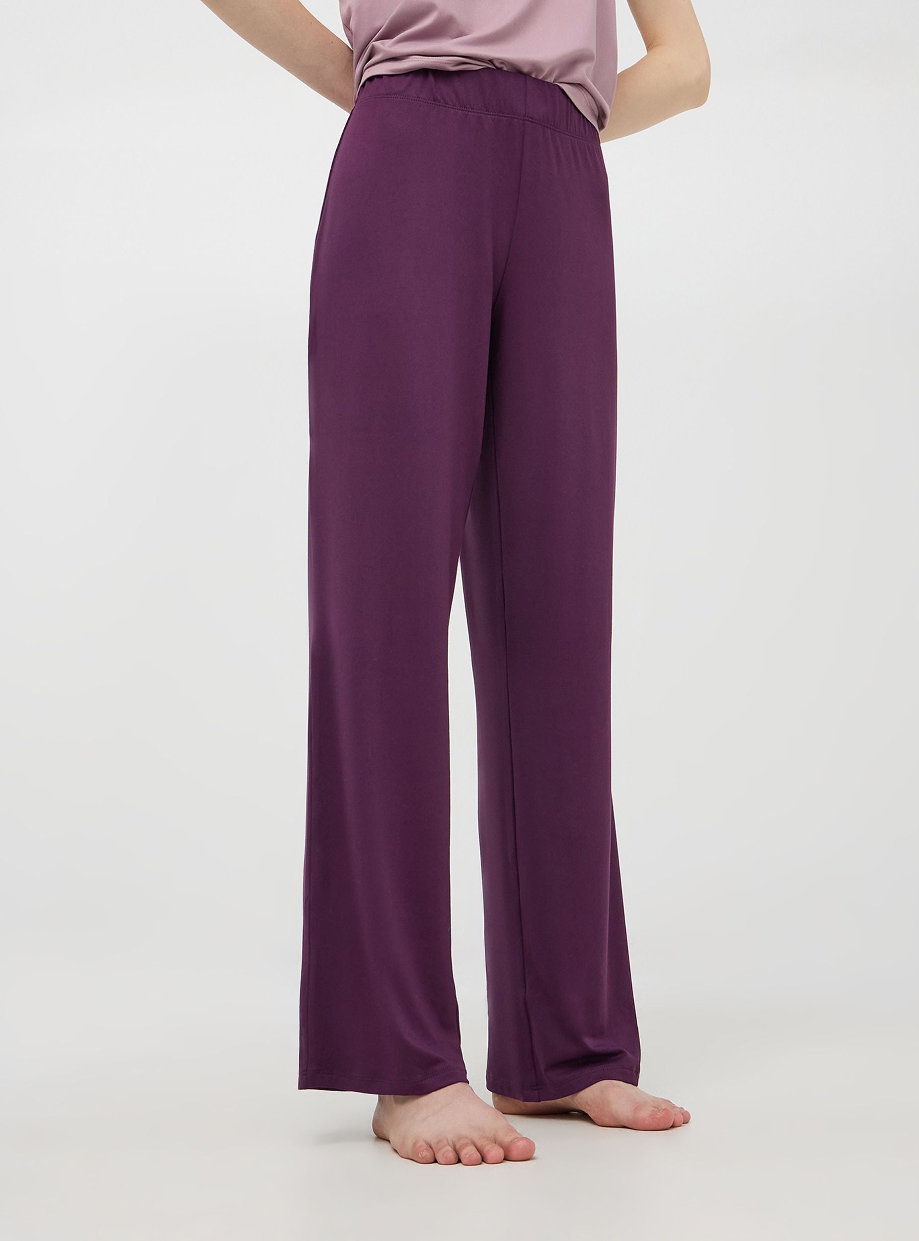 Pantaloni del pigiama ampi da donna a tinta unita. Offrono un comfort insuperabile e uno stile raffinato. La vita elasticizzata garantisce una vestibilità perfetta, mentre l'assenza di tasche e zip assicura una linea pulita e minimalista.