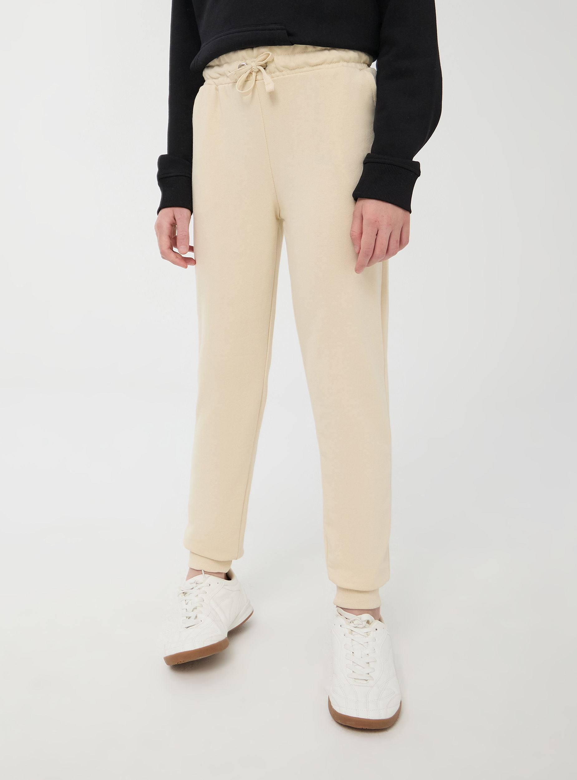 Pantaloni della tuta da bambina realizzati in tessuto leggero, presentano una linea semplice e confortevole. Hanno un elastico in vita per una vestibilità comoda e sicura, e una coulisse per una regolazione personalizzata. I polsini alle caviglie sono a costine, contribuendo a mantenere la forma e offrendo un aspetto curato. Questi pantaloni sono ideali per le attività quotidiane grazie al loro design pratico e funzionale.