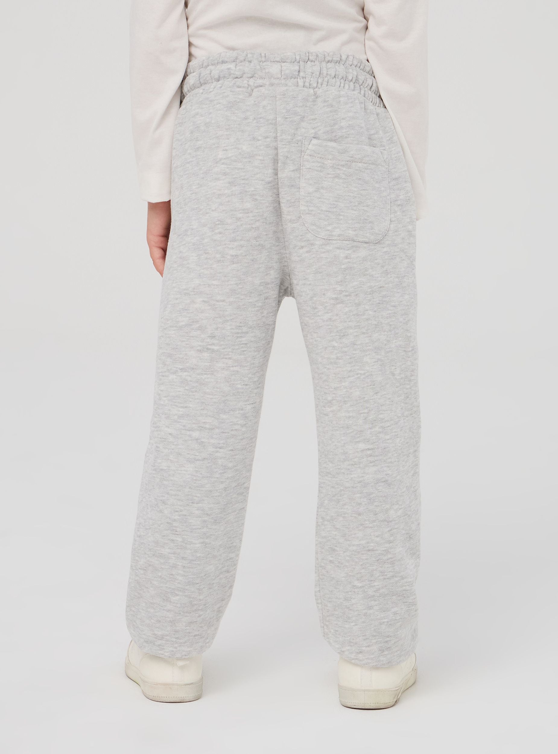 Pantaloni della tuta da bimbo con coulisse in vita per regolarne la vestibilità. Realizzati in tessuto pesante a tinta unita sono perfetti per le fredde giornate invernali. Dotati di polsini alle caviglie elasticizzati e di una tasca posteriore.