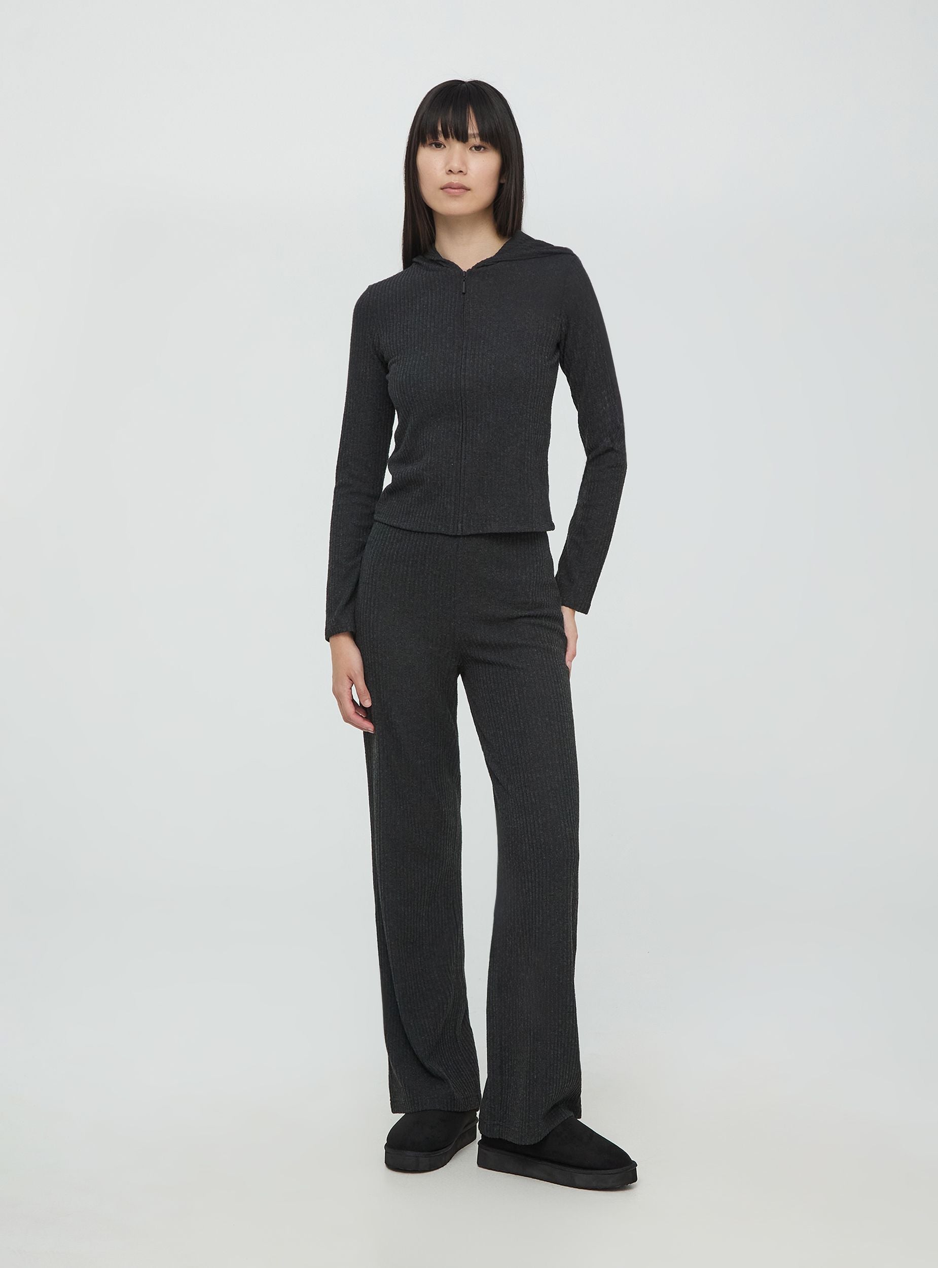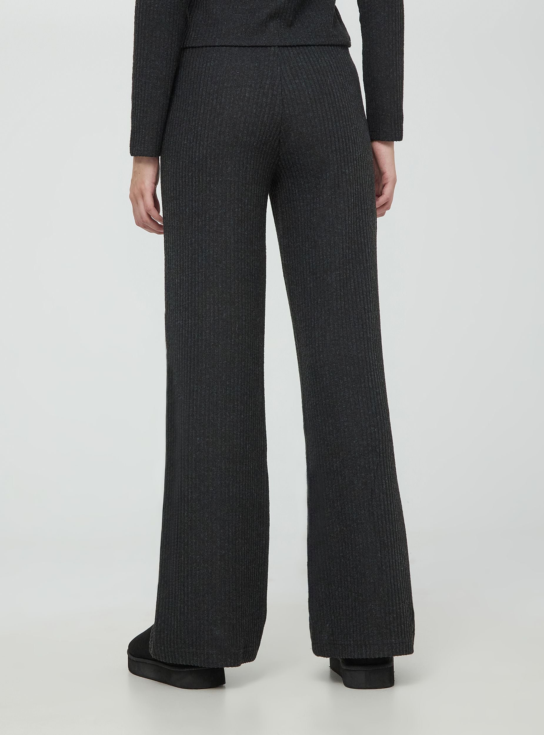 Pantaloni a gamba larga da donnna realizzati in morbido tessuto a coste a tinta unita. La vestibilità ampia e il taglio lungo li rendono perfetti per un look casual-chic. I dettagli minimal includono una vita elasticizzata per un comfort ottimale.