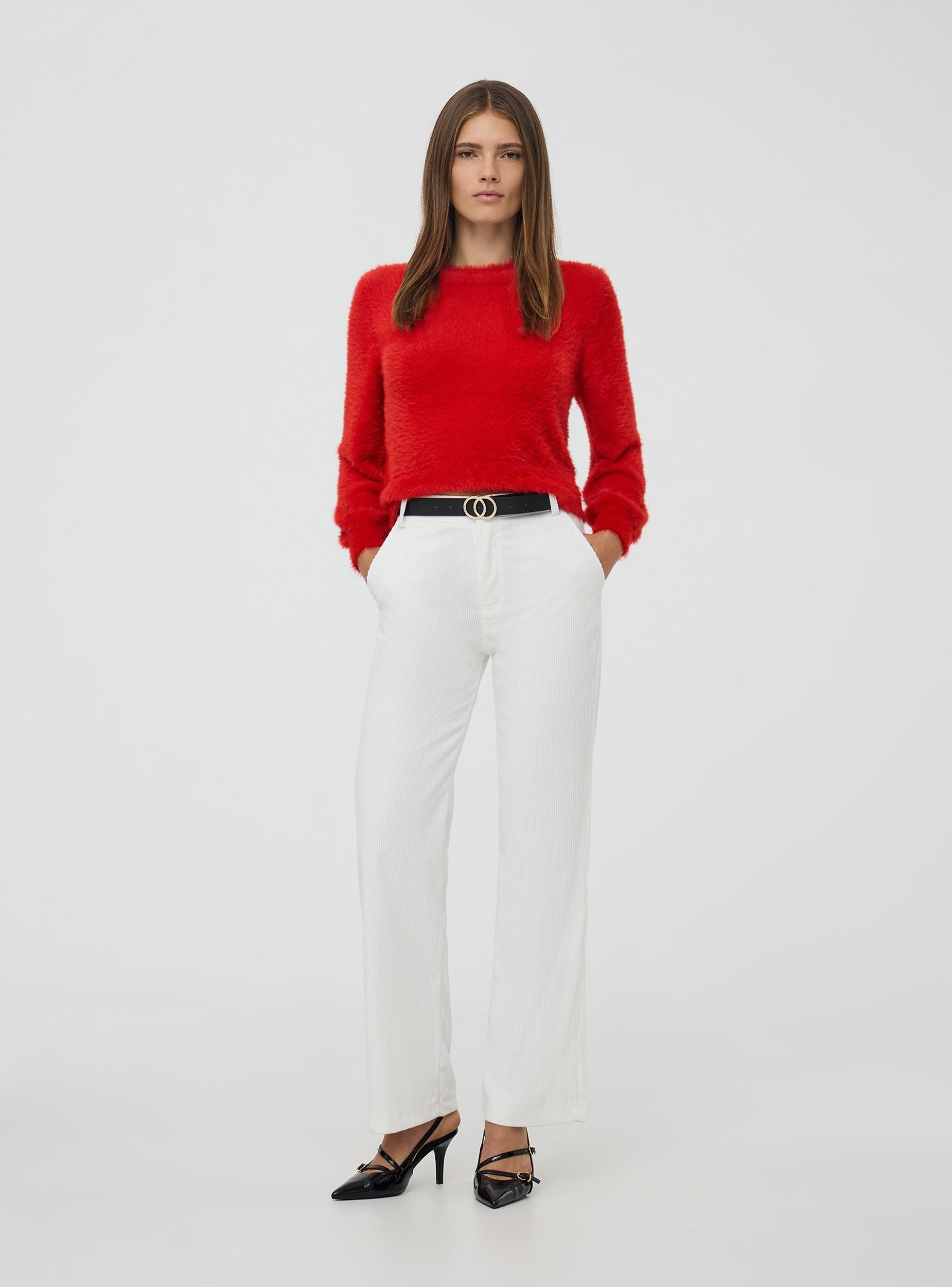 Pantaloni da donna, modello wide leg, in tessuto tinta unita effetto velluto. Vestibilità comoda.