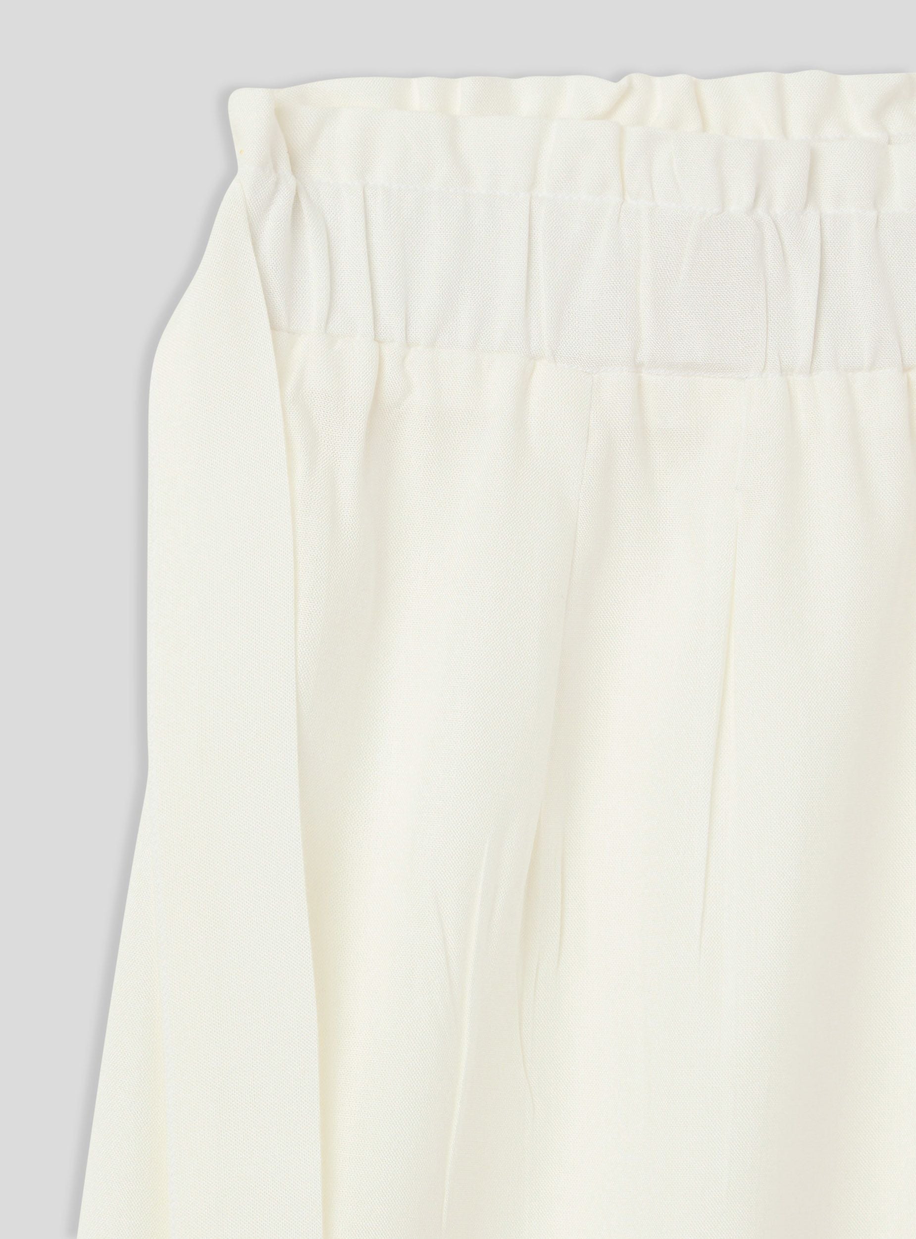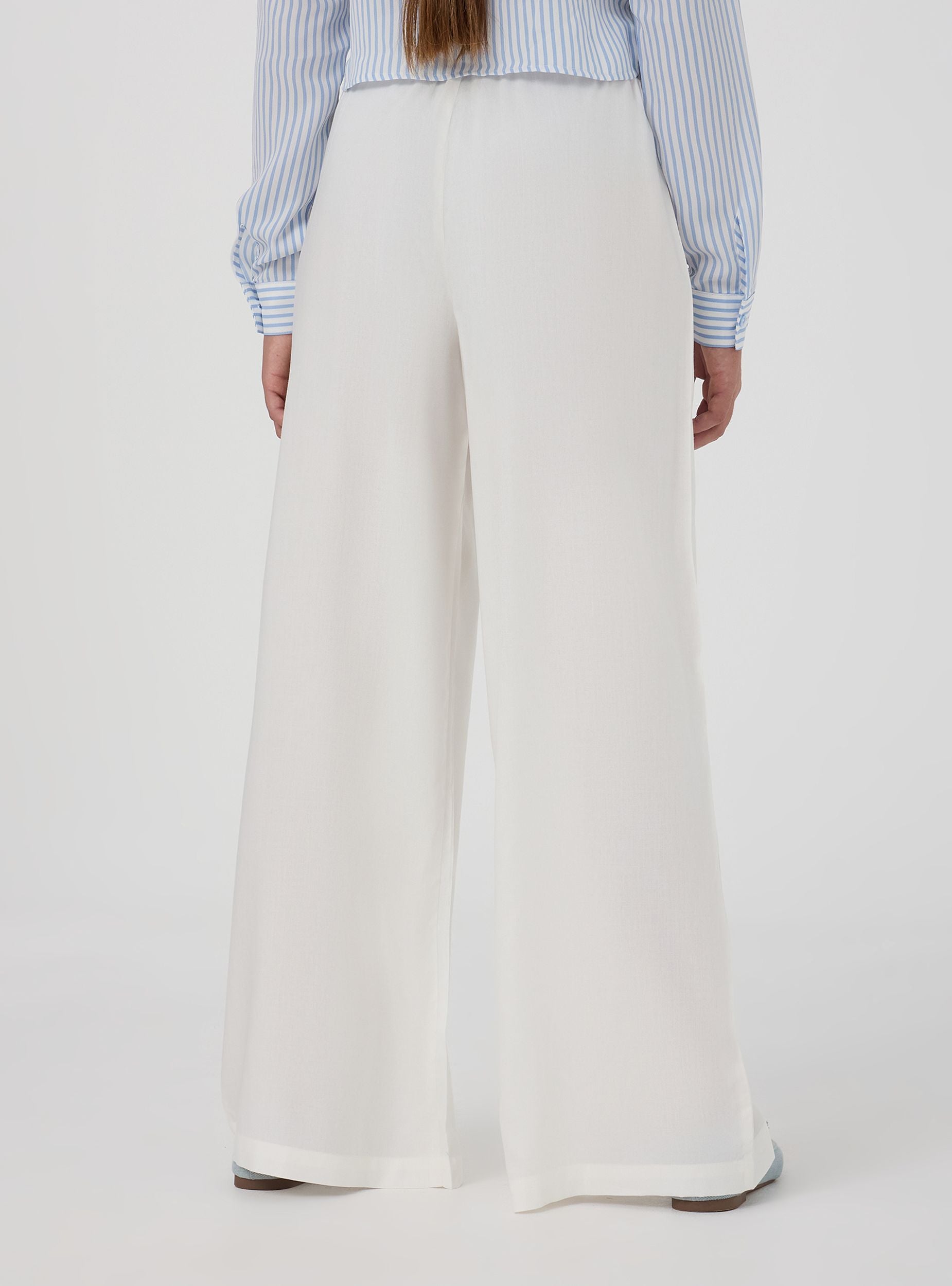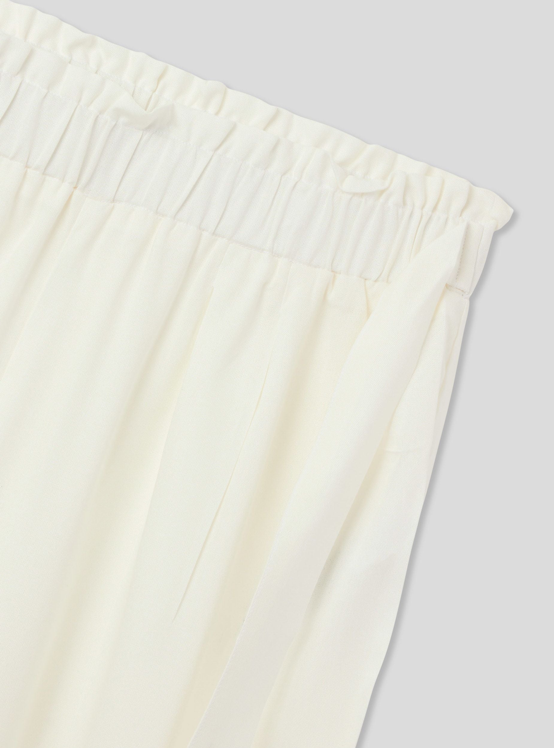 Pantaloni da bambina caratterizzati da un design a tinta unita con una linea lunga e un'ampia vestibilità wide leg. Realizzati in morbida viscosa, sono perfetti per garantire comfort e libertà di movimento in ogni occasione. La fusciacca in vita aggiunge un dettaglio di stile, valorizzando la silhouette e permettendo una vestibilità regolabile. Un capo ideale per look giocosi e ricercati.