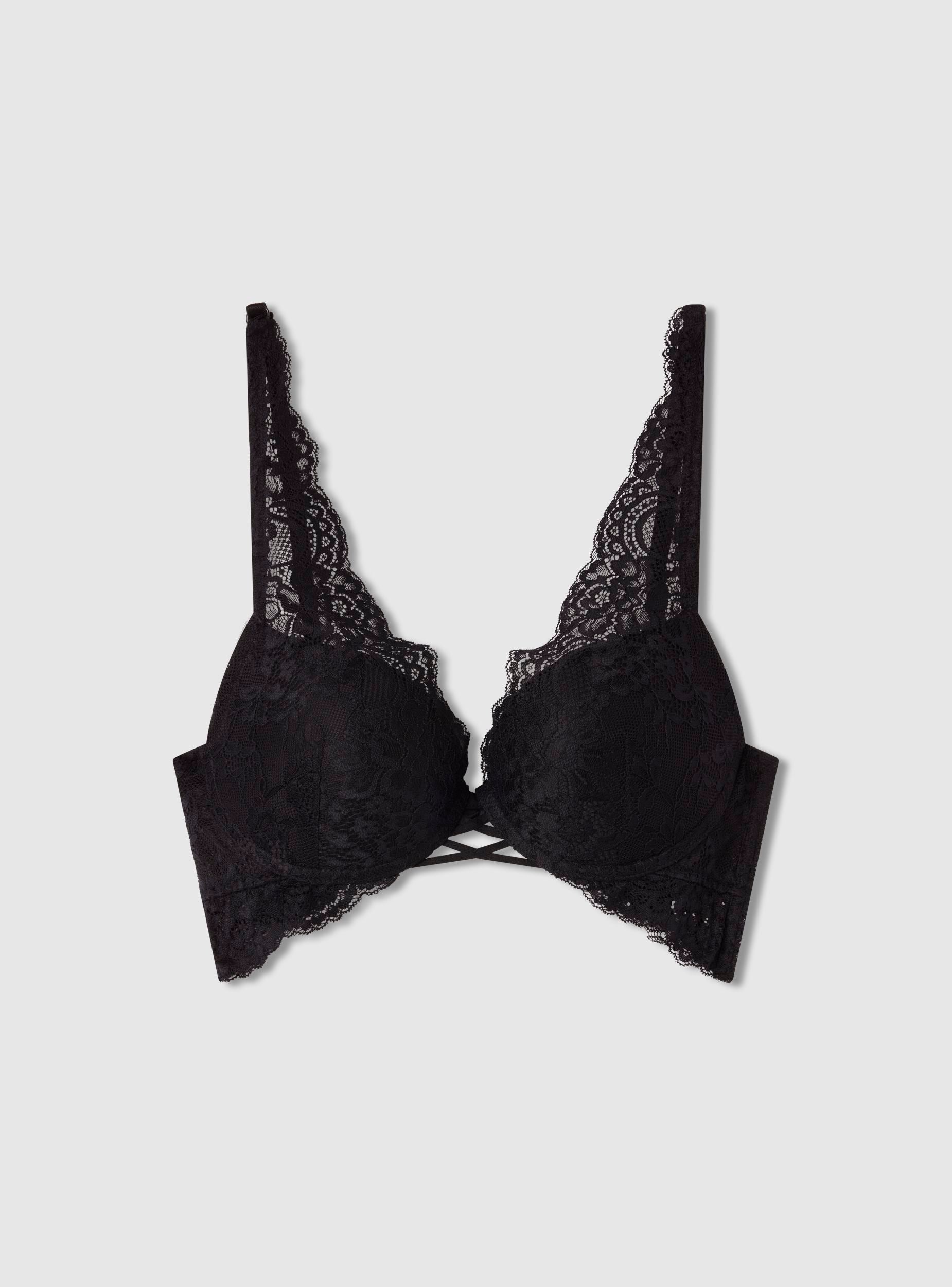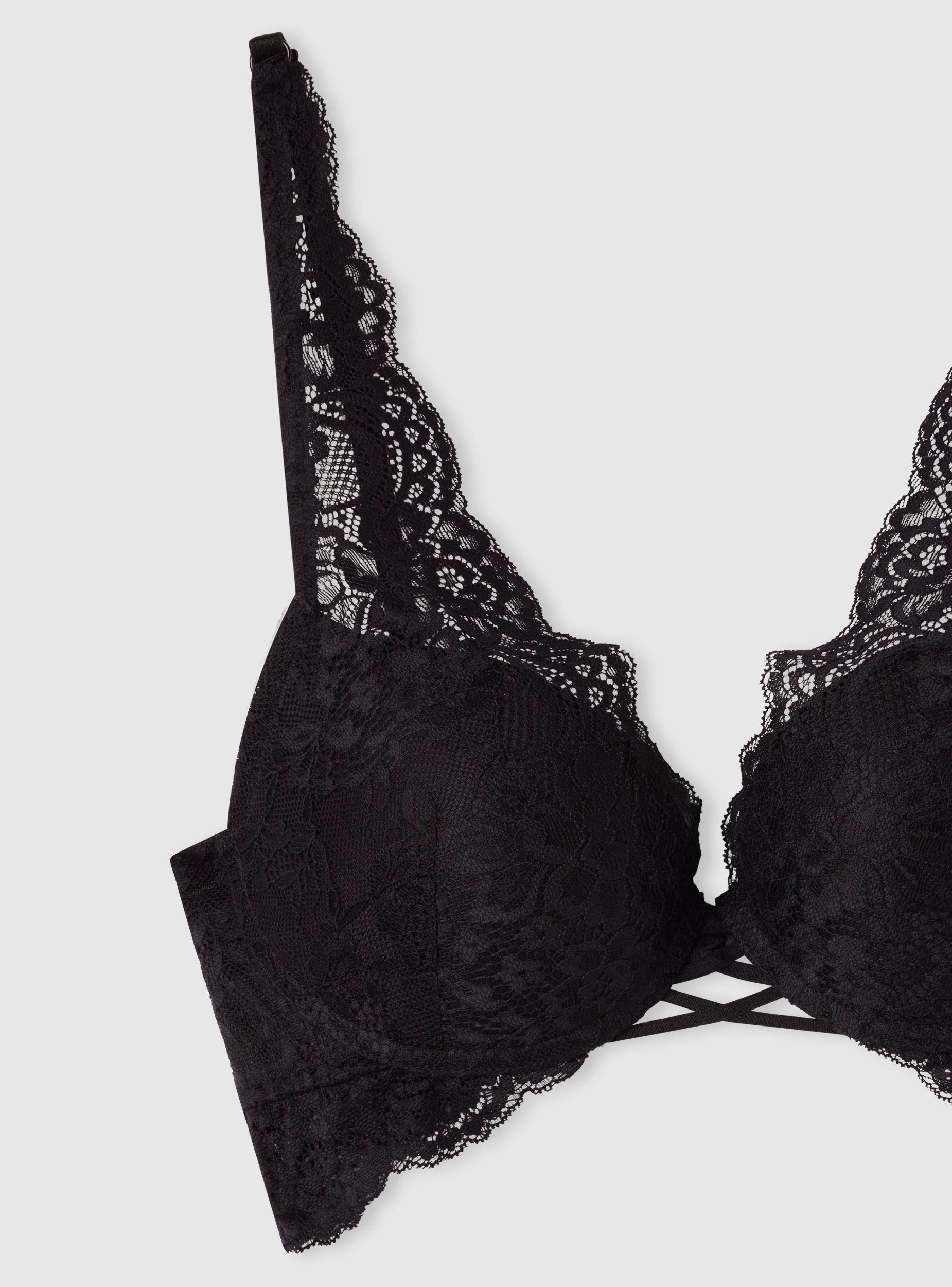 Reggiseno da donna con design triangolare e dettagli in pizzo. Ideale per occasioni speciali, offre una vestibilitá confortevole e un look elegante. Le coppe imbottite garantiscono un supporto ottimale, mentre le spalline regolabili permettono un adattamento personalizzato. Perfetto da indossare sotto abiti scollati o per aggiungere un tocco raffinato al tuo outfit.