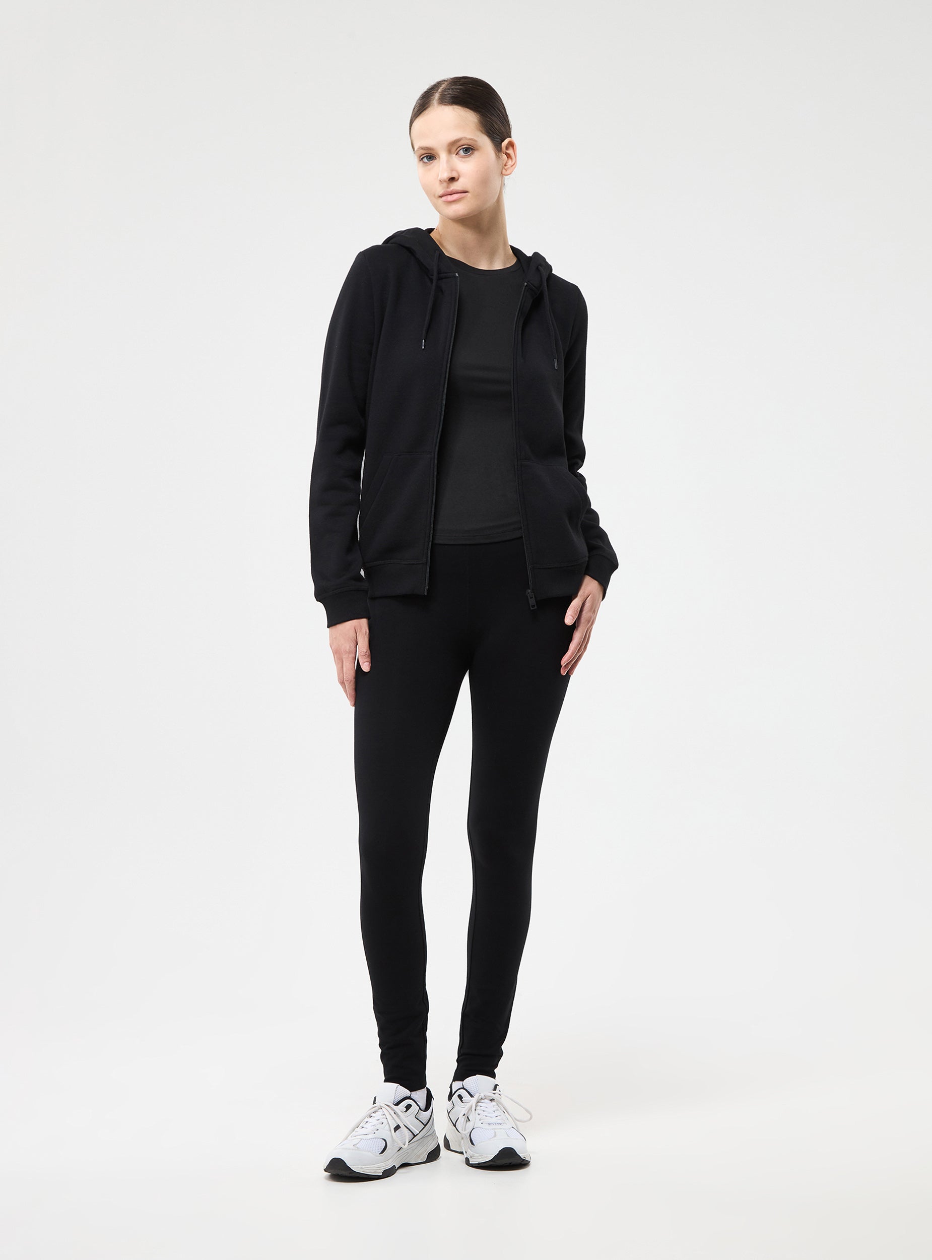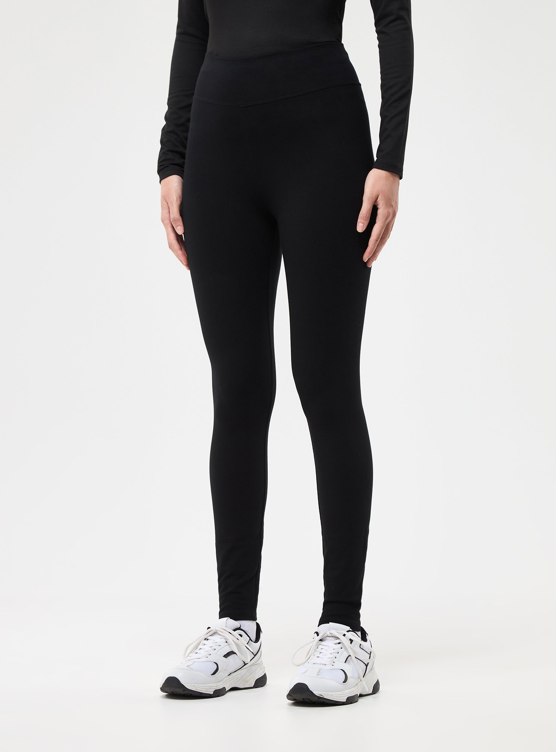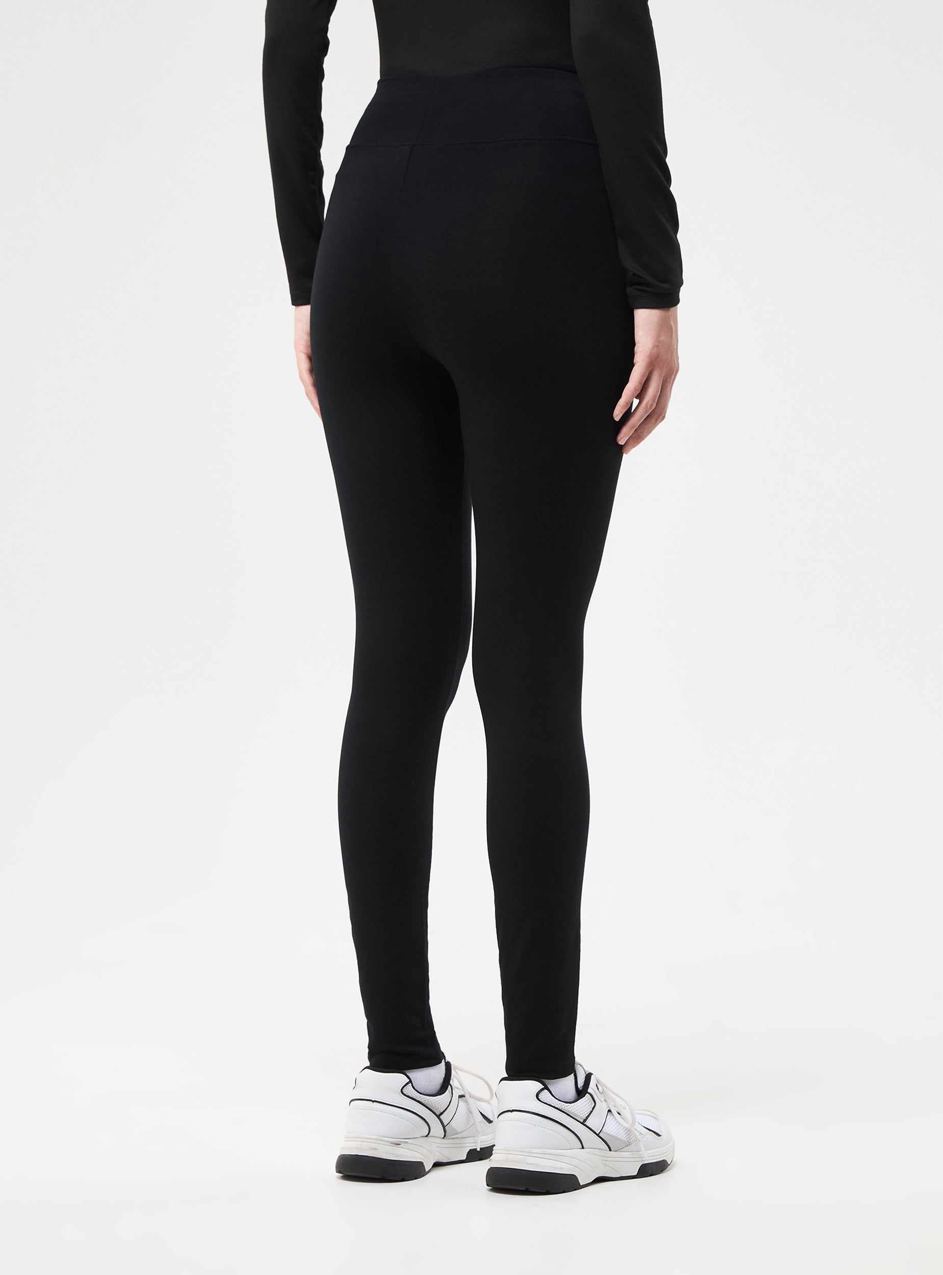 Leggings da donna a vita alta. Tessuto elasticizzato a tinta unita con vita alta.La modella è alta 1,76 e indossa la taglia S.