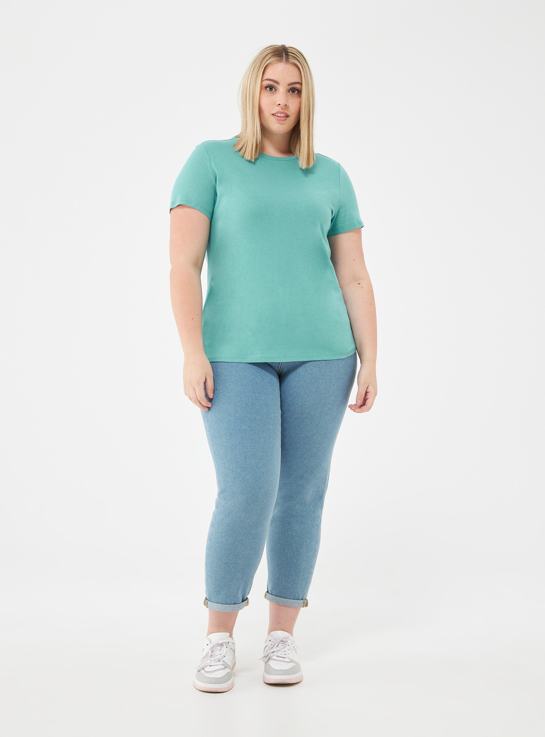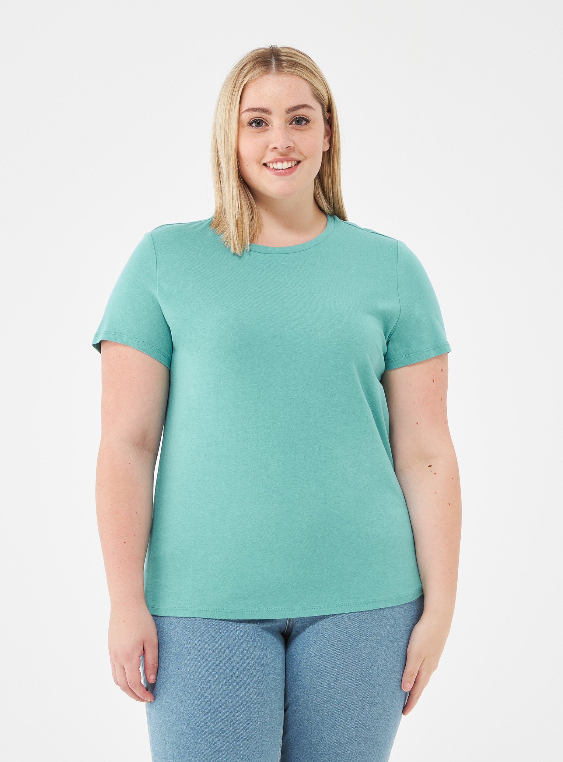 T-shirt da donna, modello girocollo con maniche corte. Realizzata in tessuto jersey. Vestibilità regular. Linea curvy.