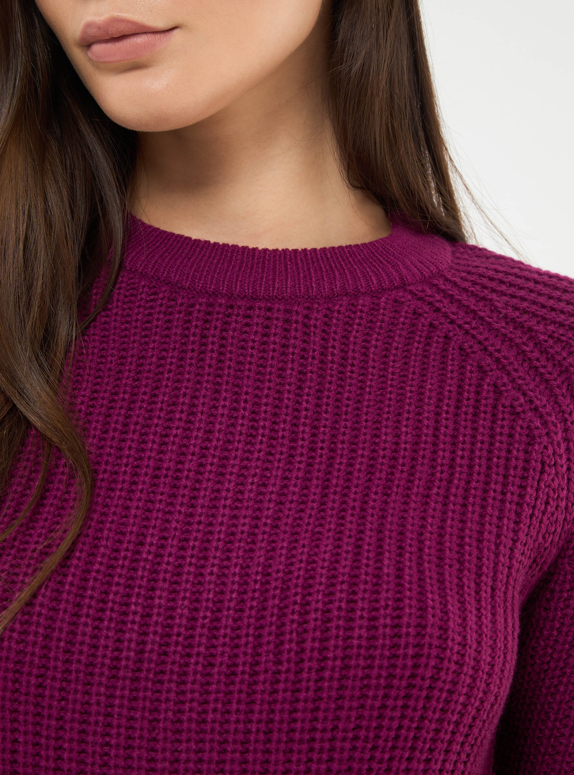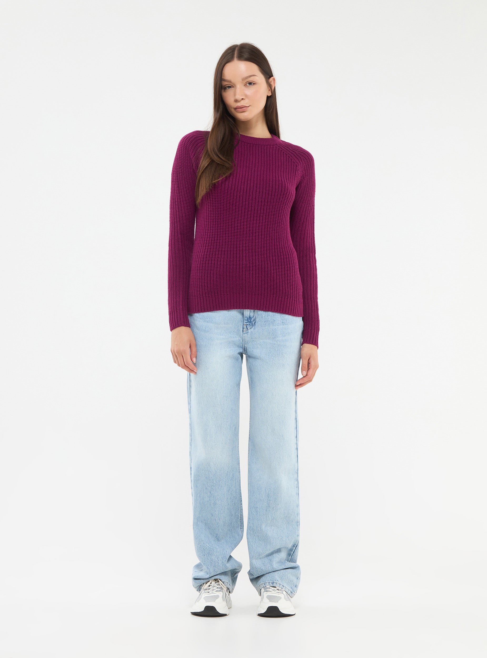 Maglia da donna, modello girocollo con maniche lunghe. Lavorazione a costa inglese. Tinta unita. Finiture a costine.Vestibilità è regular.Dettagli