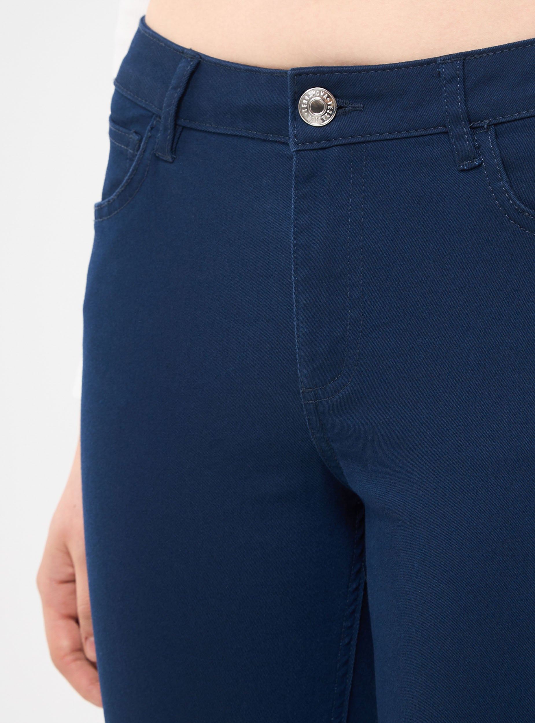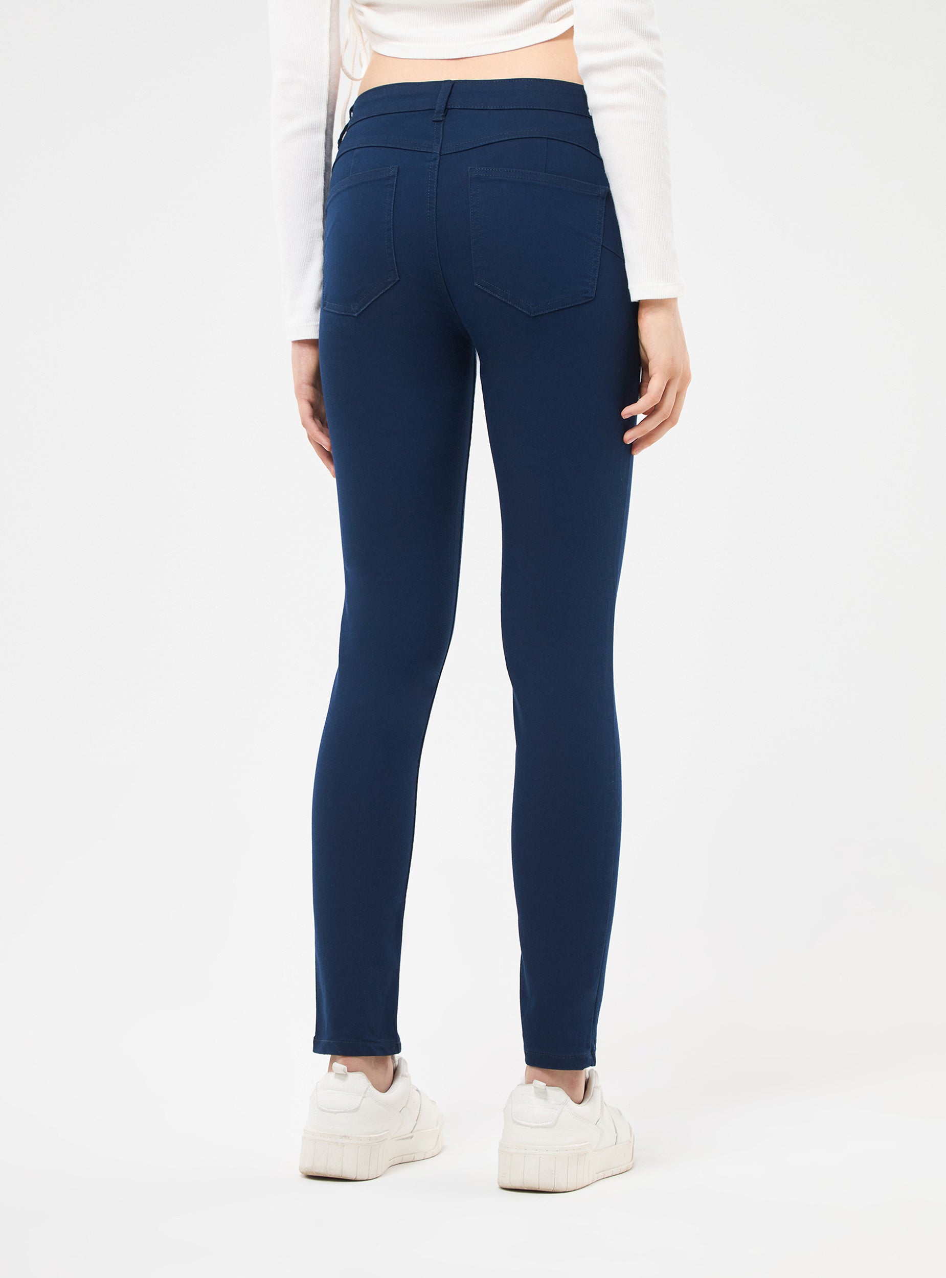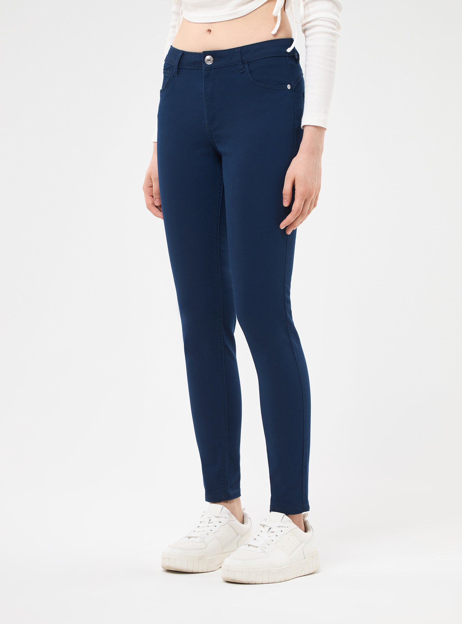 Pantaloni lunghi da donna modello push up. Cinque tasche, tessuto tinta unita. Vestibilità è  regular.