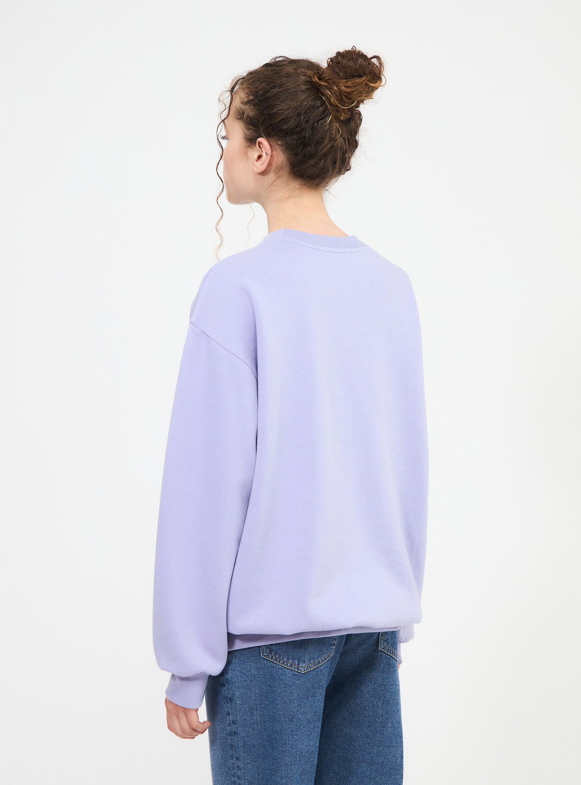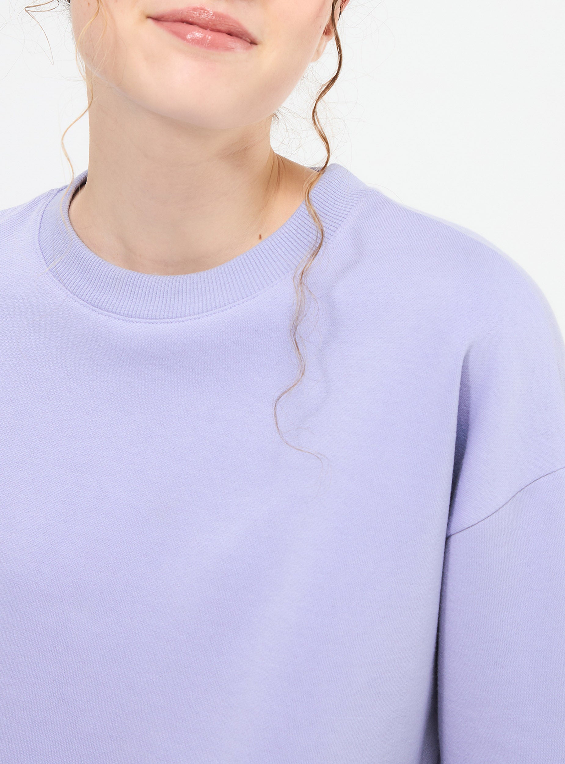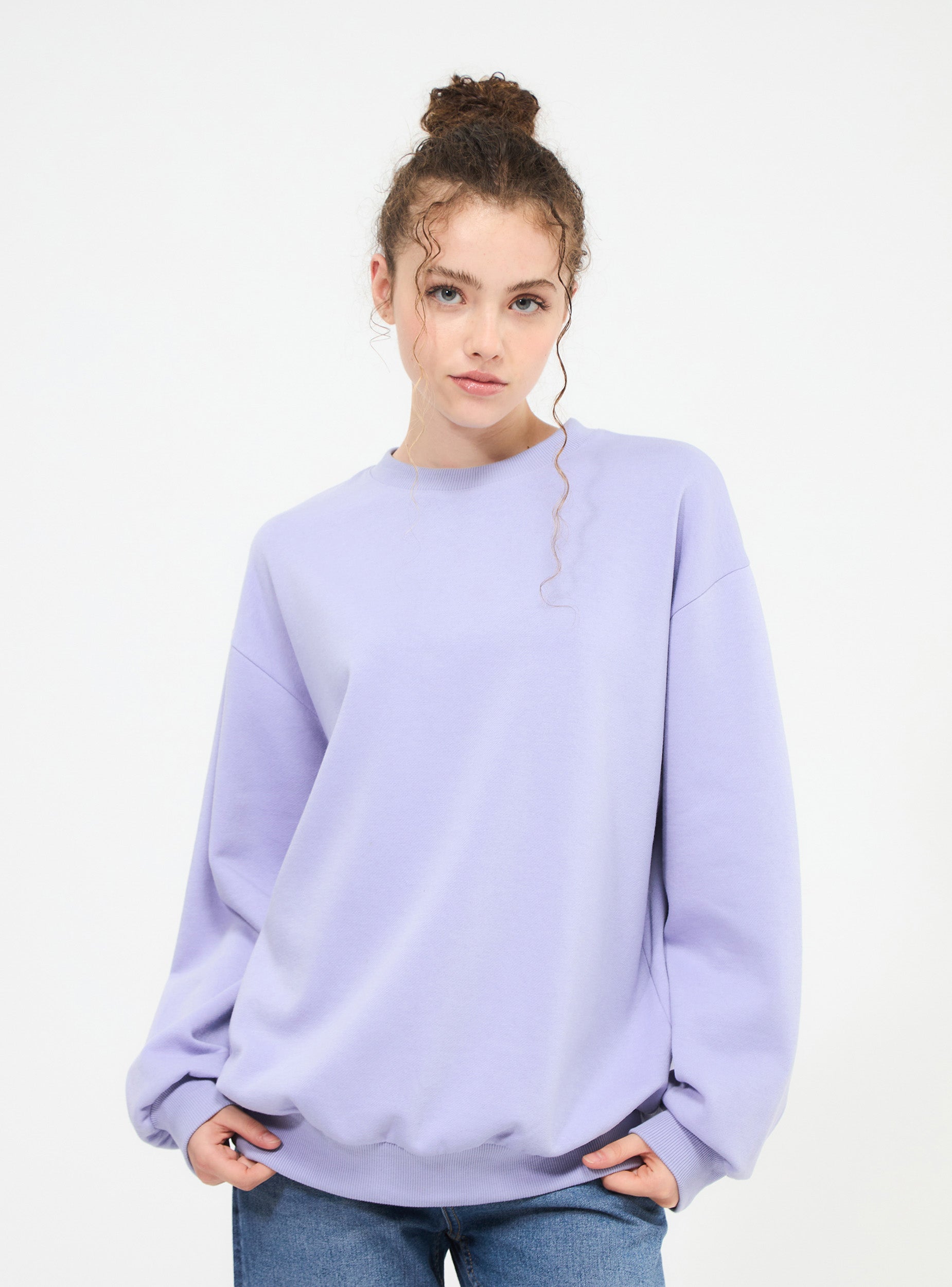 Felpa da donna modello girocollo in tessuto pesante tinta unita. Vestibilità maxi.La modella è alta 1,75 e indossa la taglia S.