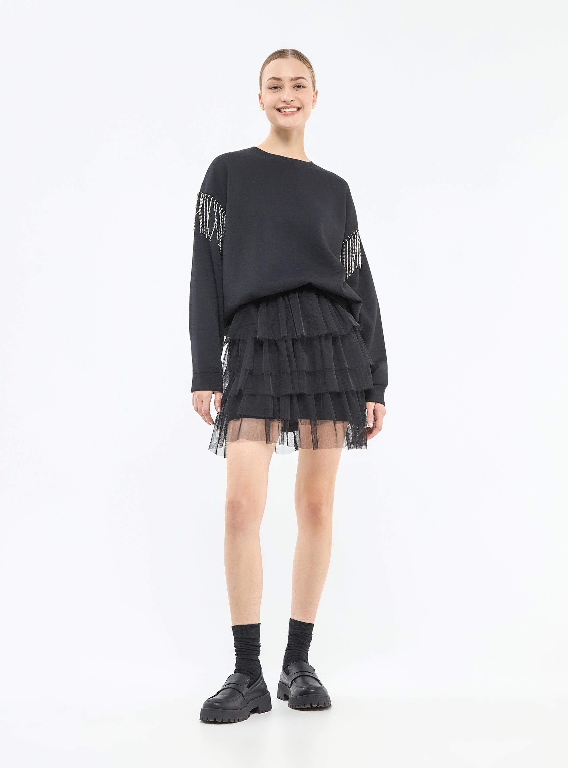 Gonna corta da donna in tulle tinta unita , modello con balze