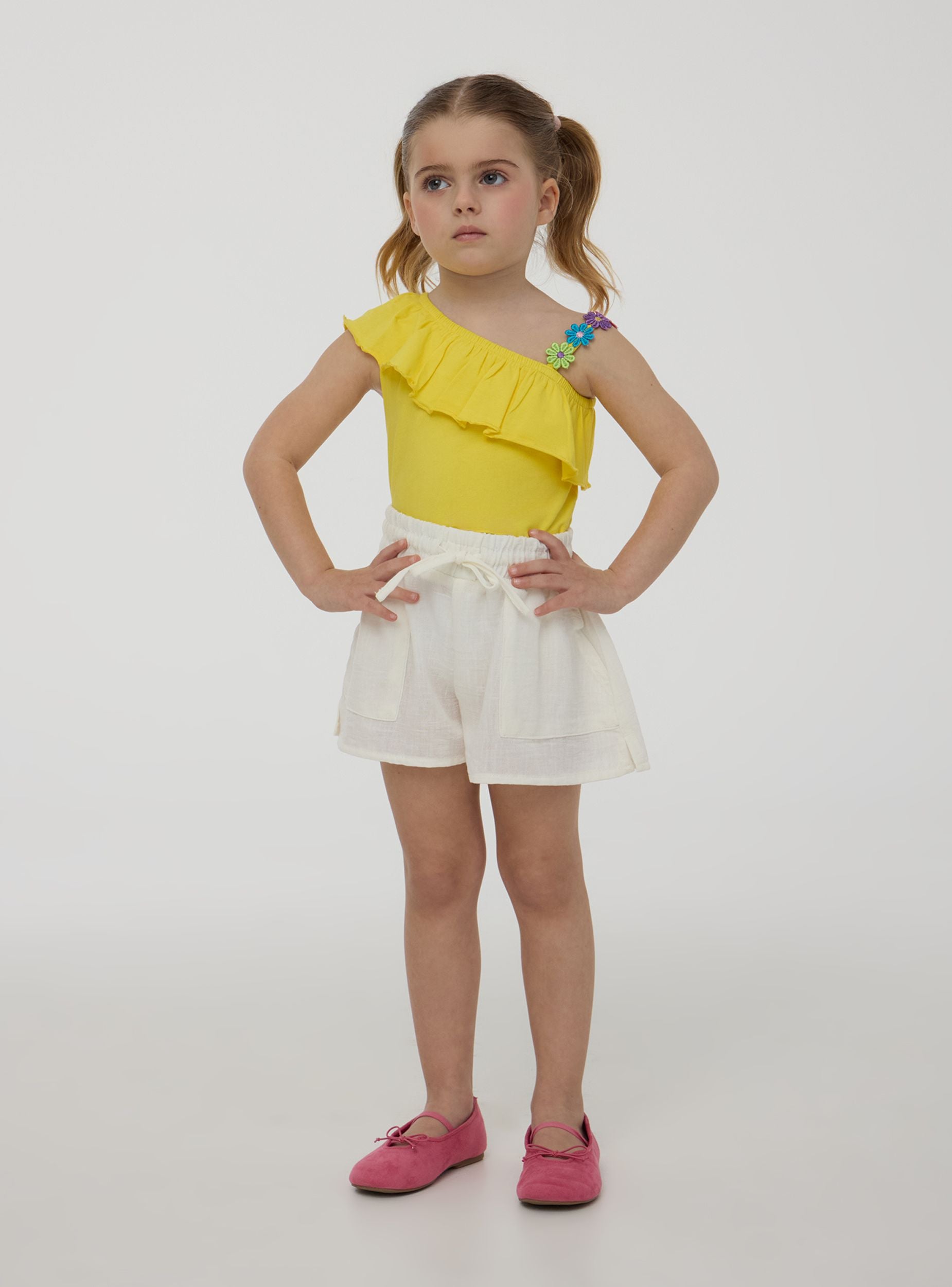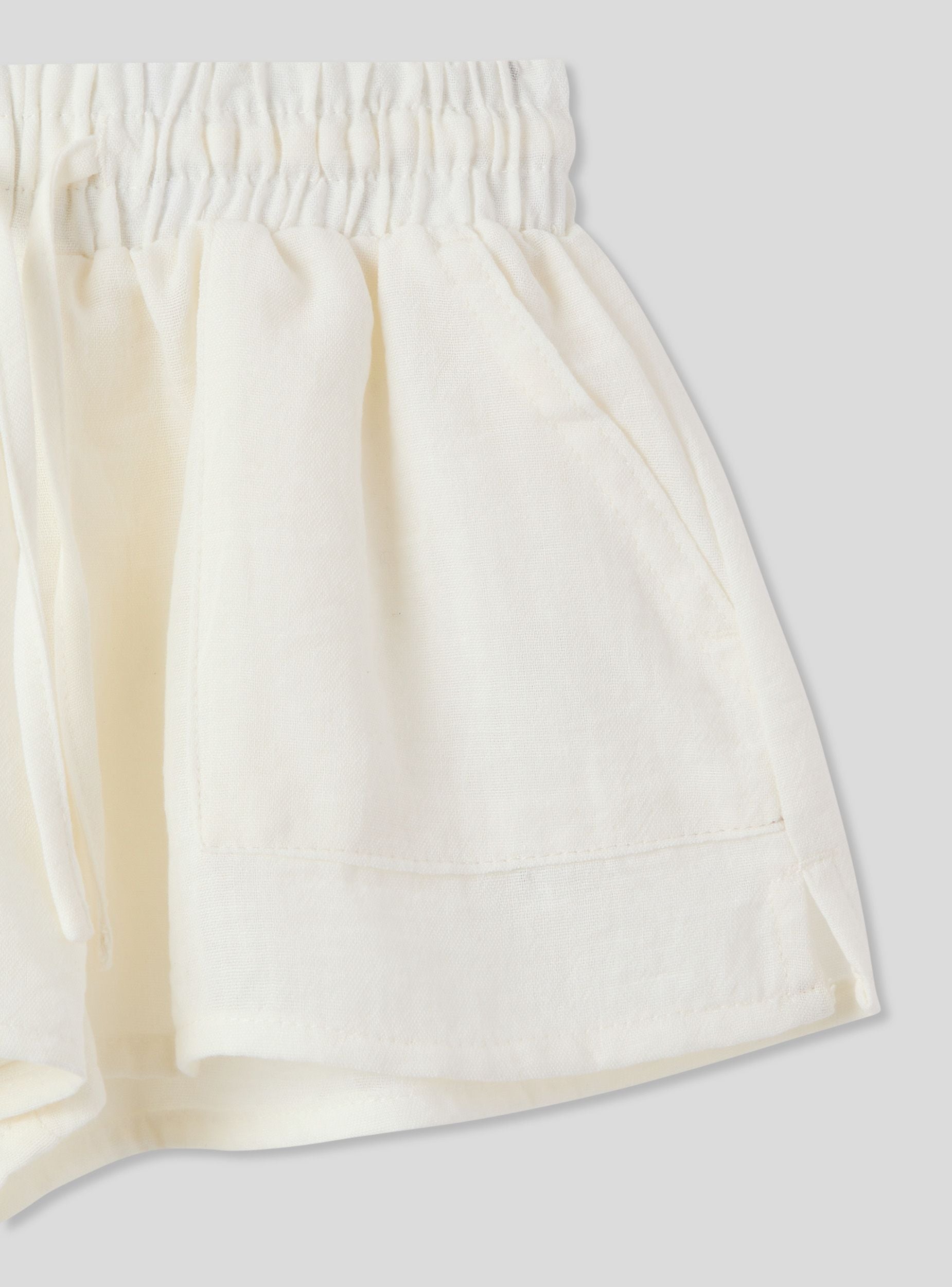 Pantaloncini da bimba perfetti per un look fresco e versatile nelle giornate più calde. Il design a tinta unita si abbina facilmente a t-shirt o bluse leggere, mentre l'effetto lino aggiunge un tocco raffinato. La coulisse regolabile garantisce una vestibilità comoda, e le tasche laterali aggiungono praticità. Ideali per il tempo libero o le vacanze, si completano alla perfezione con sandali o sneakers per un outfit alla moda e confortevole.