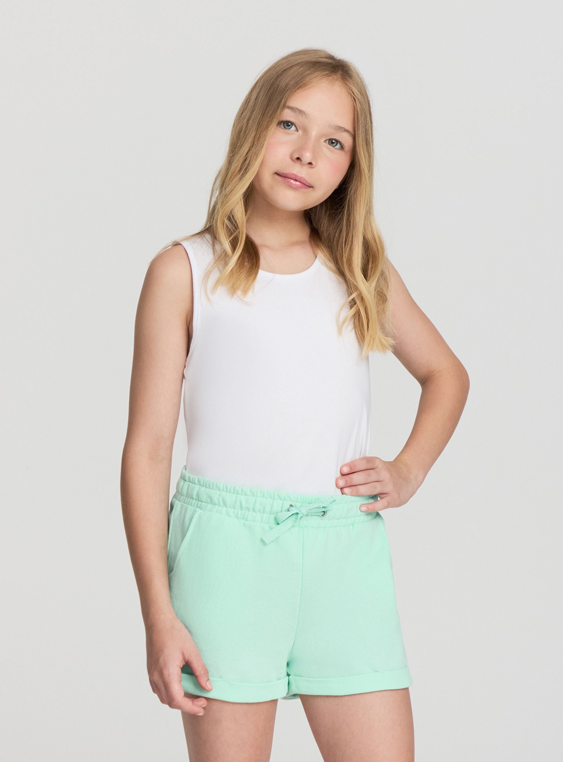 Pantaloncini leggeri della tuta da bambina ideali per il tempo libero e le giornate più attive. Con elastico in vita e pratica coulisse regolabile, offrono un fit comodo e sicuro. La tinta unita e il dettaglio del risvolto aggiungono un tocco moderno, mentre le tasche laterali sono perfette per piccoli oggetti. Perfetti da abbinare a t-shirt colorate e sneakers per un look dinamico e versatile.