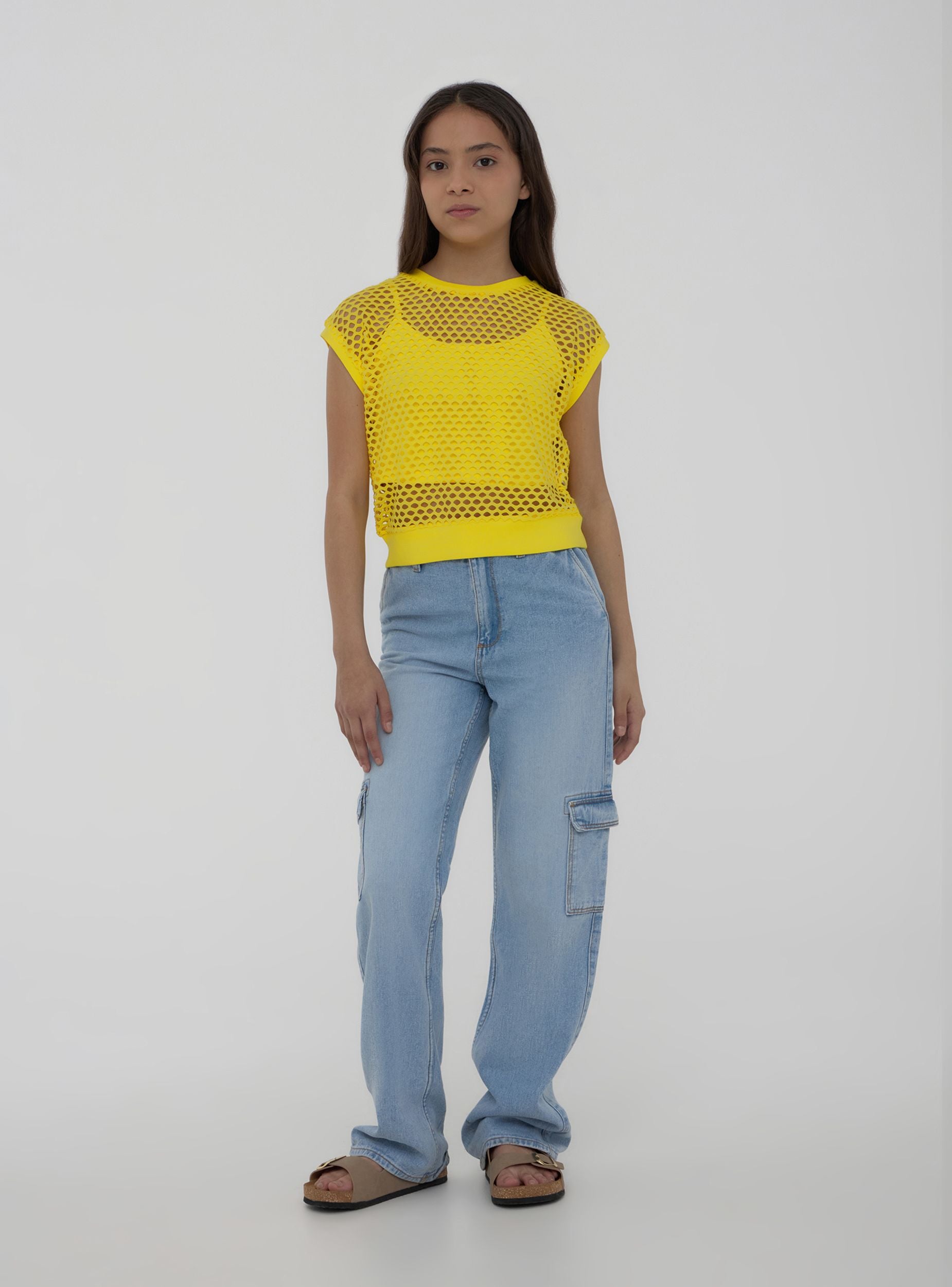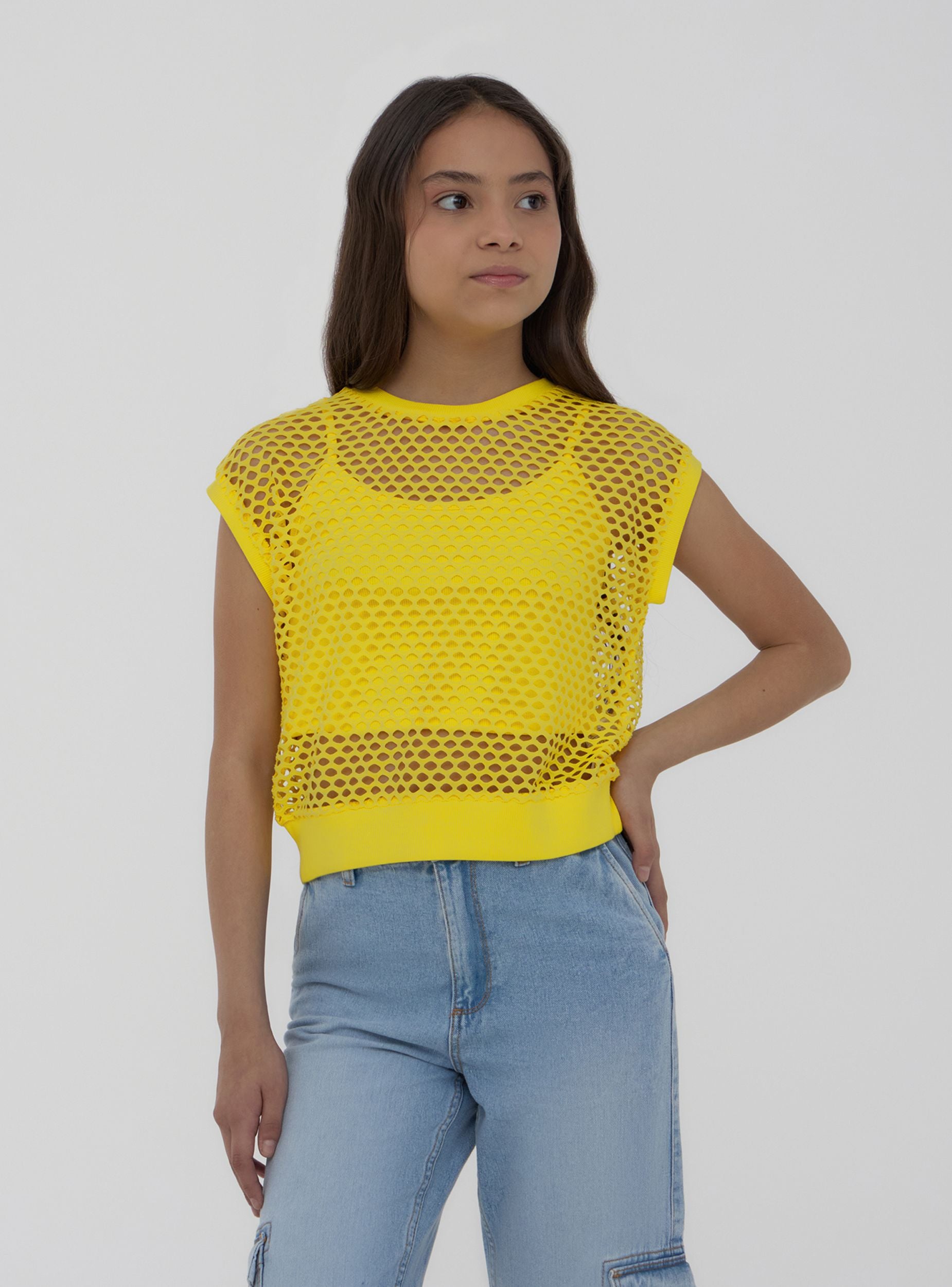 T-shirt a rete con canotta