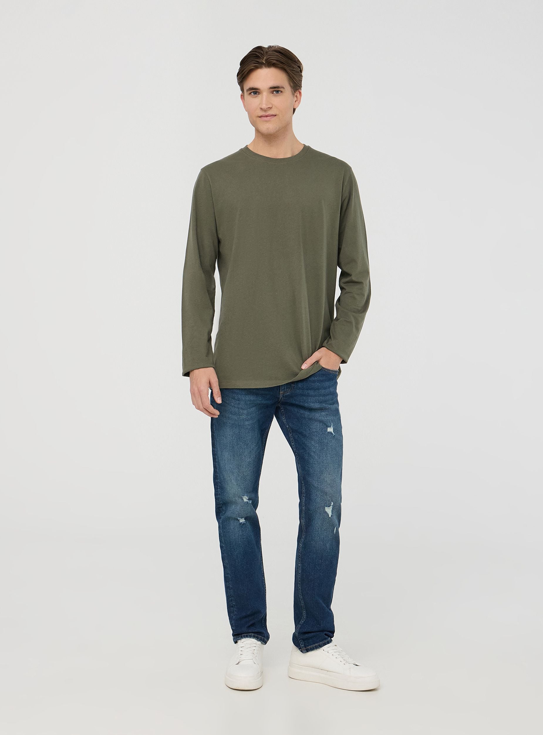 Maglia da uomo a tinta unita, caratterizzata da maniche lunghe e un comodo girocollo, perfetta per un look casual e versatile. Il design essenziale rende questa maglia un capo indispensabile nel guardaroba di ogni uomo, facilmente abbinabile con vari outfit per adattarsi a diverse occasioni, dal tempo libero agli impegni quotidiani. La vestibilità confortevole garantisce libertà di movimento, mentre il taglio lineare assicura un aspetto ordinato e sempre attuale. Ideale per creare un look semplice ma curato, questa maglia è un’opzione di stile che non passa mai di moda.