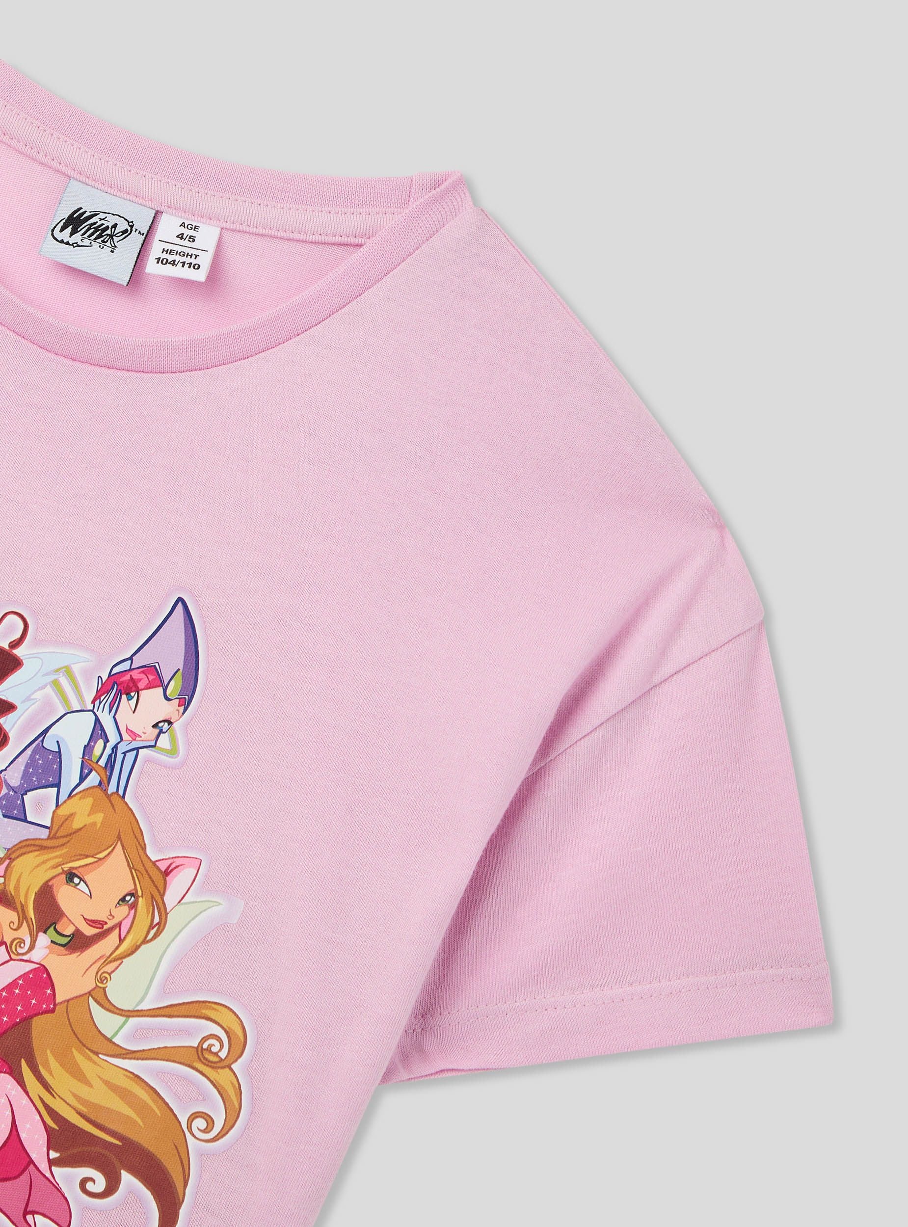 Maglietta da bimba dal design accattivante e giocoso, perfetta per le giovani fan delle Winx. Con maniche corte e girocollo, questa maglietta è ideale per le giornate di svago e le attività quotidiane, garantendo comfort e libertà di movimento. La stampa frontale delle protagoniste dello Winx Club®, aggiunge un tocco di magia e colore al look. Un capo che combina praticità e stile, perfetto per esprimere la personalità e le passioni delle piccole fashioniste.Dettagli