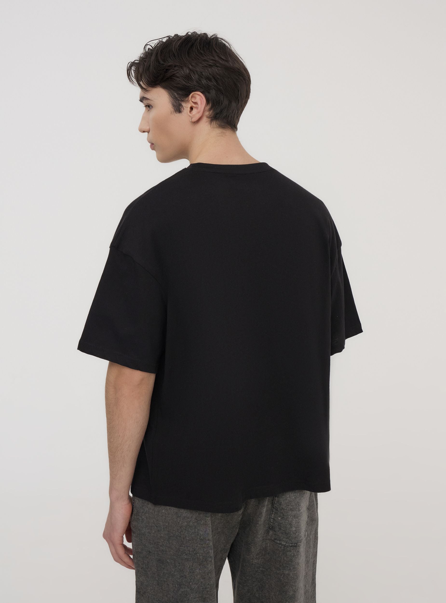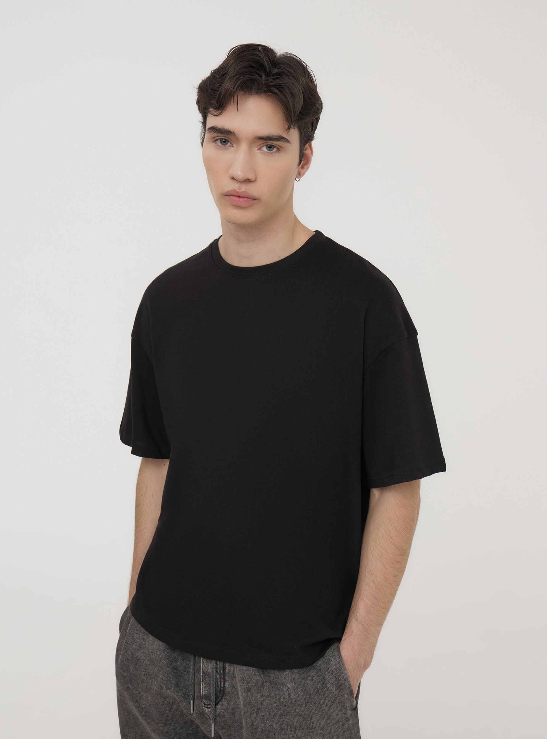 Maglietta da uomo boxy fit, perfetta per un look giovane e moderno, ideale per il tempo libero o per un outfit casual. Caratterizzata da una vestibilità cropped che aggiunge un tocco di tendenza, presenta una tinta unita, maniche corte e un girocollo confortevole. Una scelta versatile per un guardaroba all'avanguardia.