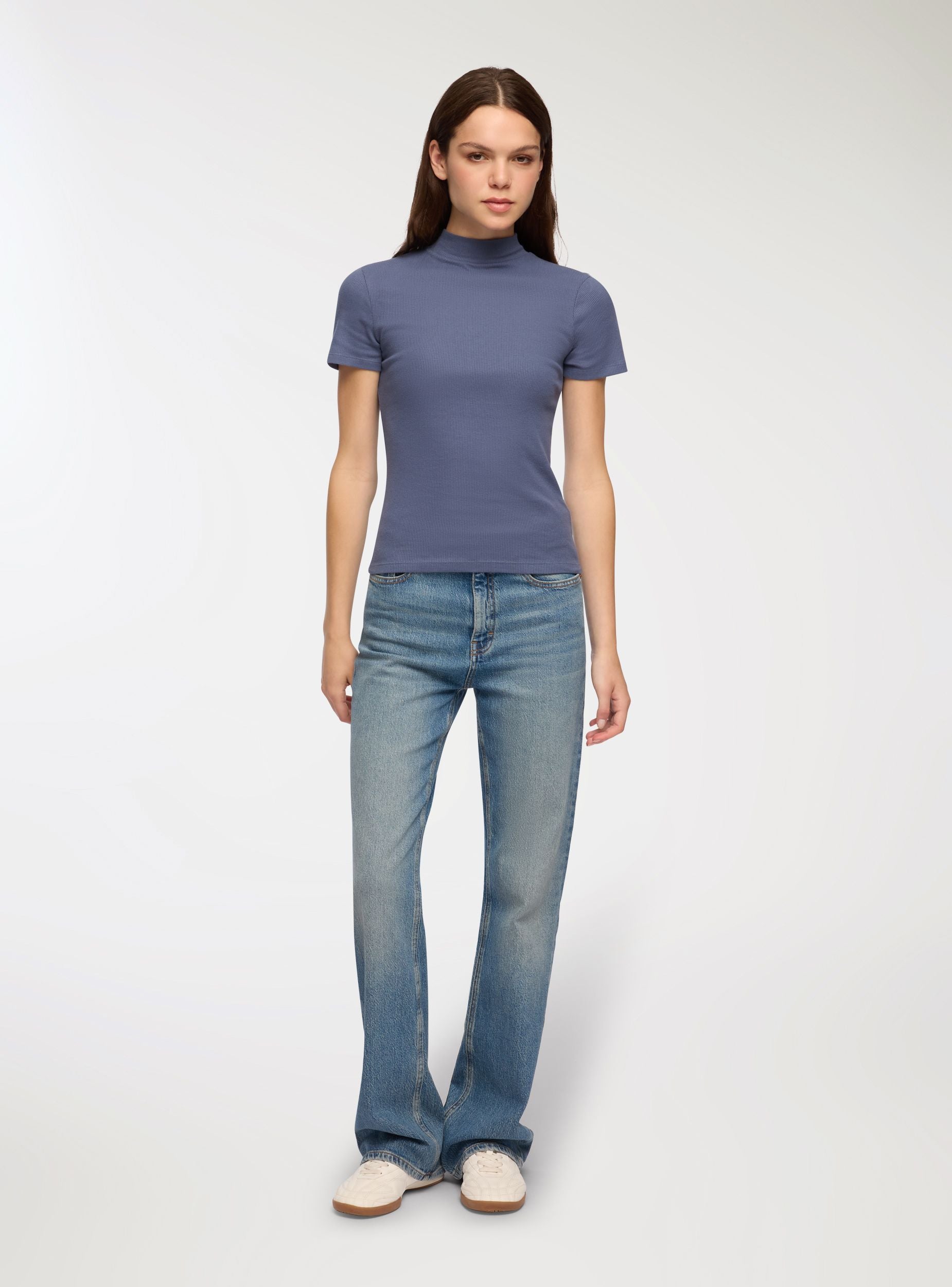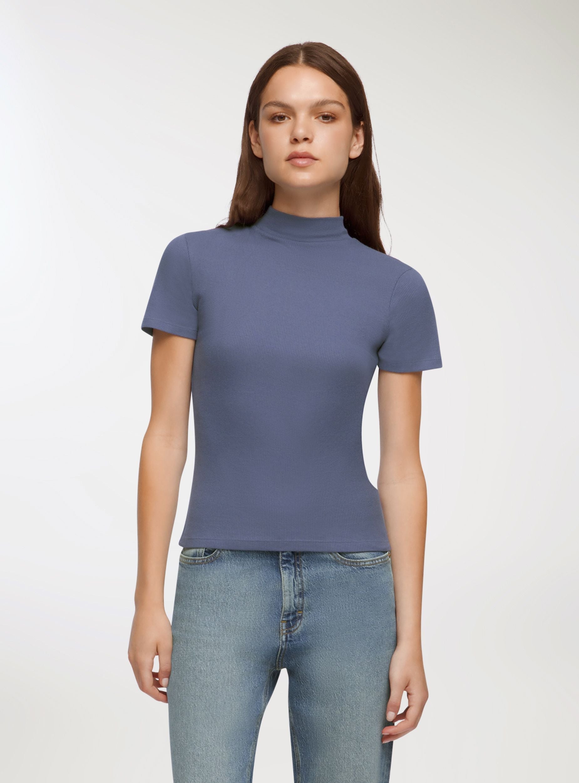 Maglietta da donna a lupetto in costina, basica e versatile. Essenziale e sempre attuale, questa t-shirt è il capo basico che non può mancare nel guardaroba. Realizzata in tessuto a tinta unita, presenta maniche corte e una linea slim che valorizza la silhouette con discrezione. Il collo alto aggiunge un tocco sofisticato, perfetto per creare outfit minimal, puliti e di tendenza. Indossala da sola nei look più casual oppure sotto blazer, camicie aperte o maglioni oversize per un effetto layering moderno e funzionale. Grazie alla sua versatilità, si adatta facilmente a ogni stagione e occasione, rendendosi indispensabile per chi ama uno stile semplice ma curato.