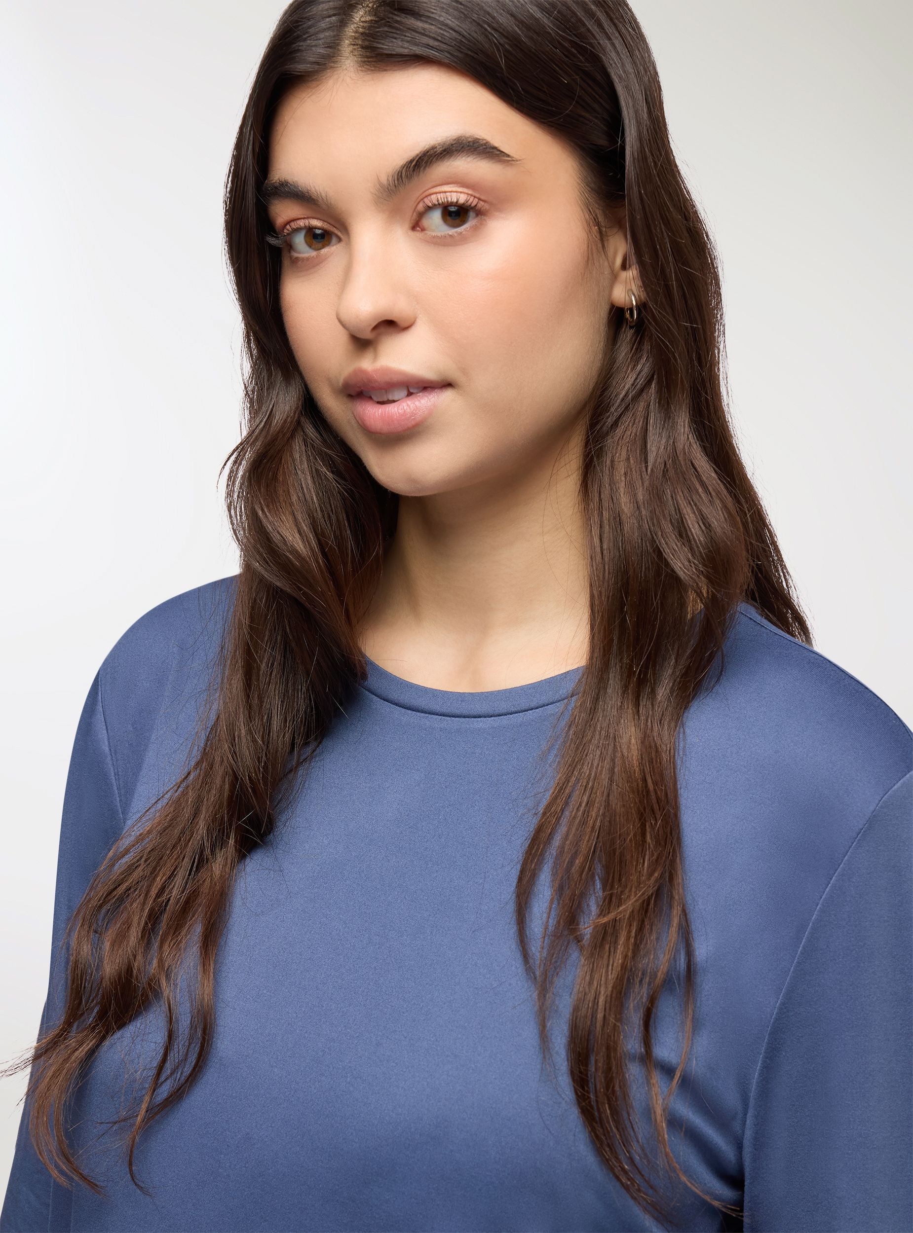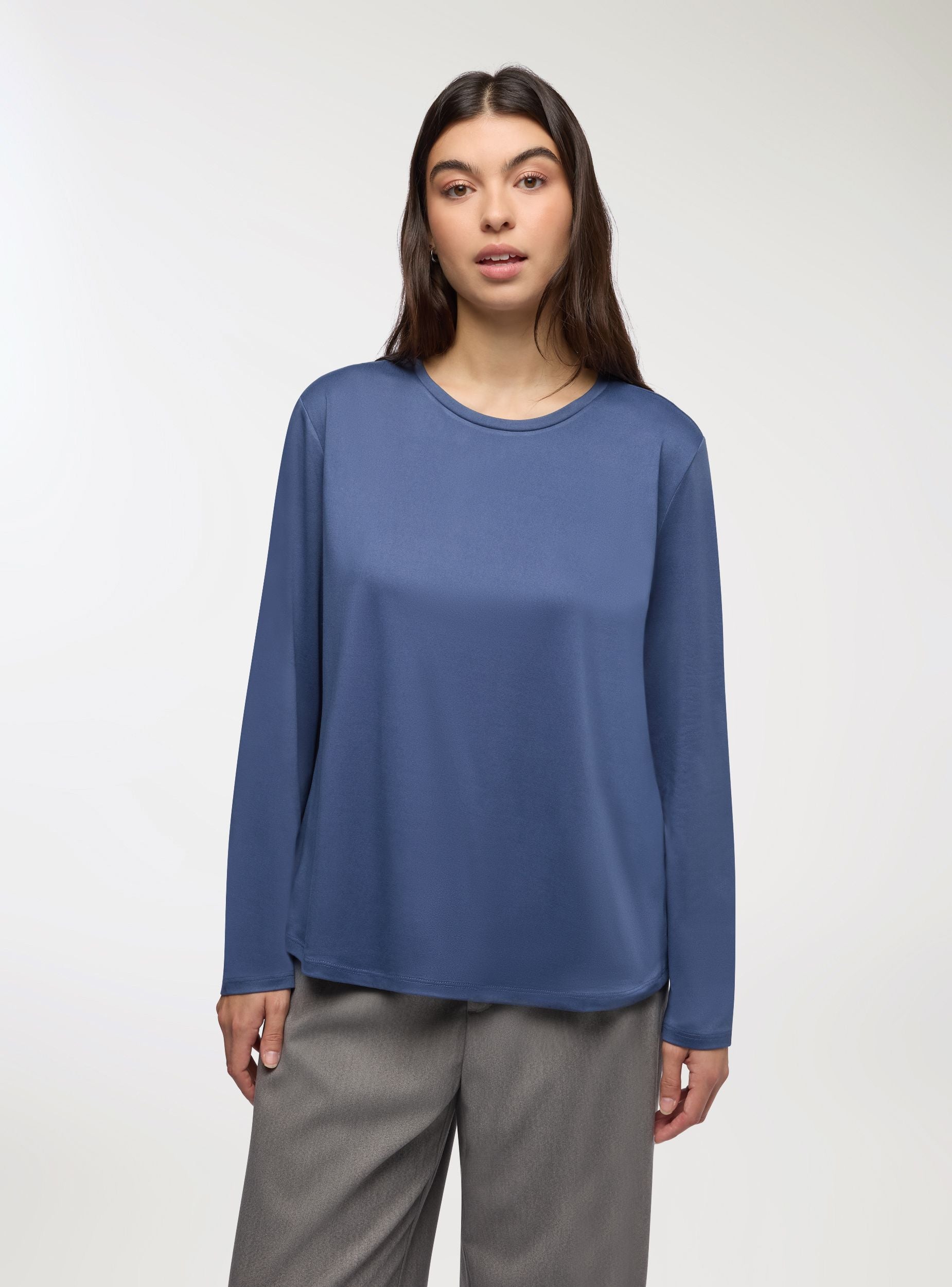 Tessuto extra caldo. Maglia da donna a maniche lunghe con taglio aderente e girocollo, ideale per i mesi più freschi. Realizzata in tessuto morbido ed elasticizzato avvolge la silhouette con comfort e leggerezza. Perfetta come sottogiacca o da indossare da sola, è un capo versatile per look casual o più femminili. Un basico intramontabile da avere sempre nel guardaroba.