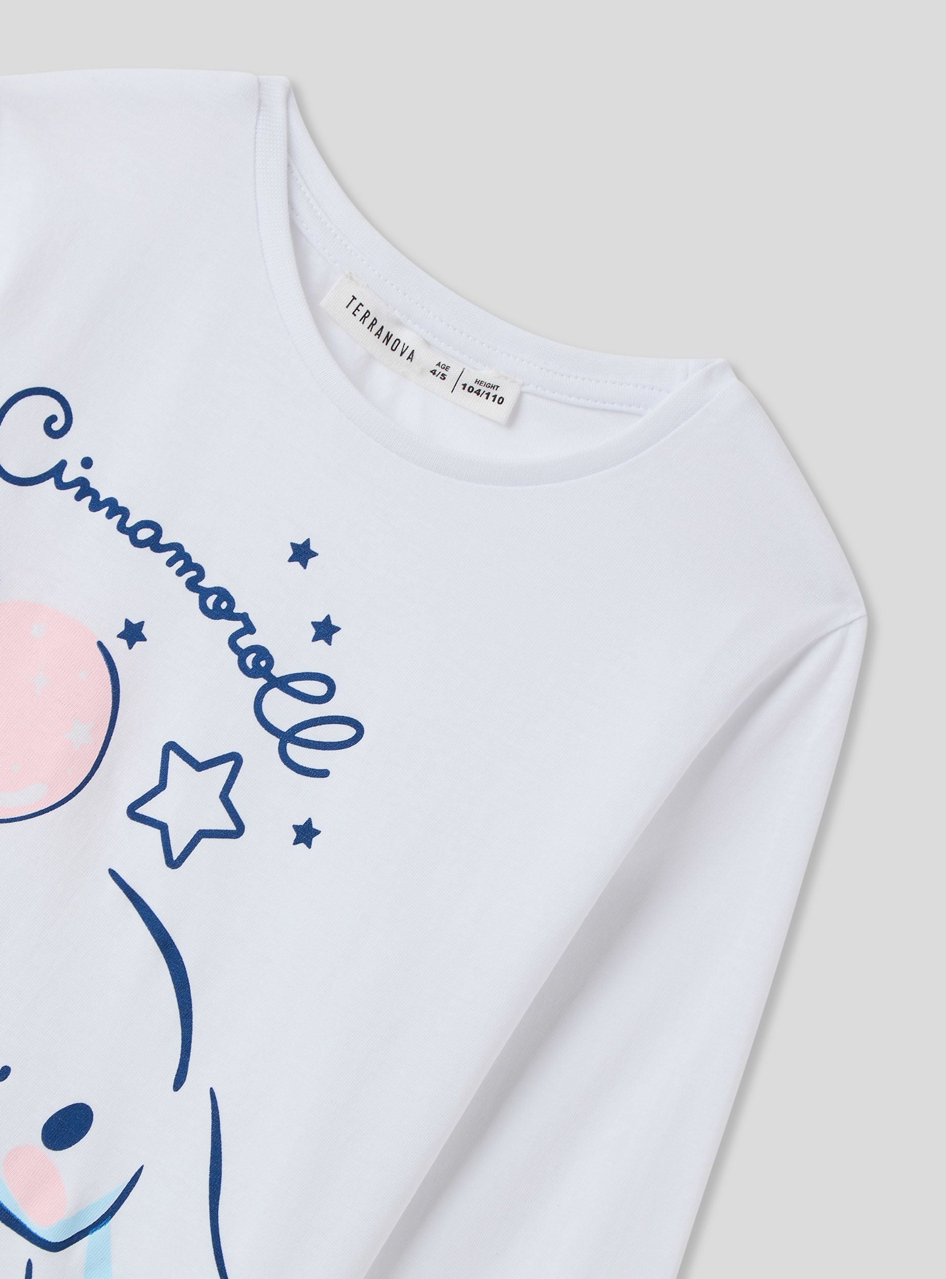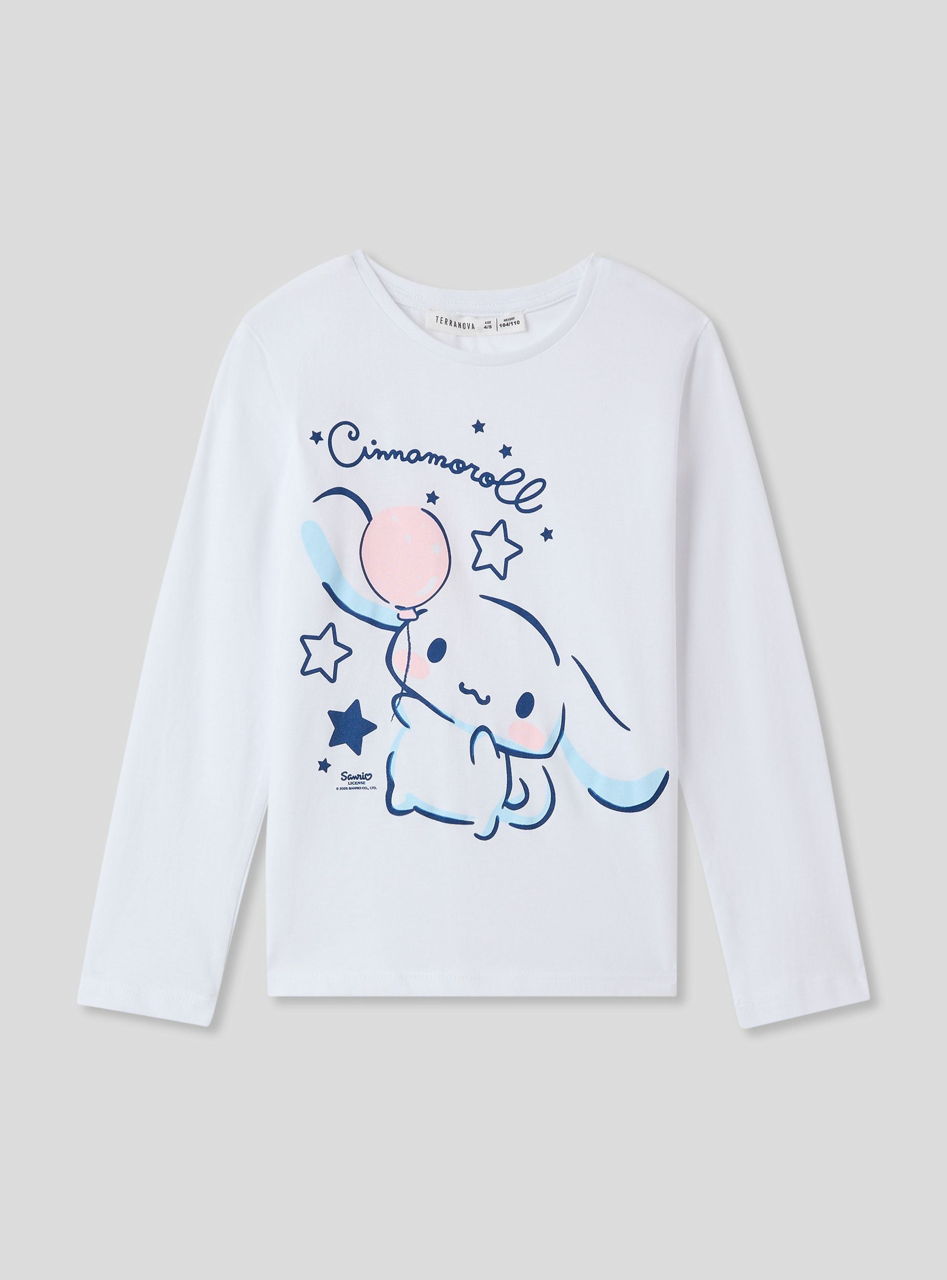 Maglia da bimba a maniche lunghe con girocollo e stampa Cinnamoroll®, perfetta per creare look dolci e confortevoli. Ideale per la scuola e il tempo libero, si abbina facilmente a leggings e sneakers per un outfit pratico, oppure a una gonna e stivaletti per un tocco più romantico. Il design morbido e avvolgente assicura comodità e libertà di movimento in ogni momento della giornata.