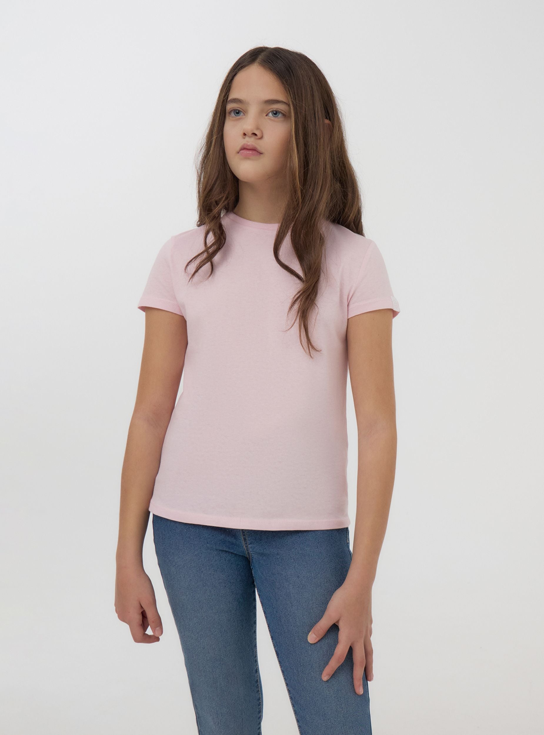 Maglietta da bambina caratterizzata da un design a tinta unita, perfetta per ogni occasione. Il girocollo e le maniche corte aggiungono un tocco di praticità e comfort al capo, realizzato in morbido cotone per una vestibilità piacevole sulla pelle. Il dettaglio dell'etichetta sulla manica impreziosisce il look, rendendolo unico e allegro. Ideale da abbinare a pantaloni o gonne per creare outfit versatili e adatti a ogni stagione.