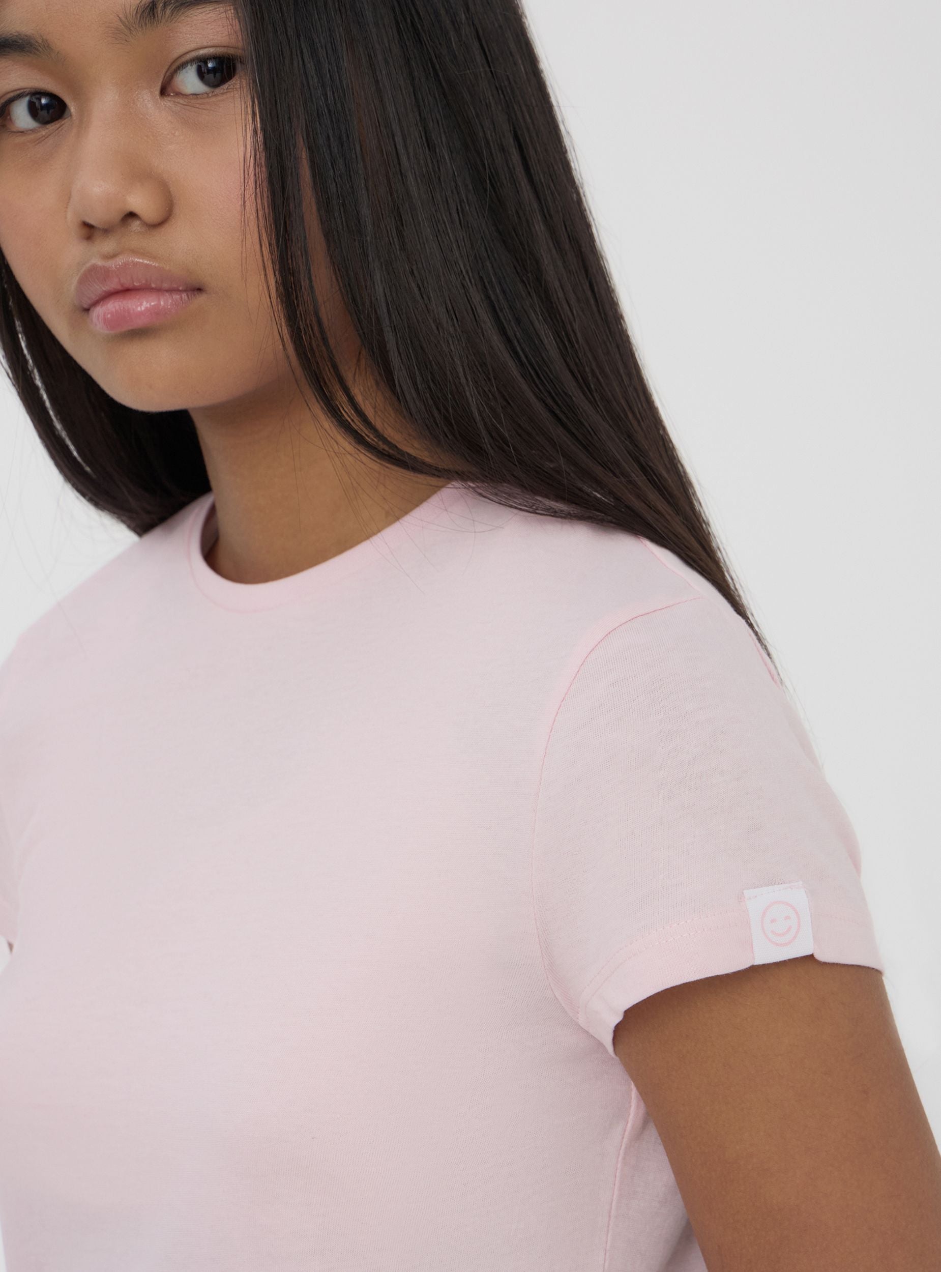 T-shirt tinta unita con etichetta sulla manica