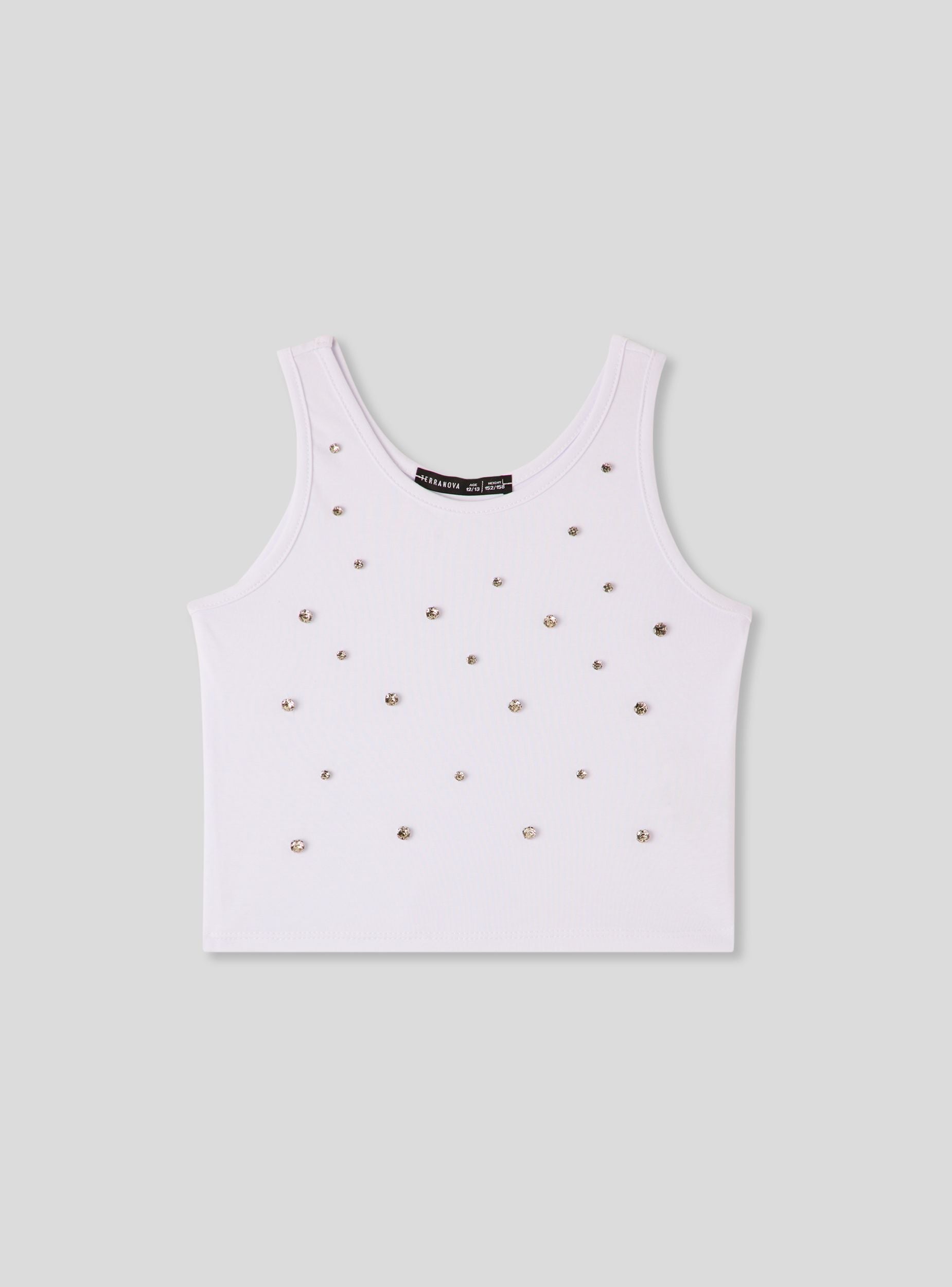 Top con applicazioni gioiello