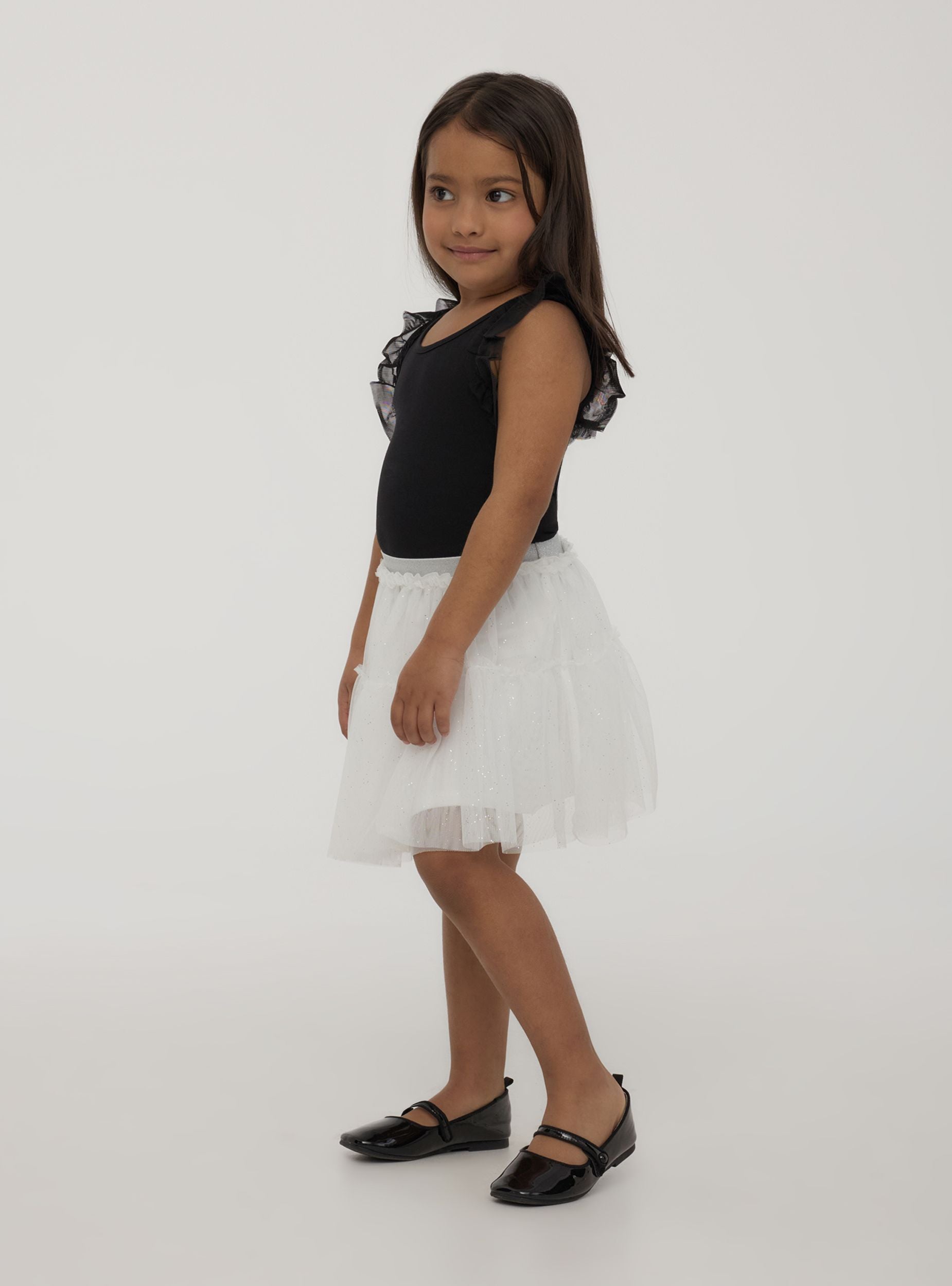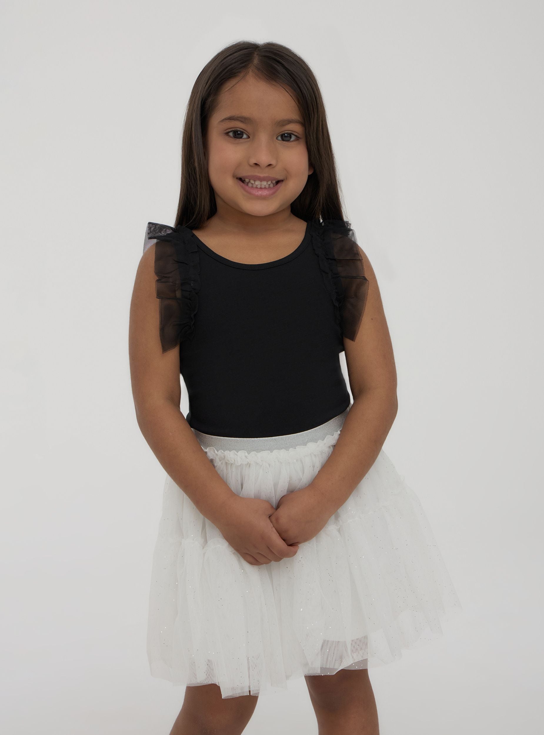 Canotta da bambina dal design fresco e vivace, caratterizzata da una tinta unita che dona versatilità e stile. Le spalline larghe arricchite da dettagli in tulle aggiungono un tocco di eleganza giocosa, perfetta per completare i look estivi. Ideale per combinare comfort e raffinatezza, questa canotta si adatta facilmente a qualsiasi occasione, regalando un aspetto allegro e sofisticato.