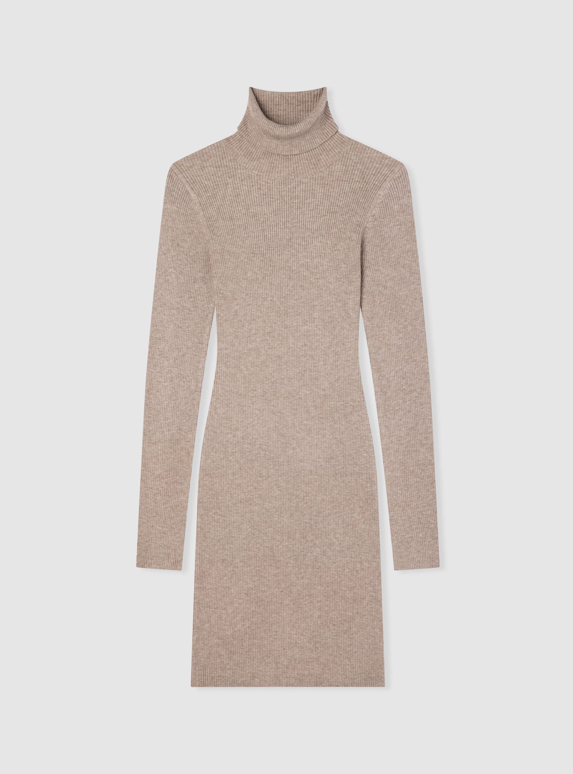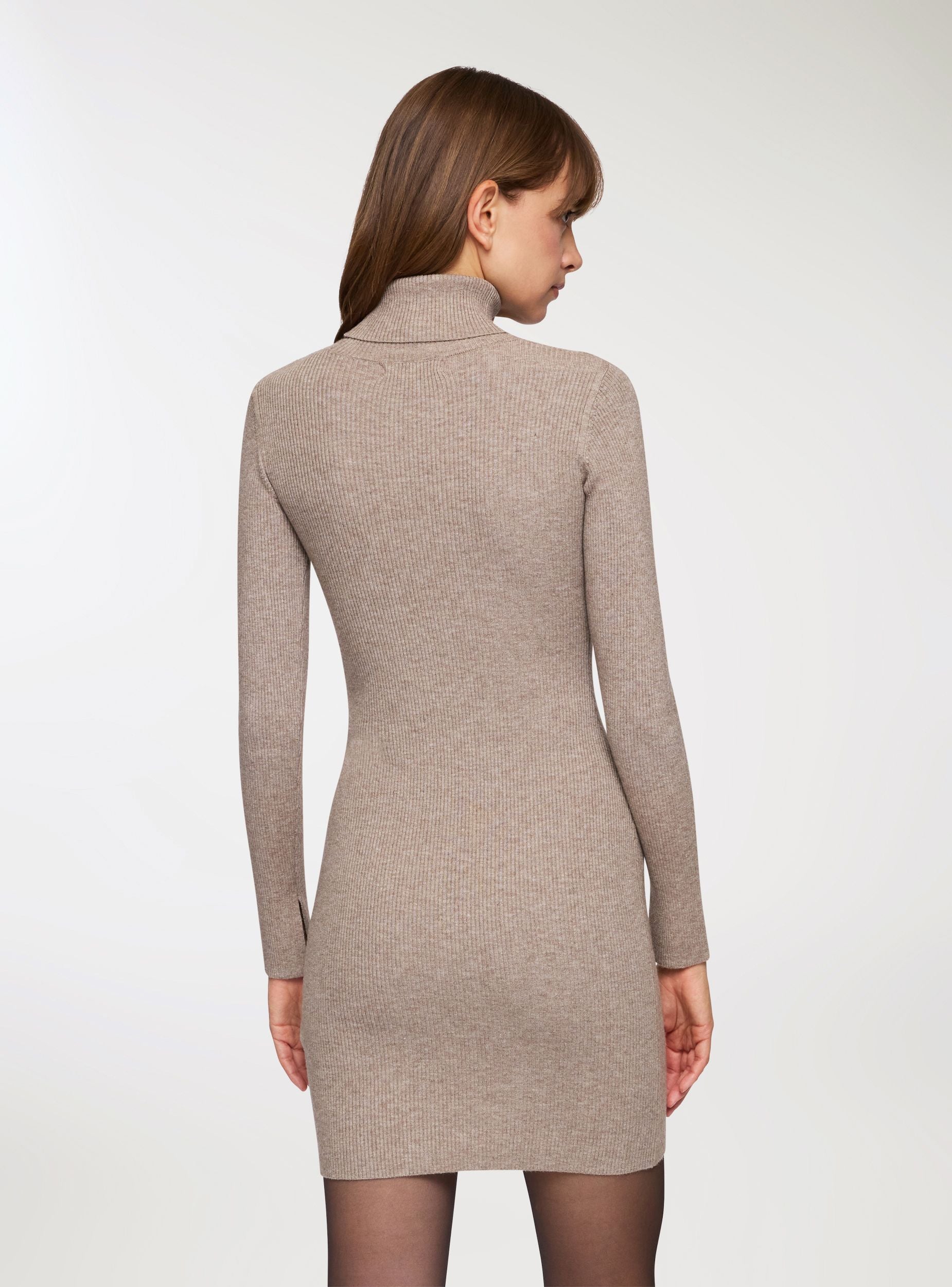 Abito da donna in maglia a tinta unita, caratterizzato da linea aderente e collo dolcevita che avvolge con eleganza. Le maniche lunghe e la lavorazione a costine valorizzano la silhouette, rendendolo perfetto per look sofisticati e contemporanei. Ideale da indossare con stivali alti o ankle boots, è un capo versatile per l’inverno, adatto sia per l’ufficio che per uscite serali.