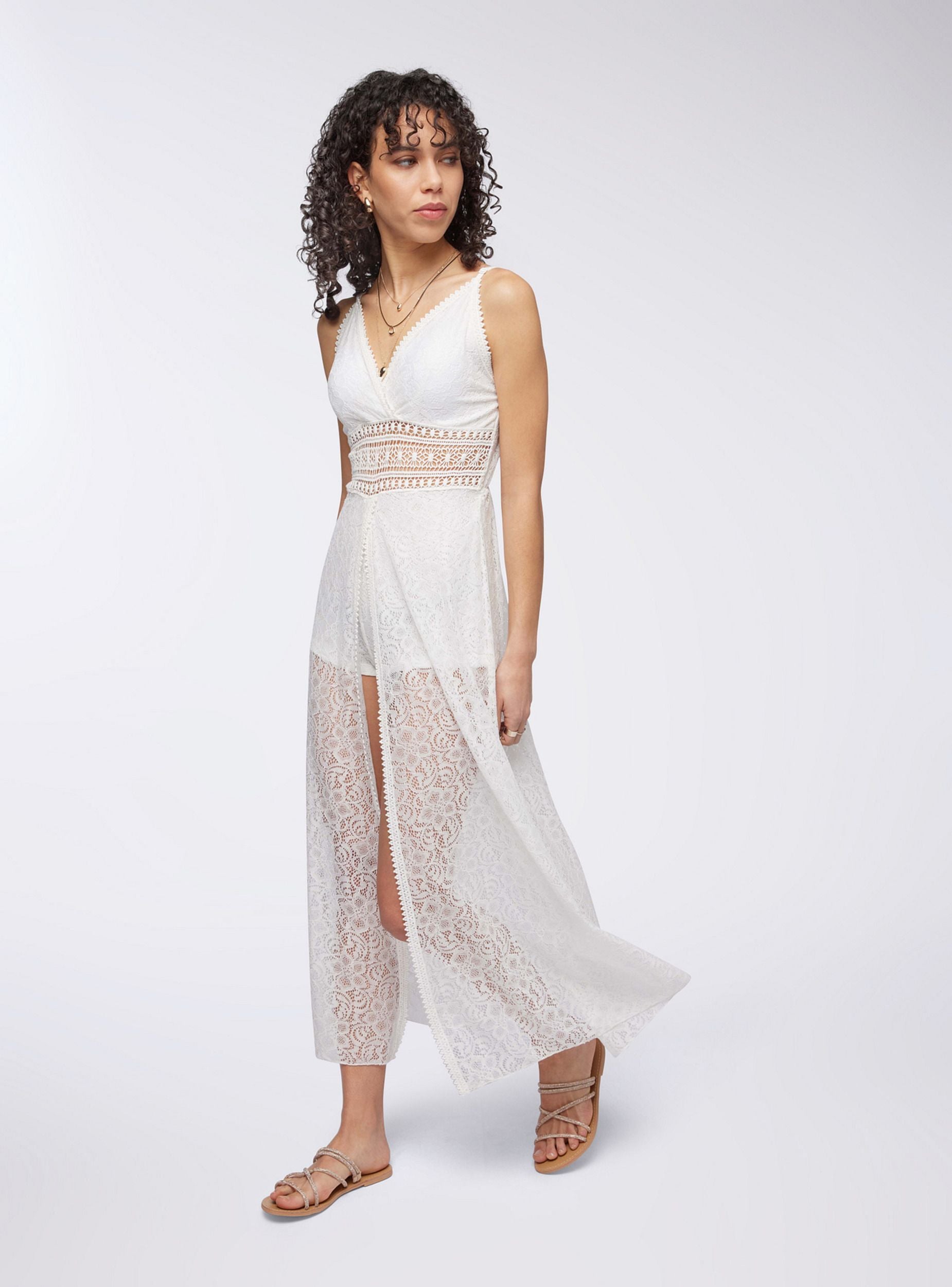 Abito da donna lungo e raffinato, perfetto per un look estivo elegante. Realizzato in tinta unita, presenta un delicato motivo in pizzo che avvolge tutta la lunghezza, conferendo un tocco di romanticismo. Le spalline sono regolabili per garantire una vestibilità su misura, mentre gli shorts interni offrono comfort e praticità senza compromettere lo stile. Le coppe interne assicurano un sostegno discreto e un effetto strutturato. Un capo versatile, ideale per aggiungere un tocco di femminilità e glamour alle serate estive.