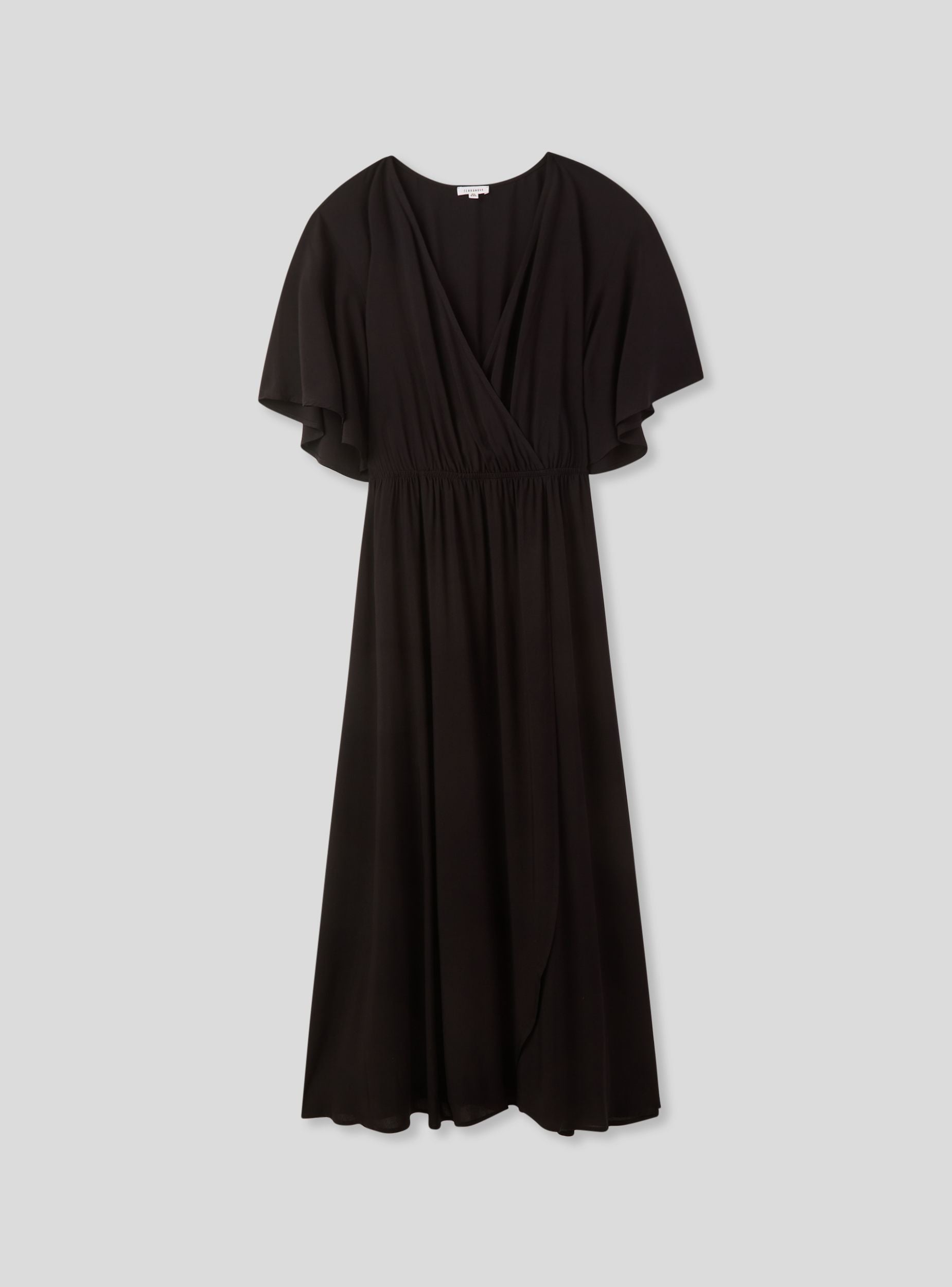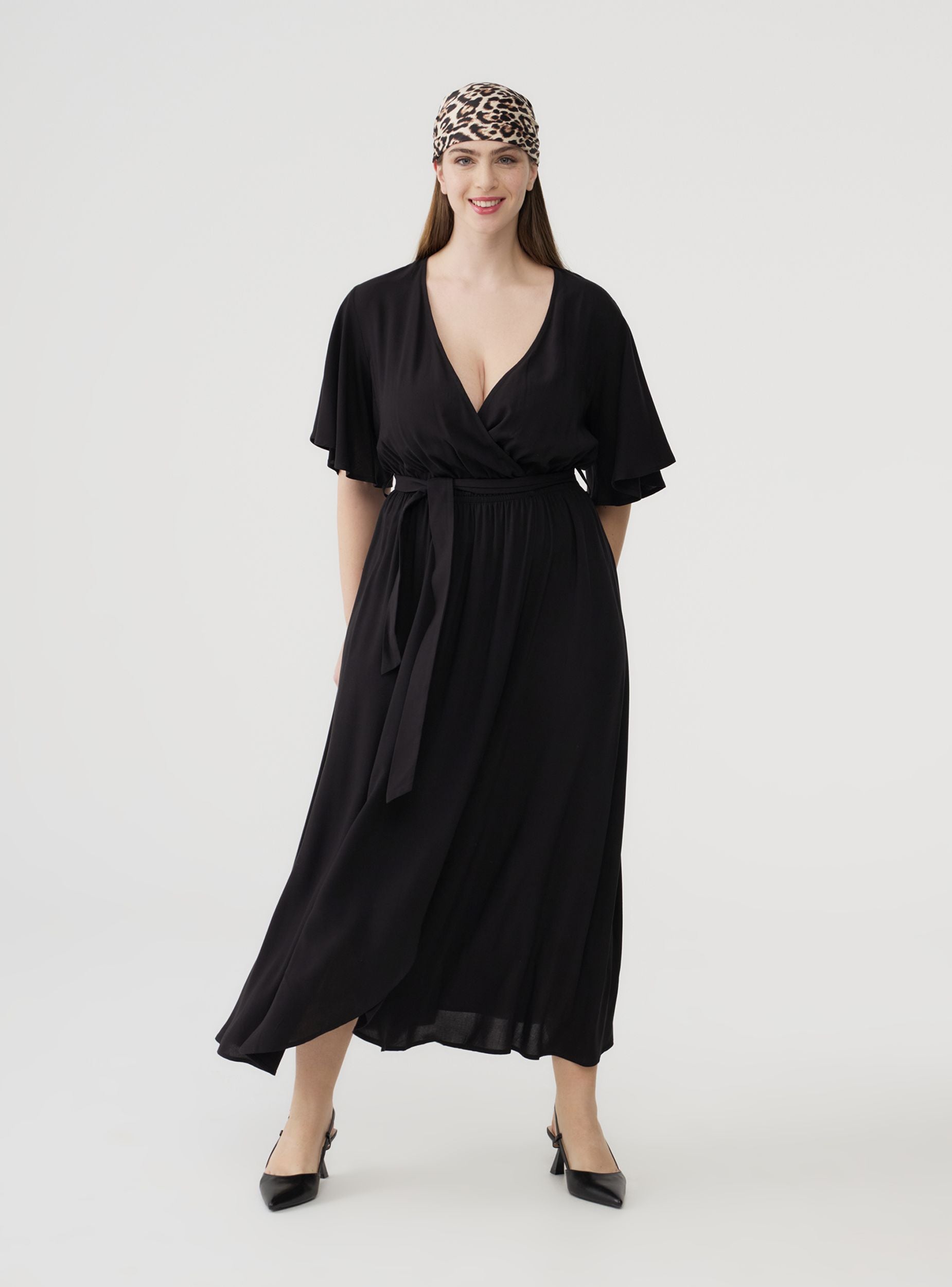 Abito da donna lungo in tinta unita, caratterizzato da una linea fluida e sofisticata. Il design incrociato sul davanti crea una scollatura a V profonda, aggiungendo un tocco di eleganza al capo. Le maniche corte ampie conferiscono un aspetto leggero e femminile, ideale per la stagione calda. Una fusciacca abbinata alla vita permette di regolare la vestibilità, esaltando la silhouette e donando una nota di raffinatezza. Perfetto per occasioni informali o serate estive, questo vestito offre stile e comfort in un'unica soluzione, combinando praticità e gusto moderno.