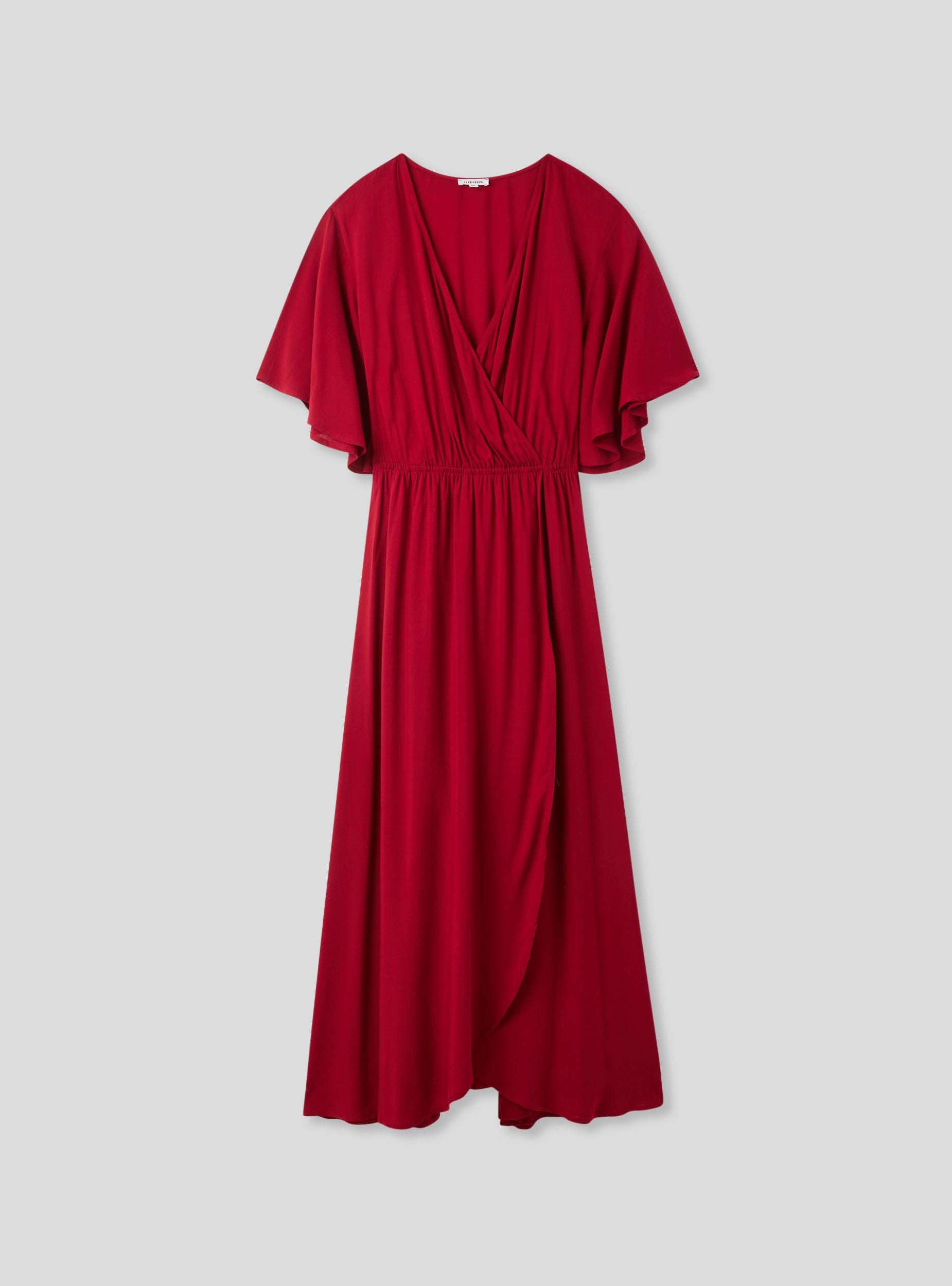 Abito da donna lungo in tinta unita, caratterizzato da una linea fluida e sofisticata. Il design incrociato sul davanti crea una scollatura a V profonda, aggiungendo un tocco di eleganza al capo. Le maniche corte ampie conferiscono un aspetto leggero e femminile, ideale per la stagione calda. Una fusciacca abbinata alla vita permette di regolare la vestibilità, esaltando la silhouette e donando una nota di raffinatezza. Perfetto per occasioni informali o serate estive, questo vestito offre stile e comfort in un'unica soluzione, combinando praticità e gusto moderno.