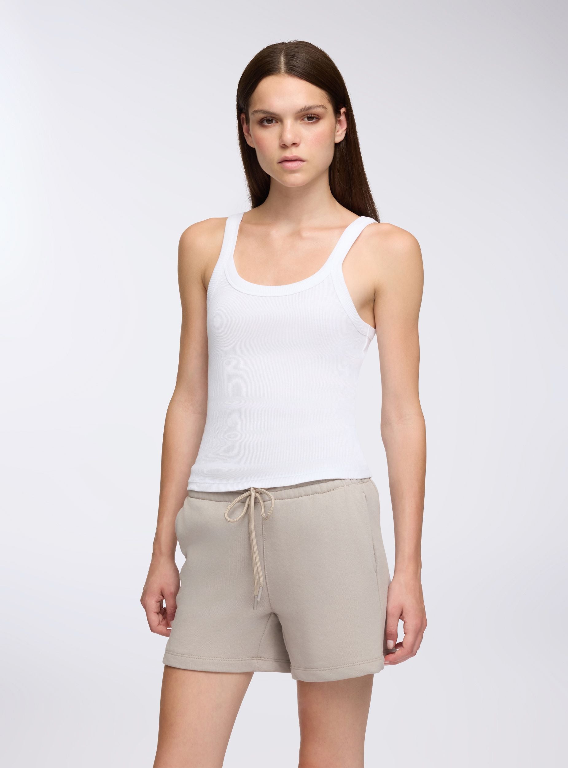 Pantaloncini leggeri della tuta da donna ideali per il tempo libero e l'attività sportiva. Presentano una comoda coulisse in vita per una vestibilità regolabile e tasche laterali per praticità. La lunghezza corta li rende perfetti per le giornate calde o per allenamenti leggeri. Si abbinano facilmente a magliette e scarpe sportive per un look casual e dinamico.Dettagli