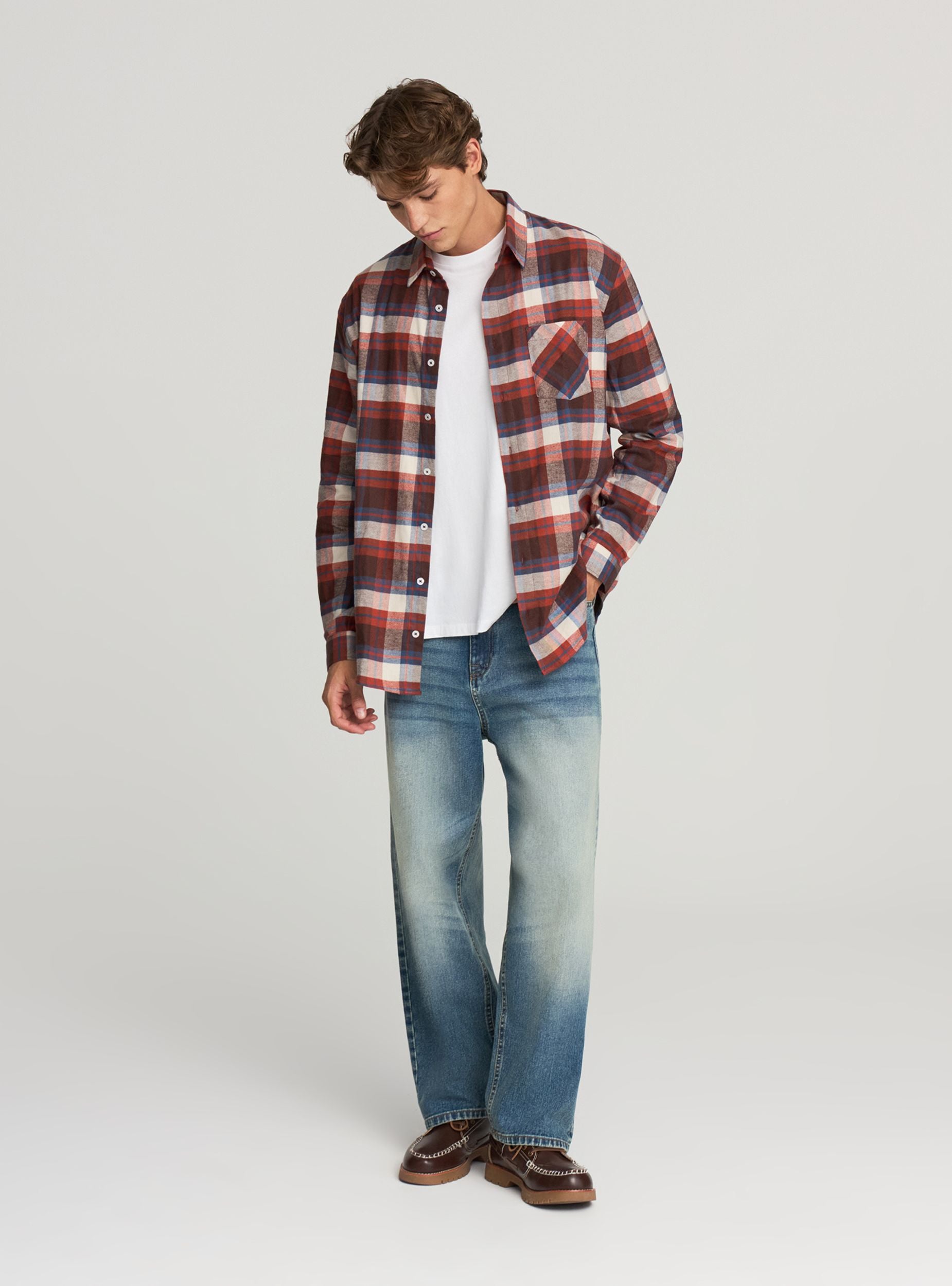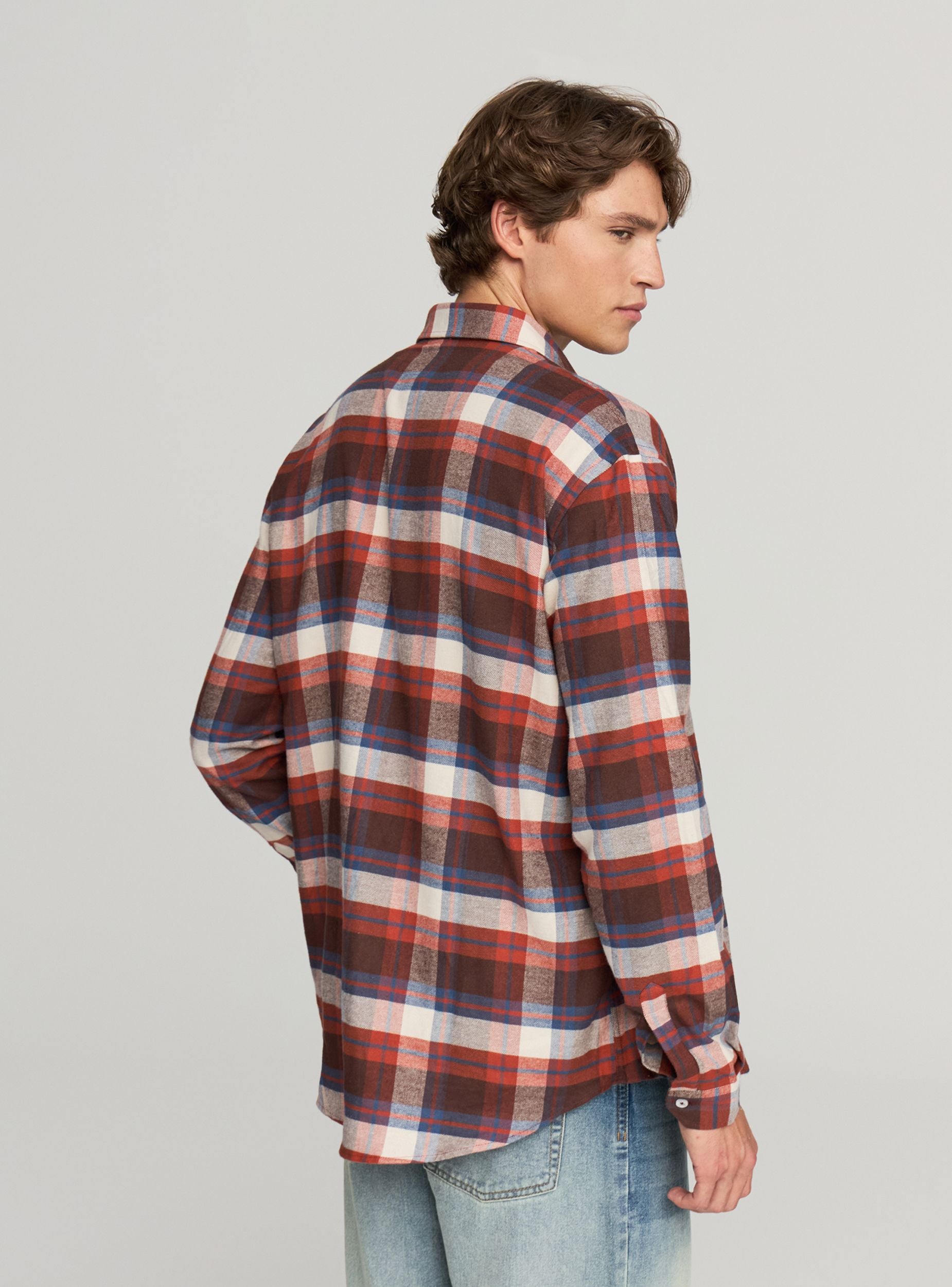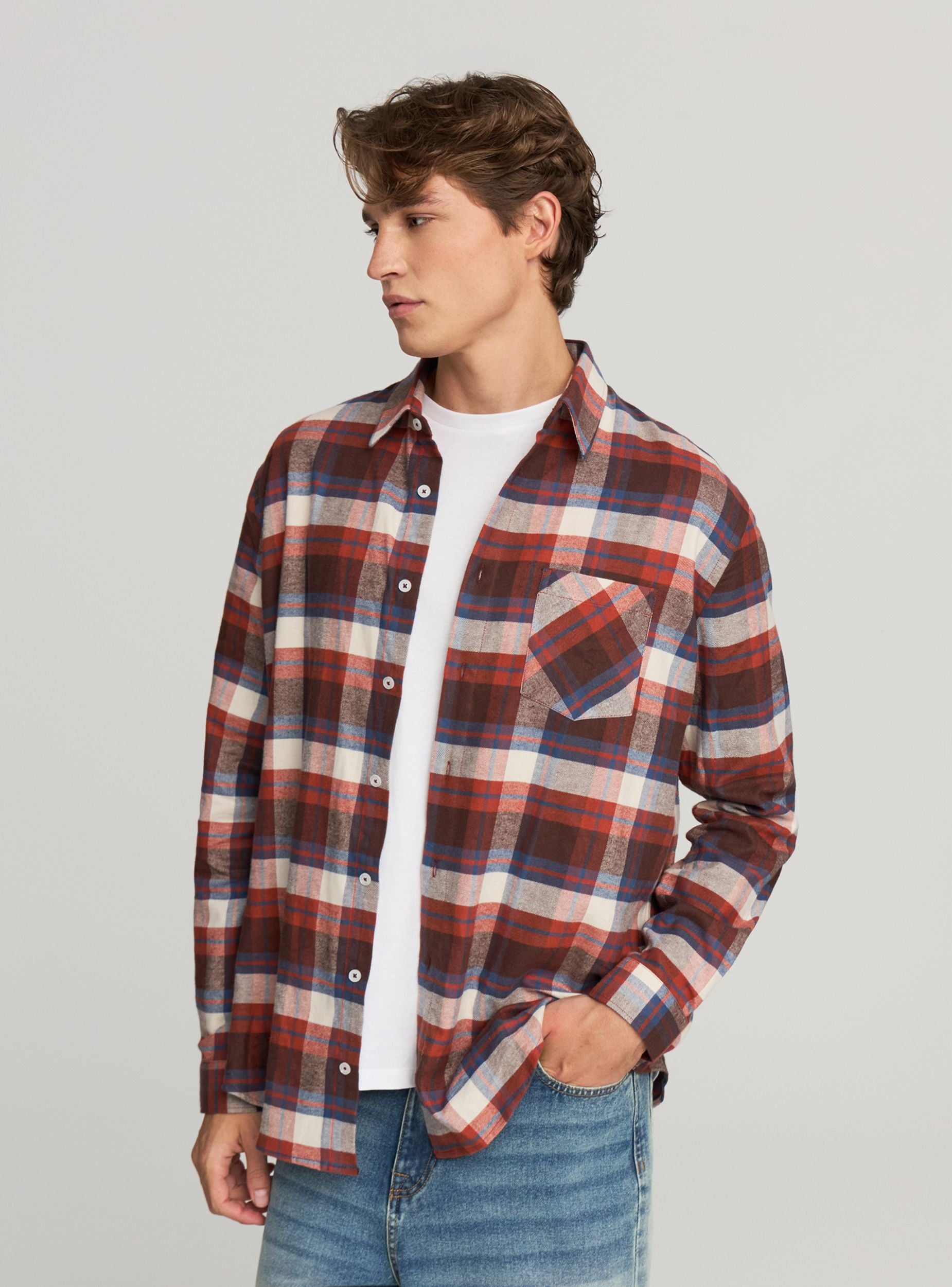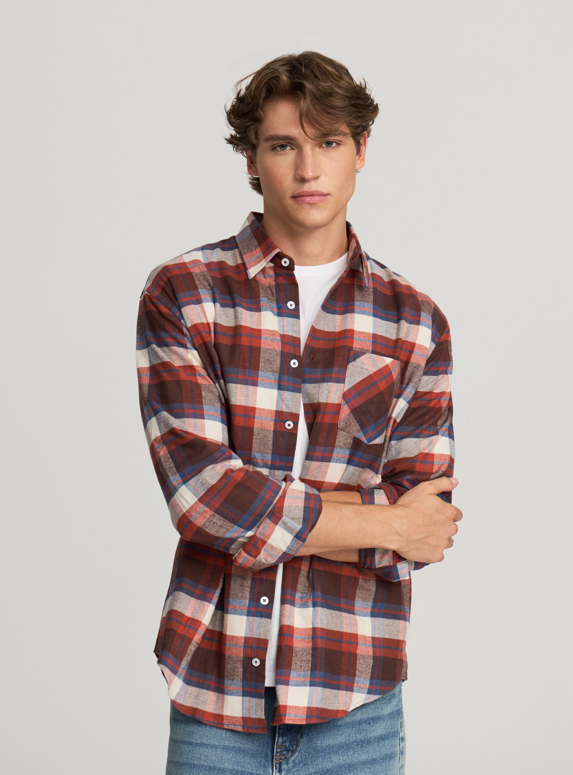 Camicia da uomo a quadri con maniche lunghe e colletto classico. Chiusura frontale con bottoni e taschino sul petto, perfetta per outfit casual o urban con jeans e sneakers. Vestibilità regular, ideale sopra una maglietta nelle giornate di relax.