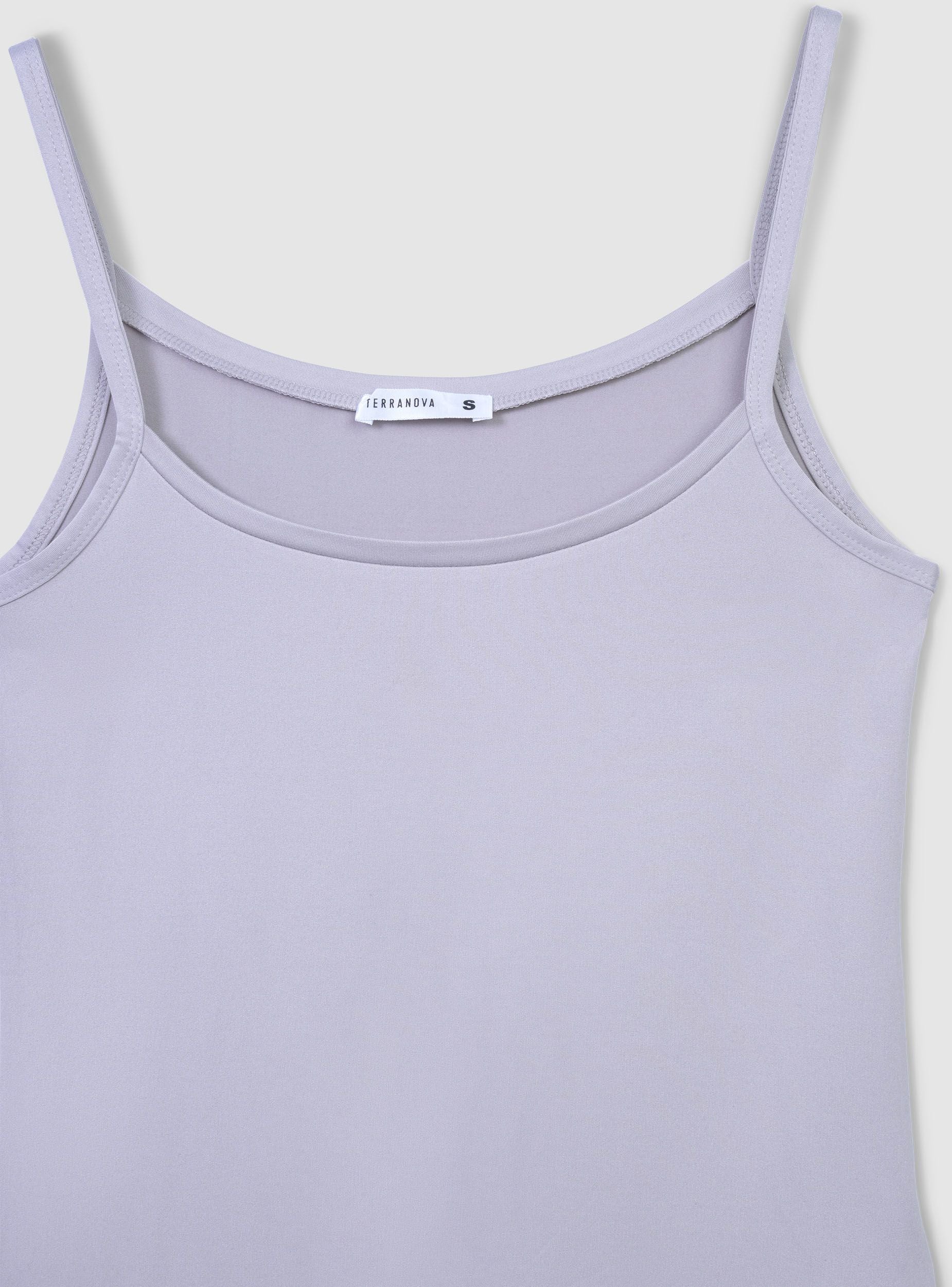 Canottiera thermal da donna in tinta unita, ideale per affrontare le giornate più fredde con comfort e discrezione. Il tessuto elasticizzato garantisce aderenza e libertà di movimento, rendendola perfetta da indossare come primo strato sotto maglie o maglioni. Le spalline sottili e la linea essenziale valorizzano la figura senza costringere. Un capo intimo caldo e versatile, pensato per l’inverno.Dettagli